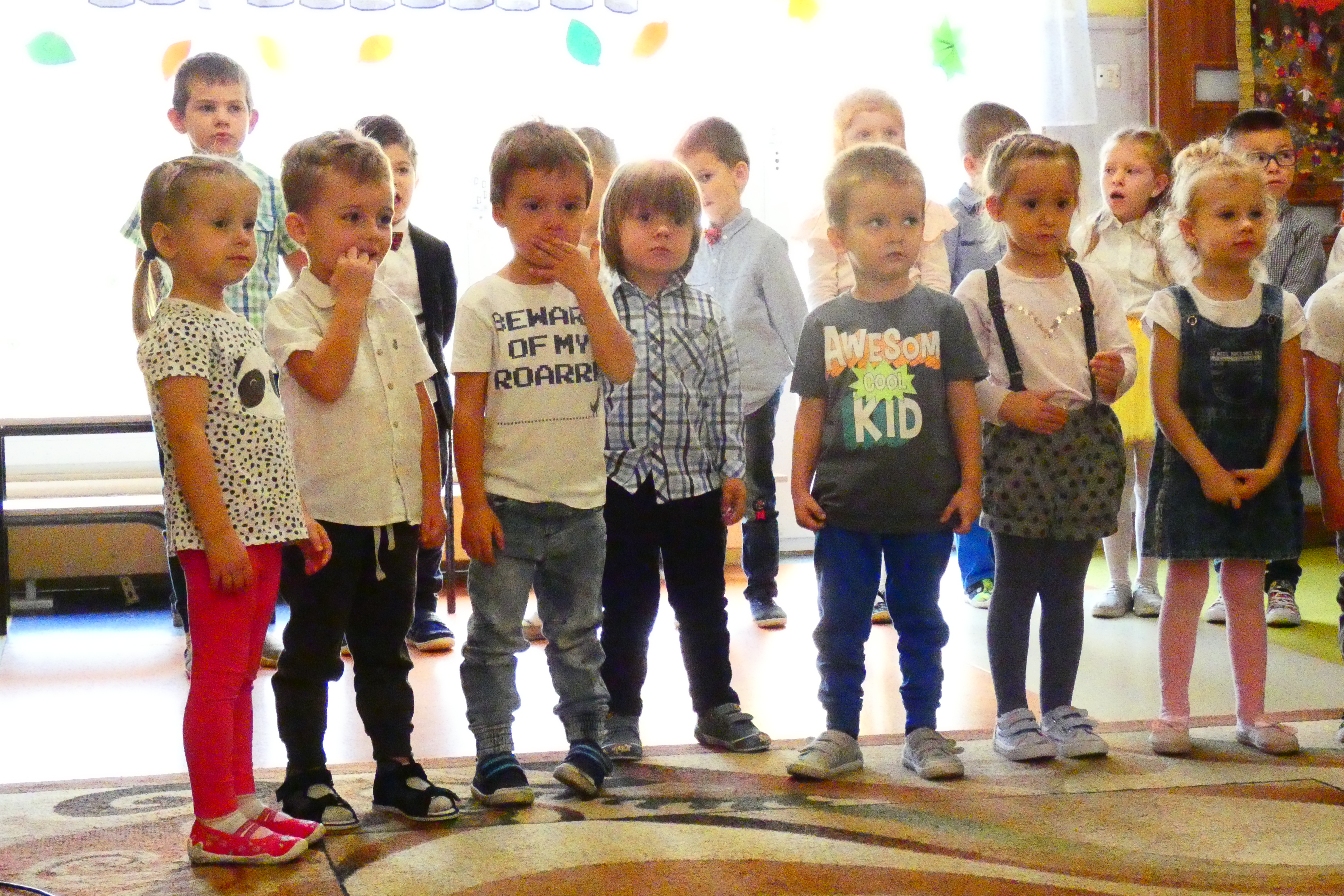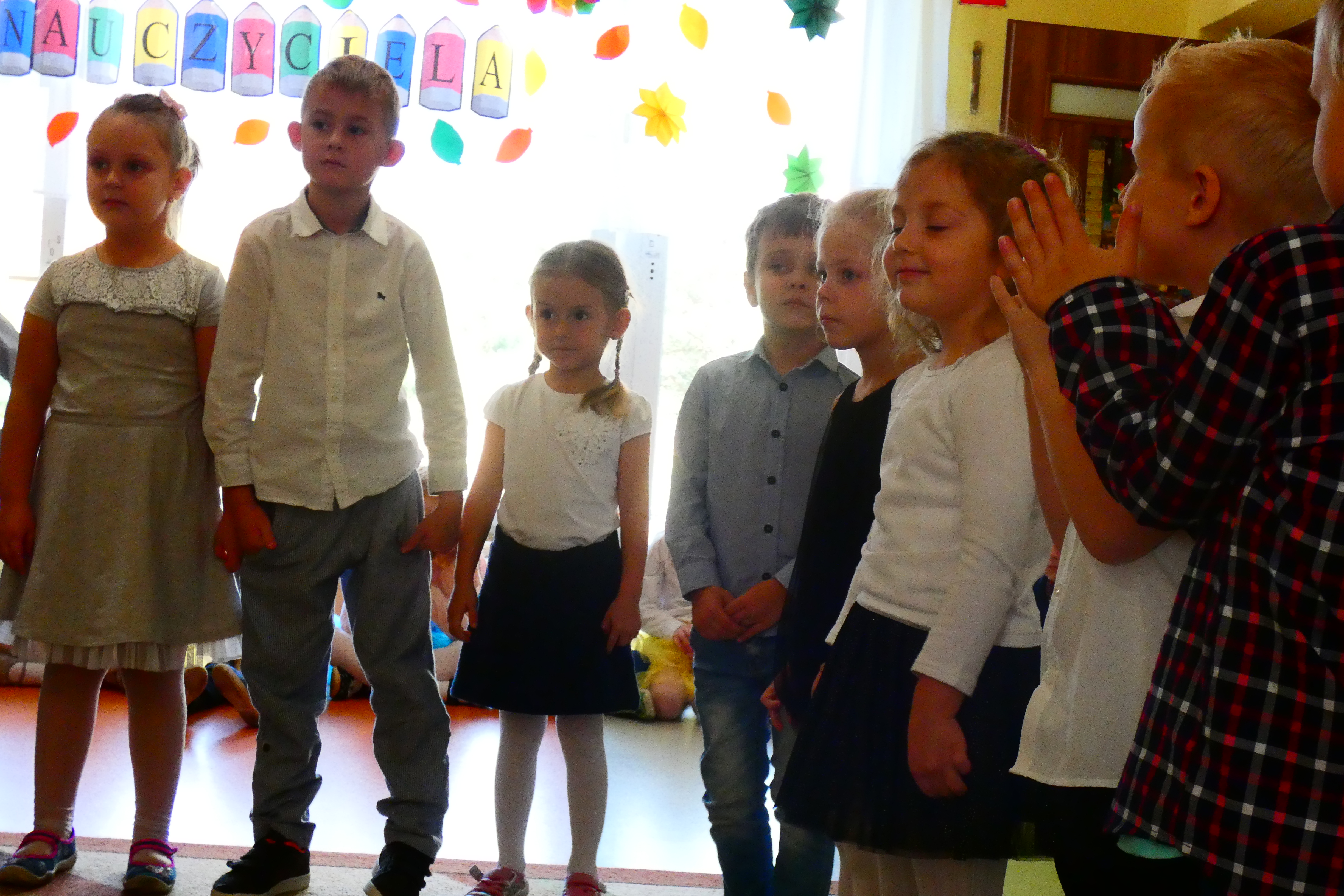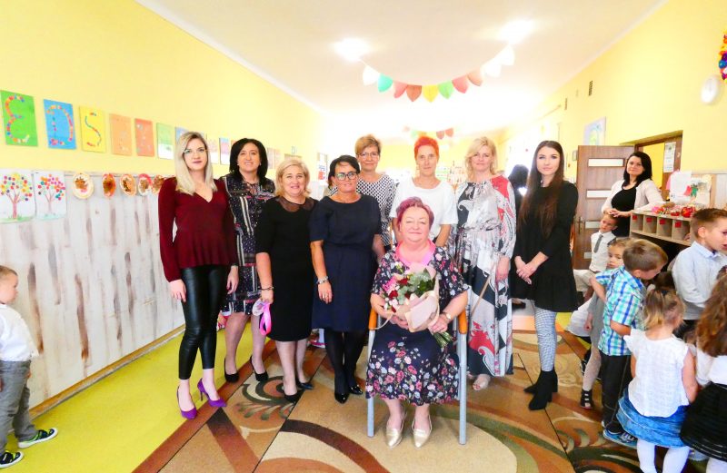 We wtorek 15 października odbyło się w naszym przedszkolu bardzo ważne święto - Dzień Nauczyciela. Dzieci dziękowały swoim wychowawcom za trud włożony w edukację i wychowanie. Każdy pięknie się zaprezentował i życzył swoim kochanym Paniom oraz całemu personelowi przedszkola dużo szczęścia i zdrowia. Ten dzień był dla nas szczególny, ponieważ żegnaliśmy naszą Kochaną Panią Marzannę Jędrzejczyk-Pakułę. Polały się łzy, bo jest nam smutno gdy ktoś odchodzi. Na szczęście Pani Marzenka obiecała nam, że odwiedzi nas nie raz. Pani Dyrektor oraz Pani Małgosia i Pani Ula w imieniu Nauczycieli, całego Zespołu Szkolno-Przedszkolnego i Rodziców podziękowały Pani Marzence za te lata spędzone z nami, za wkład włożony w rozwój przedszkola, za bycie bardzo ciepłą, serdeczną i pomocną Osobą. Były słodkie poczęstunki dla wszystkich, dużo radości, tańców, śmiechu oraz łez. Krótko! W tym roku obchodziliśmy bardzo hucznie Dzień Nauczyciela!
