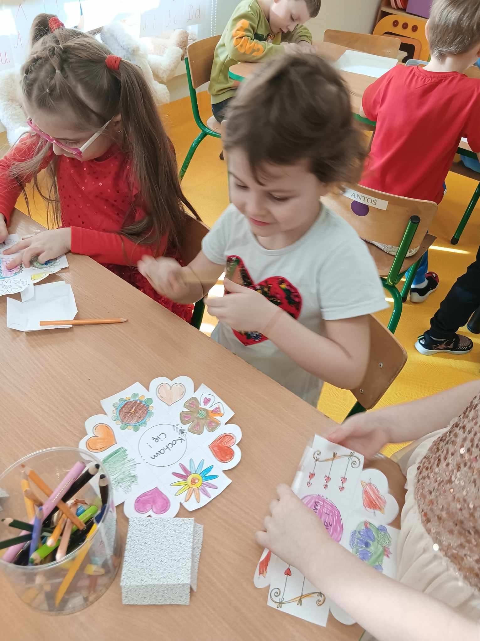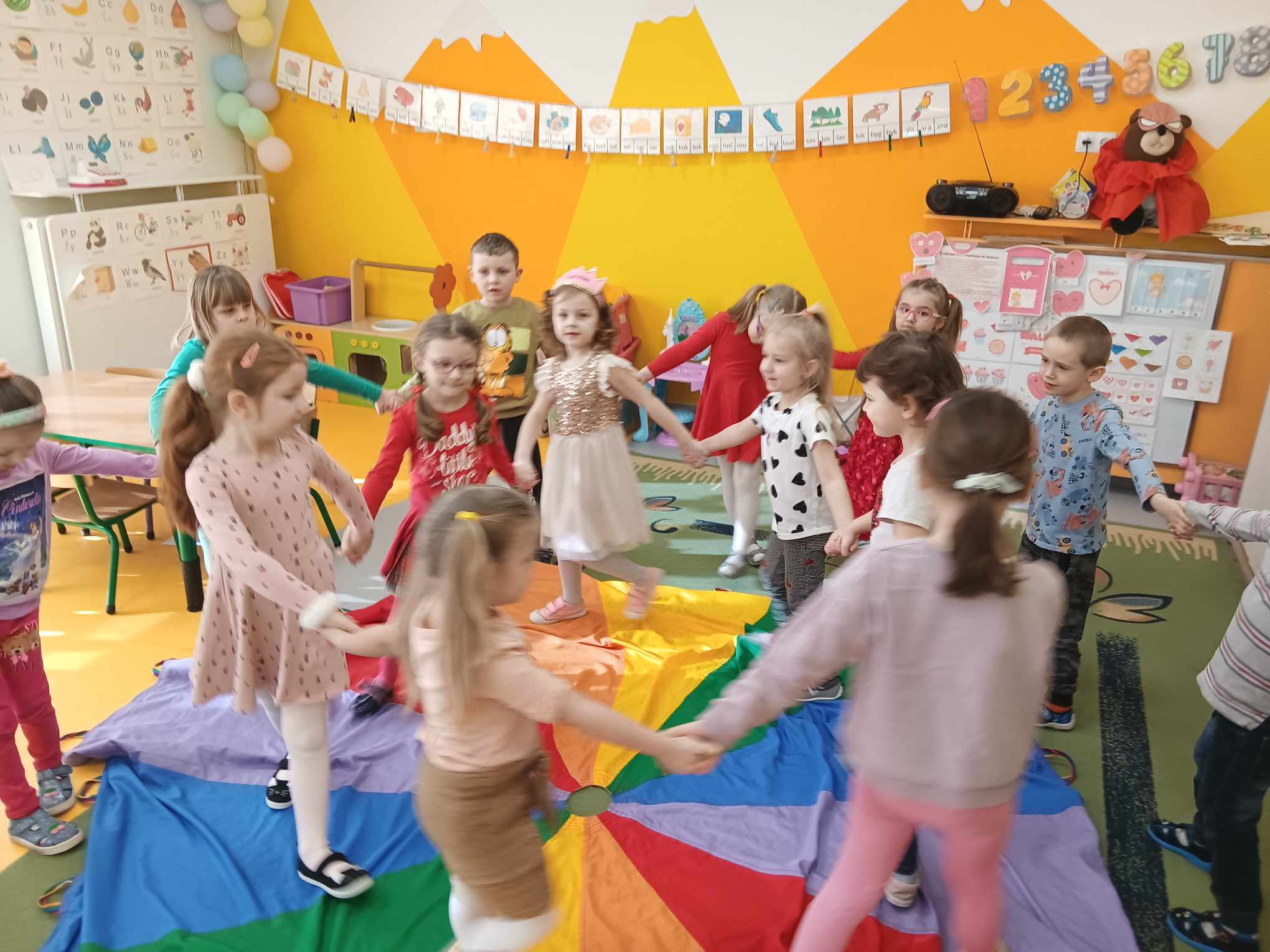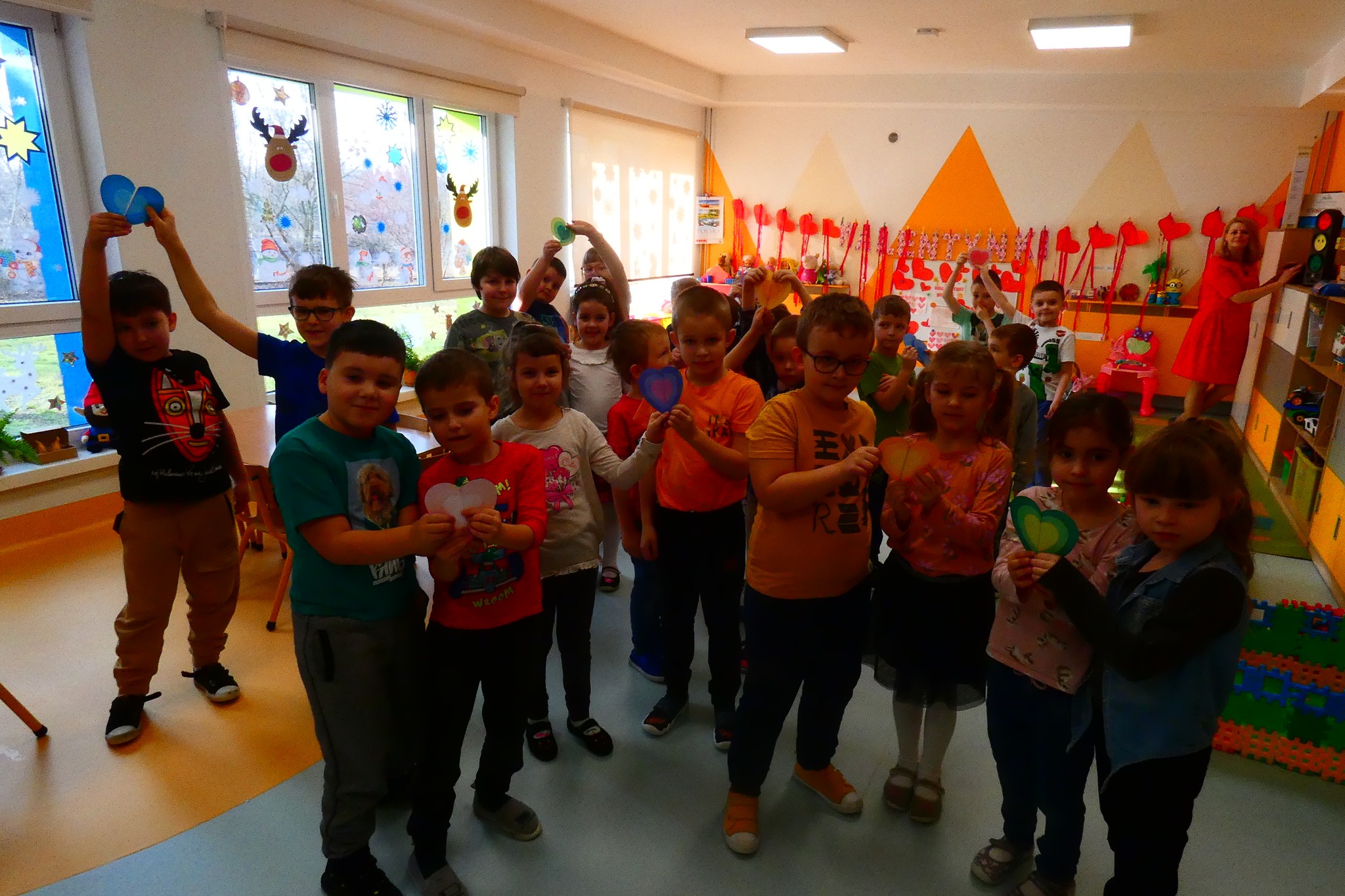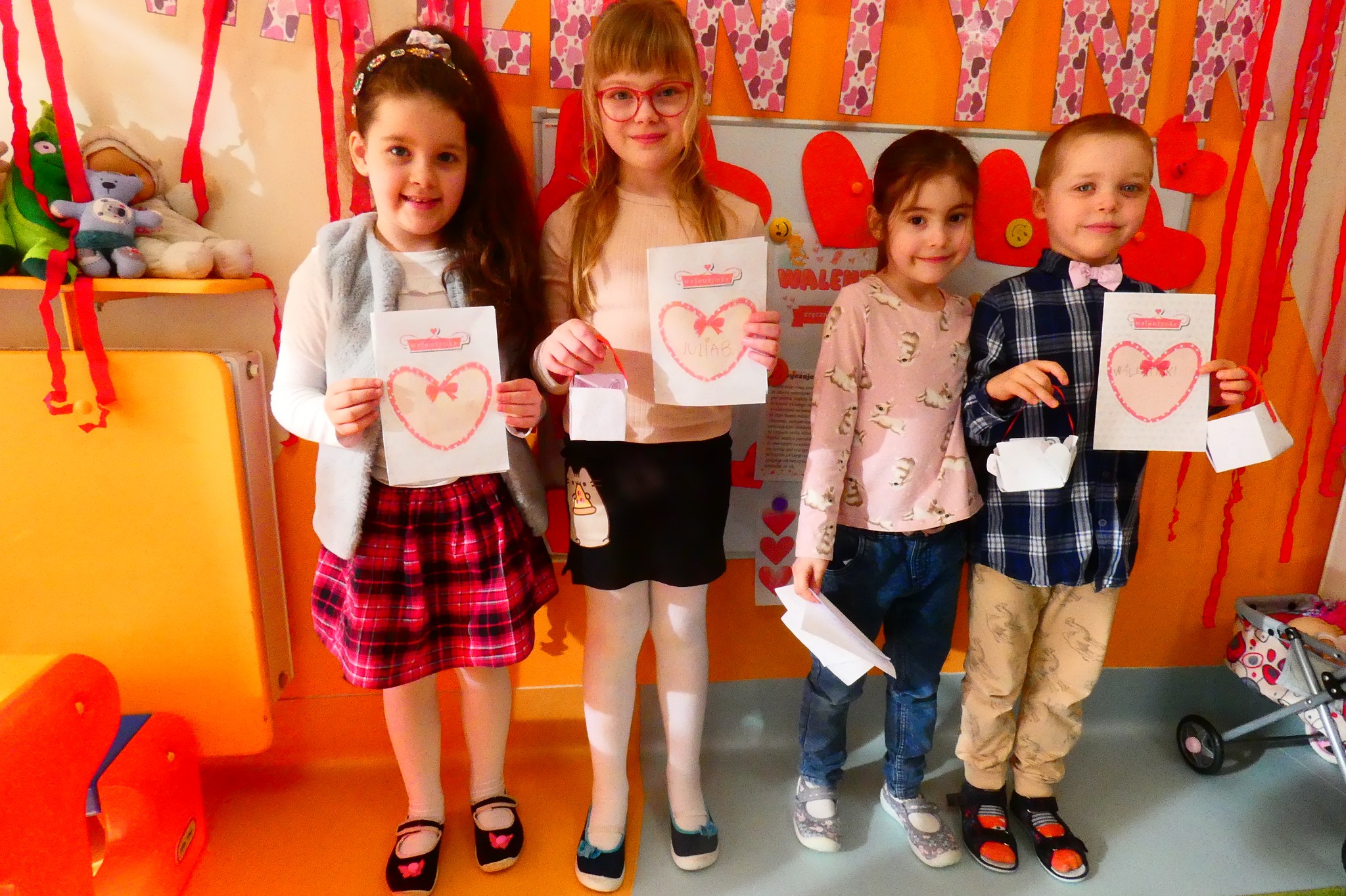 14 lutego całe przedszkole zamieniło się w Serduszkową Krainę, pełną radosnej atmosfery i uśmiechu. Dzieci miały okazję poznać tradycję tego święta, które obchodzone jest na całym świecie. 14 lutego to przecież nie tylko Dzień Zakochanych, ale to przede wszystkim dzień miłości, sympatii, przyjaźni, okazywania sobie pozytywnych emocji i dzielenia się nimi z innymi. W tym dniu dzieci wręczały sobie kolorowe Walentynki w postaci laurek, czerwonych serduszek, koszyczków przyjaźni, nie zabrakło słodkiej chwilki i wesołych walentynkowych zabaw. Był to dzień miłych wrażeń i niespodzianek.