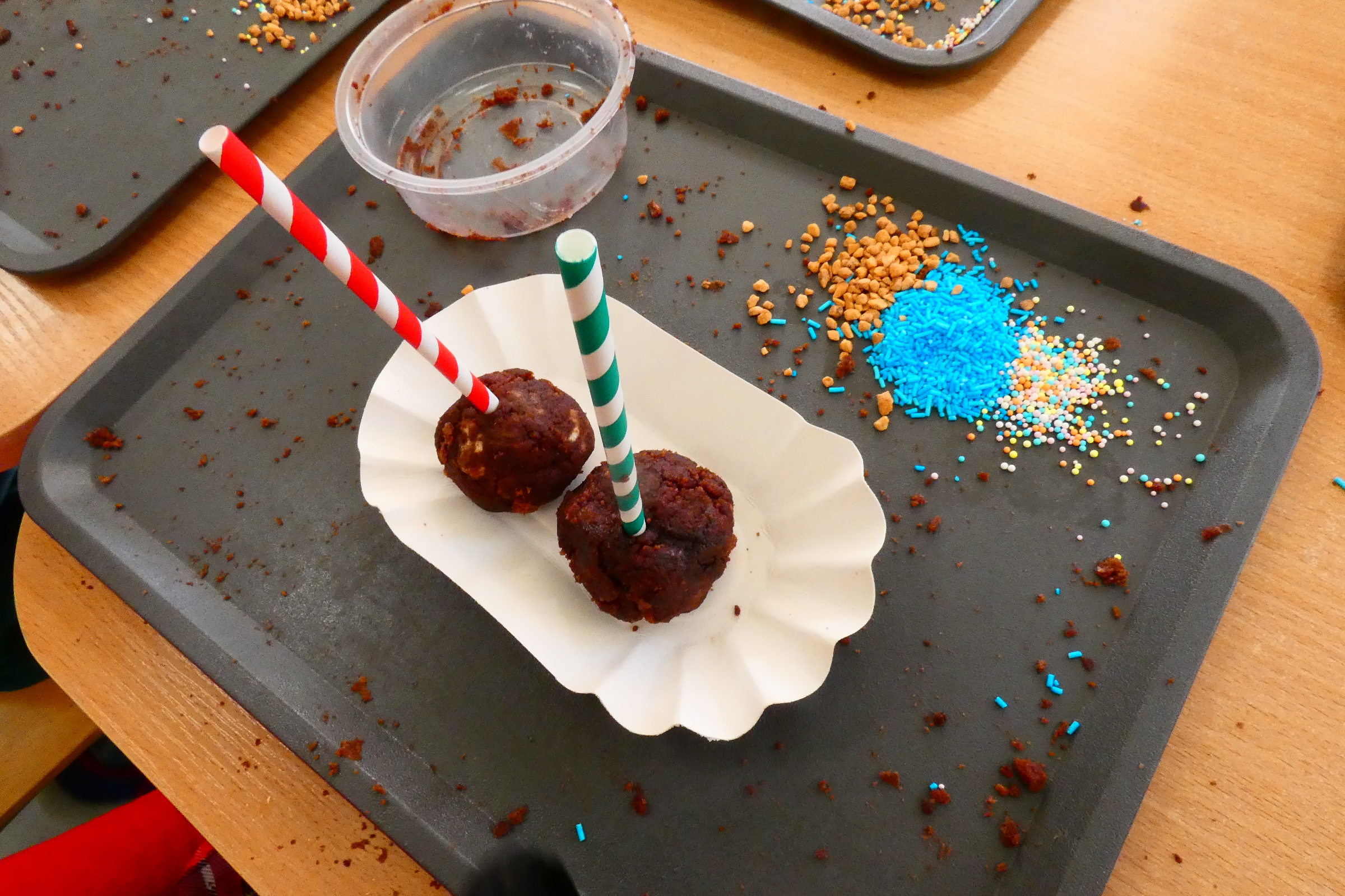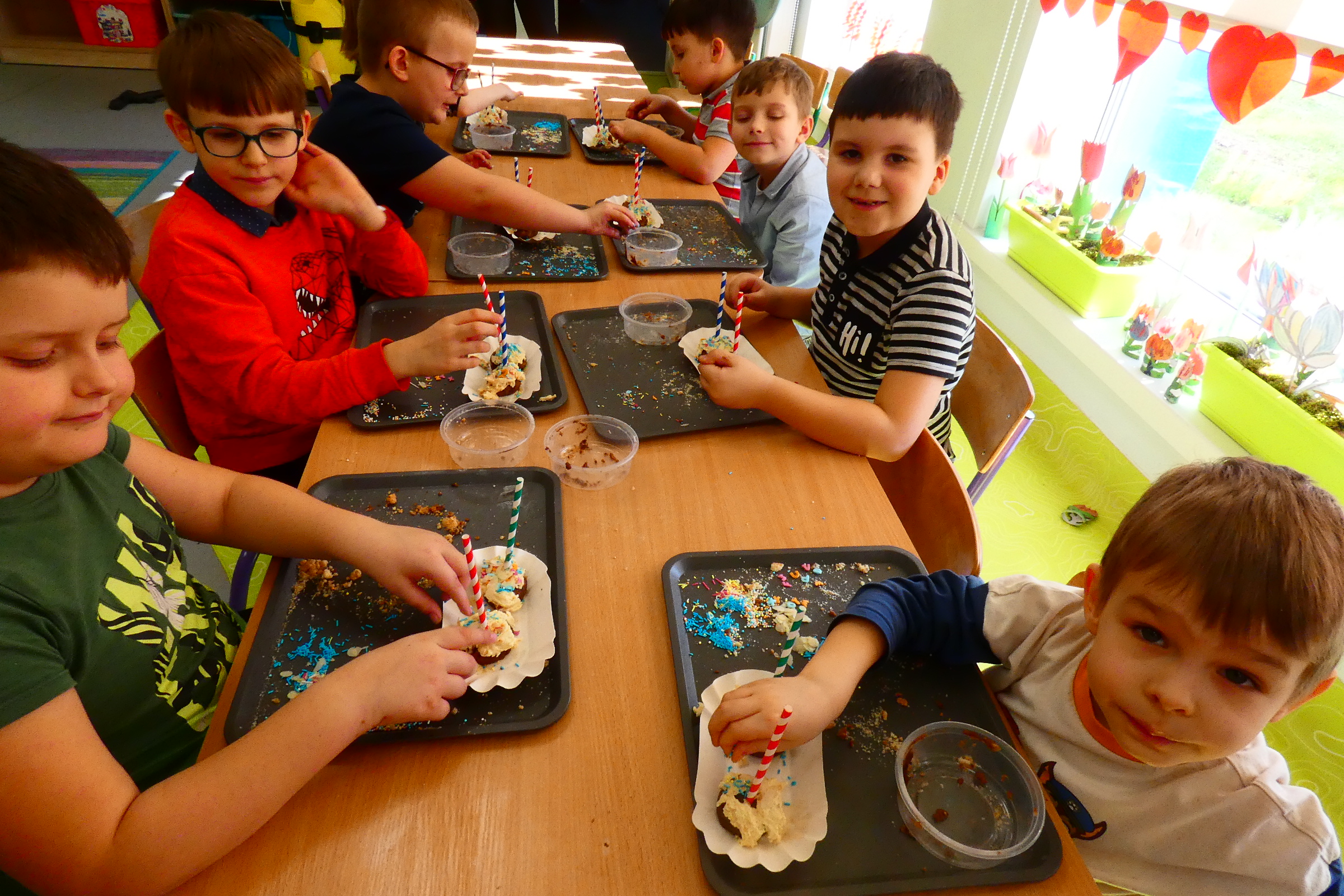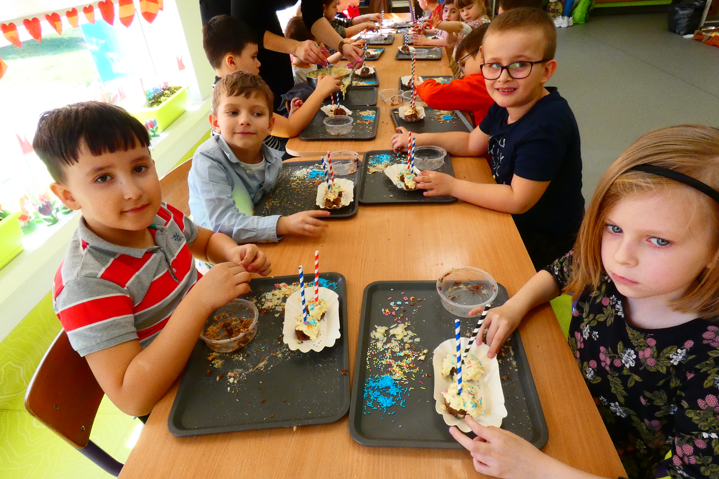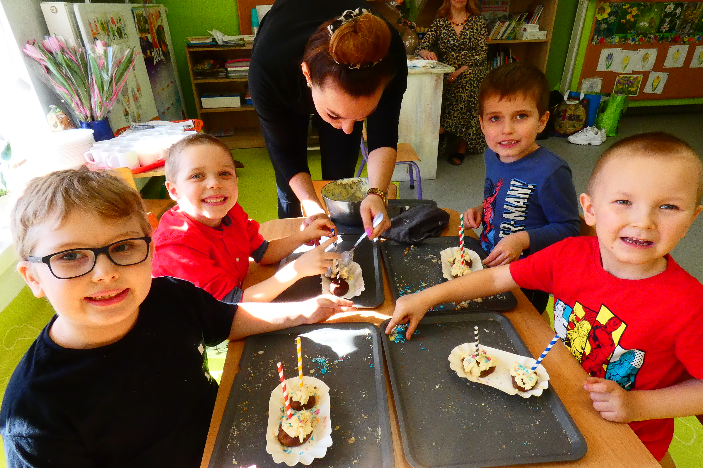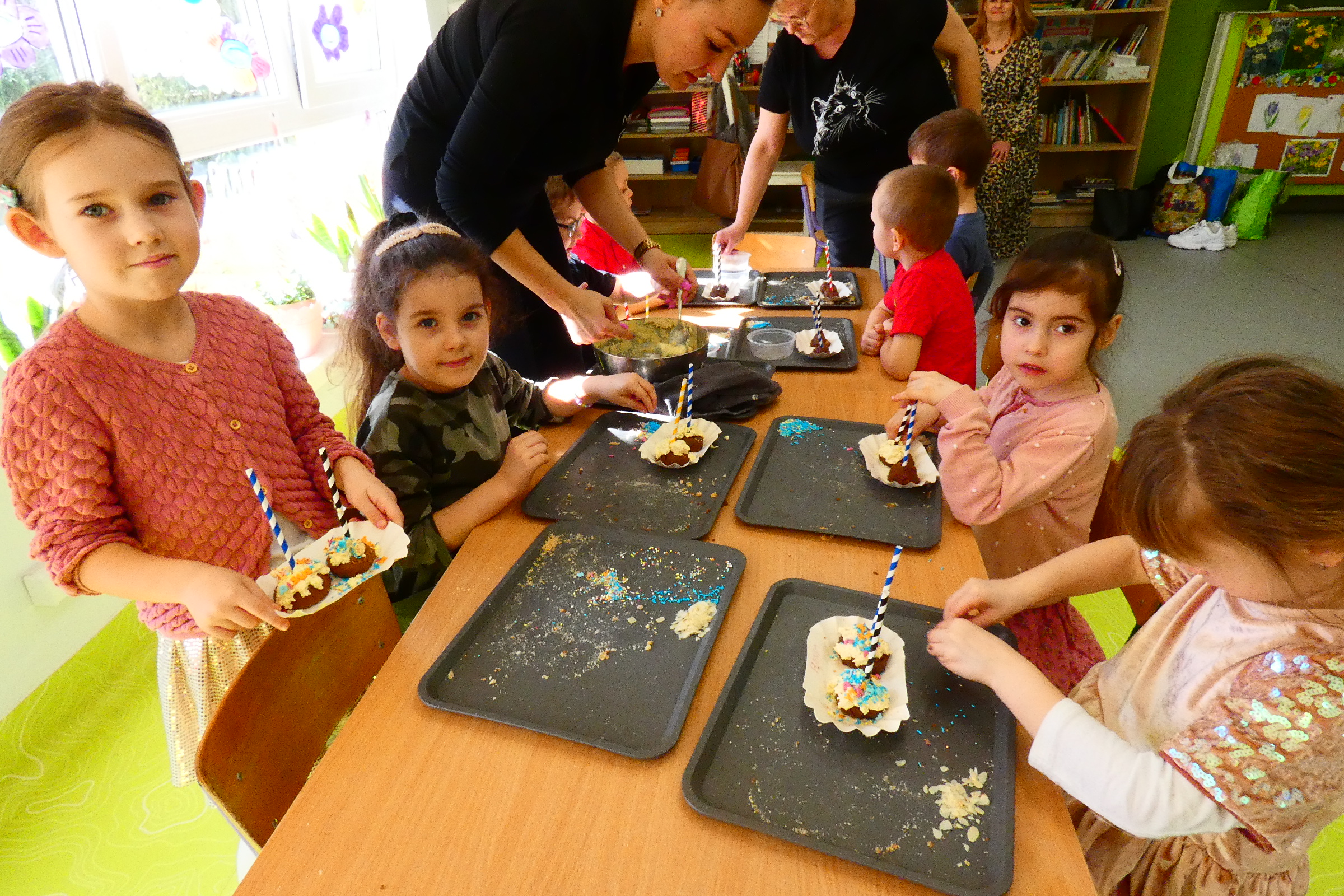 Cake pops to przepyszne kawałki ciasta z wybranym kremem, nutella lub kremem orzechowym osadzone na patykach i udekorowane według własnego pomysłu. Na dzisiejszych warsztatach Mali Cukiernicy tworzyli smakowite kolorowe słodkości, uwielbiane przez każdego! Zajęcia pobudziły zmysły przedszkolaków, rozwinęły kreatywność i wprawiły wszystkich w pozytywny nastrój. Każdy z uczestników stworzył dwa przepyszne ciasteczkowe lizaki, które zabrał do domu. Życzymy smacznego!!!