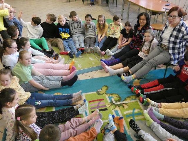 20 marca obchodziliśmy w naszej szkole Światowy Dzień Zespołu Downa zwany też Dniem Kolorowej Skarpetki. Ten dzień, nie bez przyczyny wyznaczono na 21 marca. Jest to początek kalendarzowej wiosny, symbolizujący narodziny nowego życia oraz narodziny ludzi niezwykłych. Data odnosi się również do samej istoty tej wady genetycznej. Zespół Downa wiąże się bowiem z obecnością trzeciego, dodatkowego chromosomu 21 w kariotypie. Społeczność naszej szkoły przyłączyła się do akcji „Skarpetki nie do pary” na znak solidarności z osobami z zespołem Downa. Uczniowie klas I – III wzięli udział w zajęciach warsztatowych, podczas których mieli okazje przekonać się, że osoby z Zespołem Downa nie są wykluczone ze środowiska, a wręcz odwrotnie mogą zostać sławnymi osobami i są wyjątkowe. Dzień Kolorowej Skarpetki powiązaliśmy również z trwającym II Szkolnym Tygodniem Matematycznym. Tego dnia uczniowie klas IV-VII rozwiązywali zadania umieszczone na jednej ze skarpetek i szukali pary zawierającej odpowiedź.