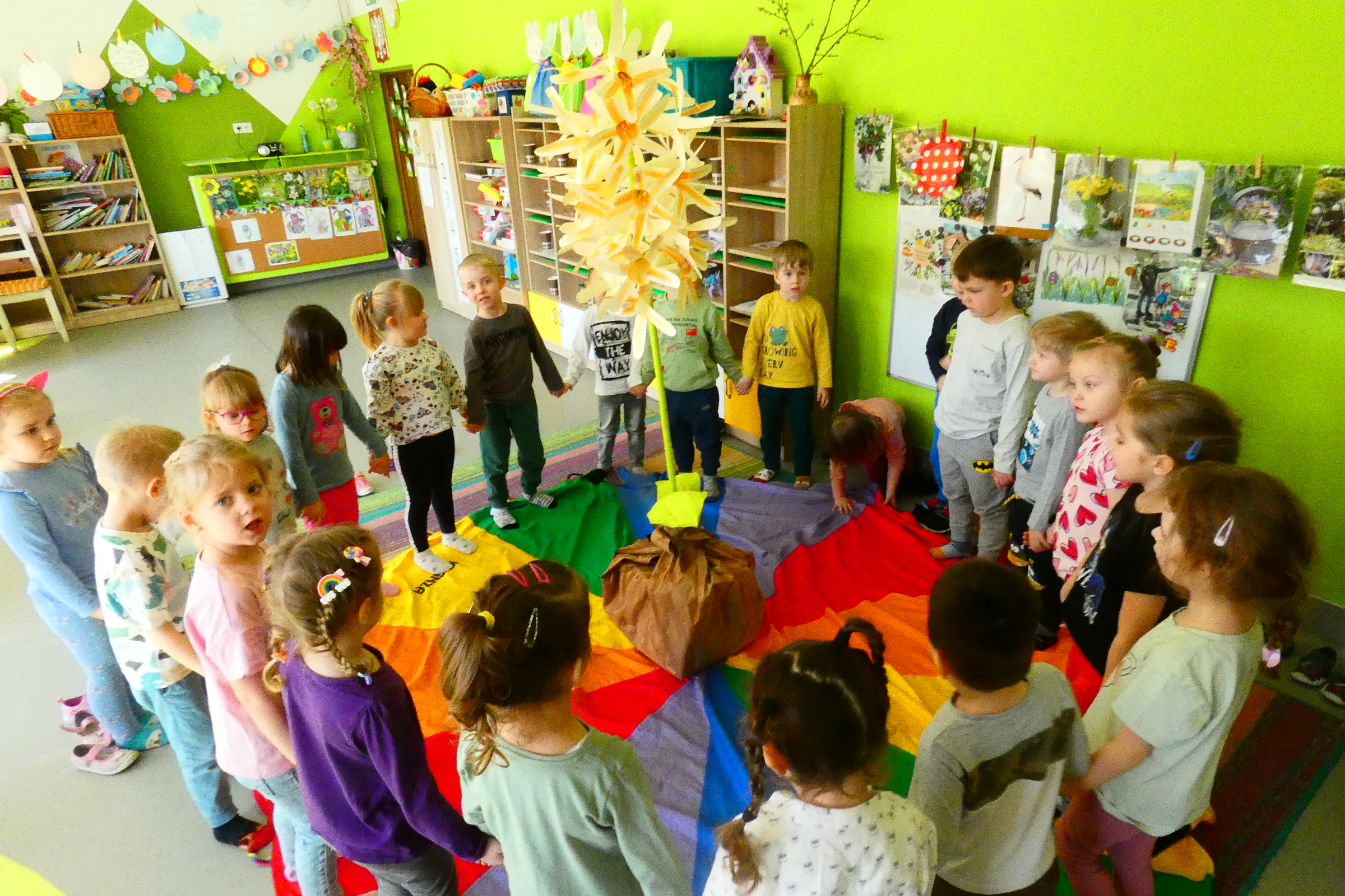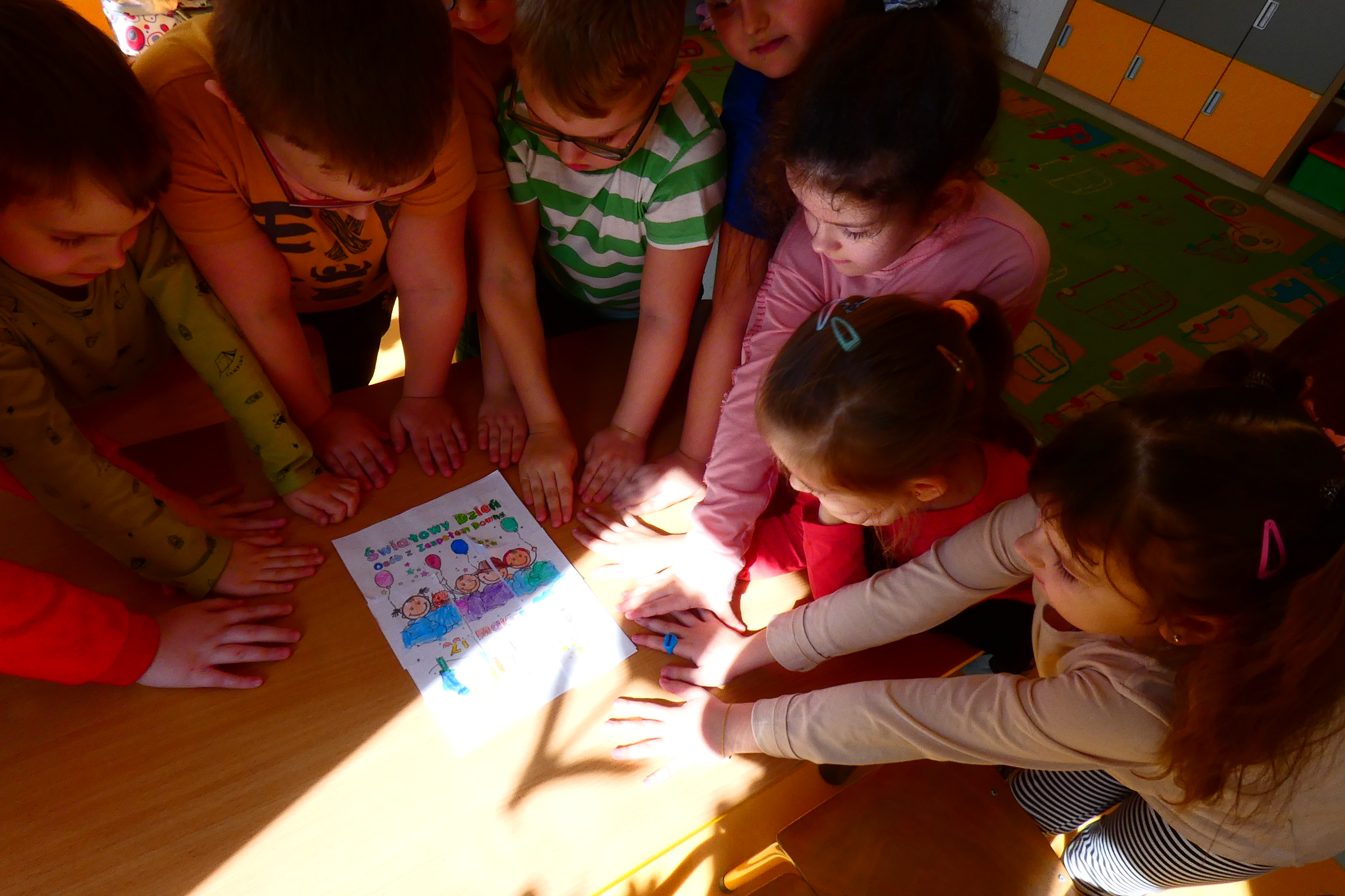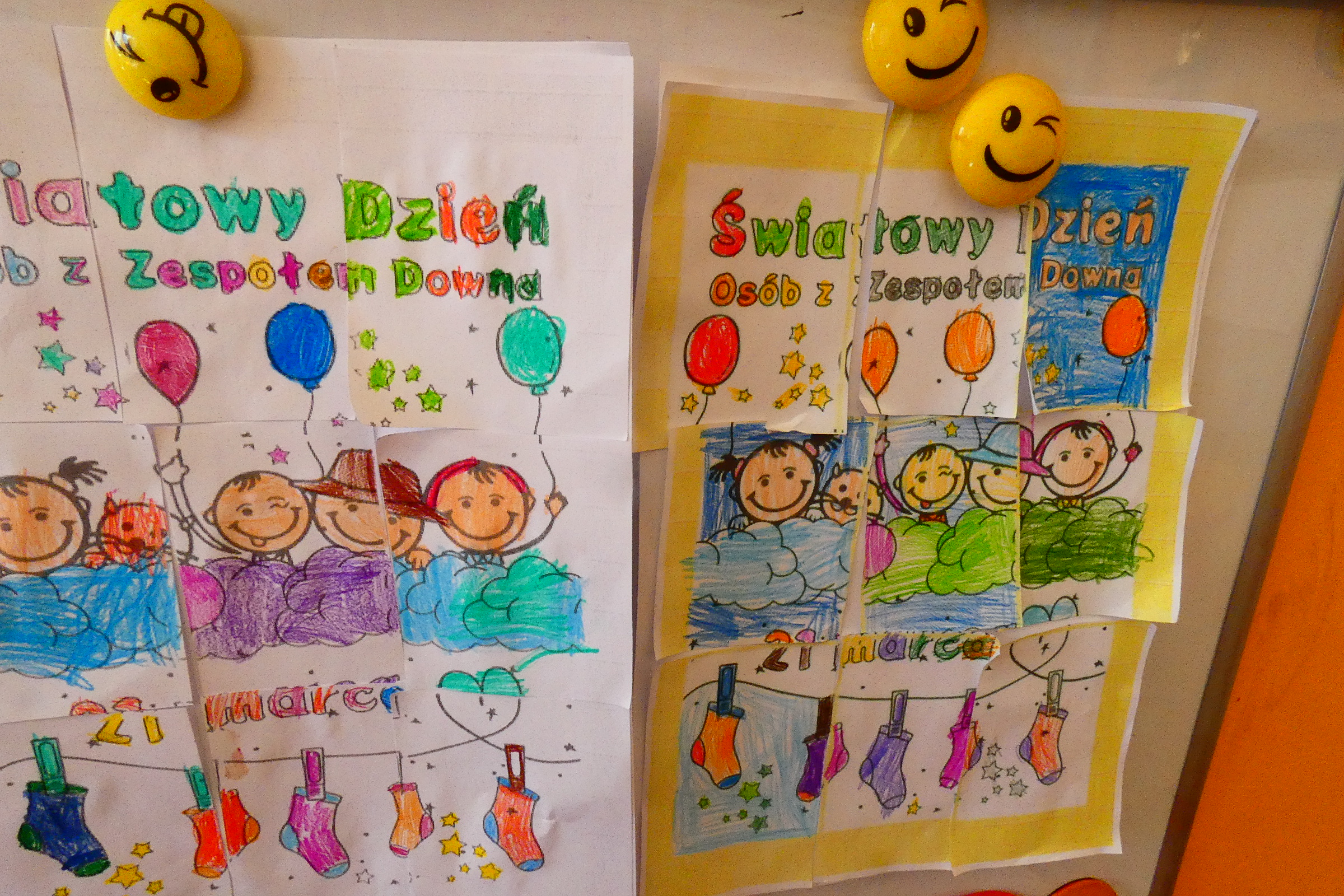 W tym roku nasze przedszkole włączyło się w obchody „Dnia Kolorowej Skarpetki”. 20 marca wszystkie dzieci wraz z wychowawczyniami przyszły do przedszkola w skarpetkach „nie do pary”. Kolorowe skarpetki na naszych stopach były wyrazem integracji, tolerancji i solidarności z osobami z Zespołem Downa. Dzięki nim chcemy pokazać, że akceptujemy wszystkich, każdy z nas jest na swój sposób inny, różnimy się pod wieloma względami i ta inność i różnorodność jest WYJĄTKOWA!!! Skarpety „nie do pary” ukazują, że niezależnie od ilości posiadanych chromosomów można mieć piękne, radosne i kolorowe życie. Osoby z Zespołem Downa żyją wśród nas, tak jak my bawią się, śmieją i spełniają swoje marzenia! Ważne jest, aby już od najmłodszych lat pokazywać dzieciom różnorodność, uczyć empatii i tolerancji.