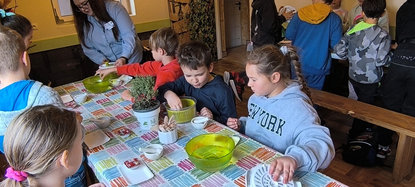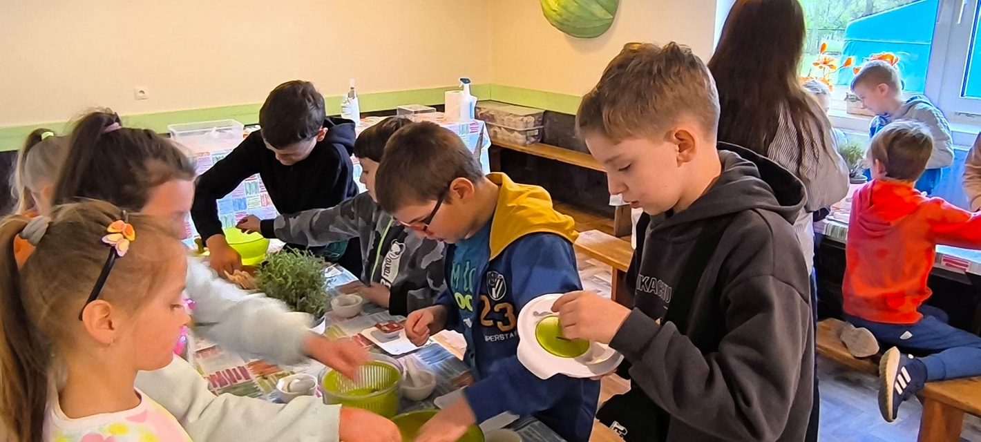 Podczas warsztatów uczniowie przygotowywali pyszne desery z dodatkiem mięty i tymianku, dekorowali koszyczki kwiatami z wiórów osikowych, sadzili zioła do doniczek. Warsztaty były też okazją do rozmowy na temat przyrody, jej znaczenia dla życia człowieka.
