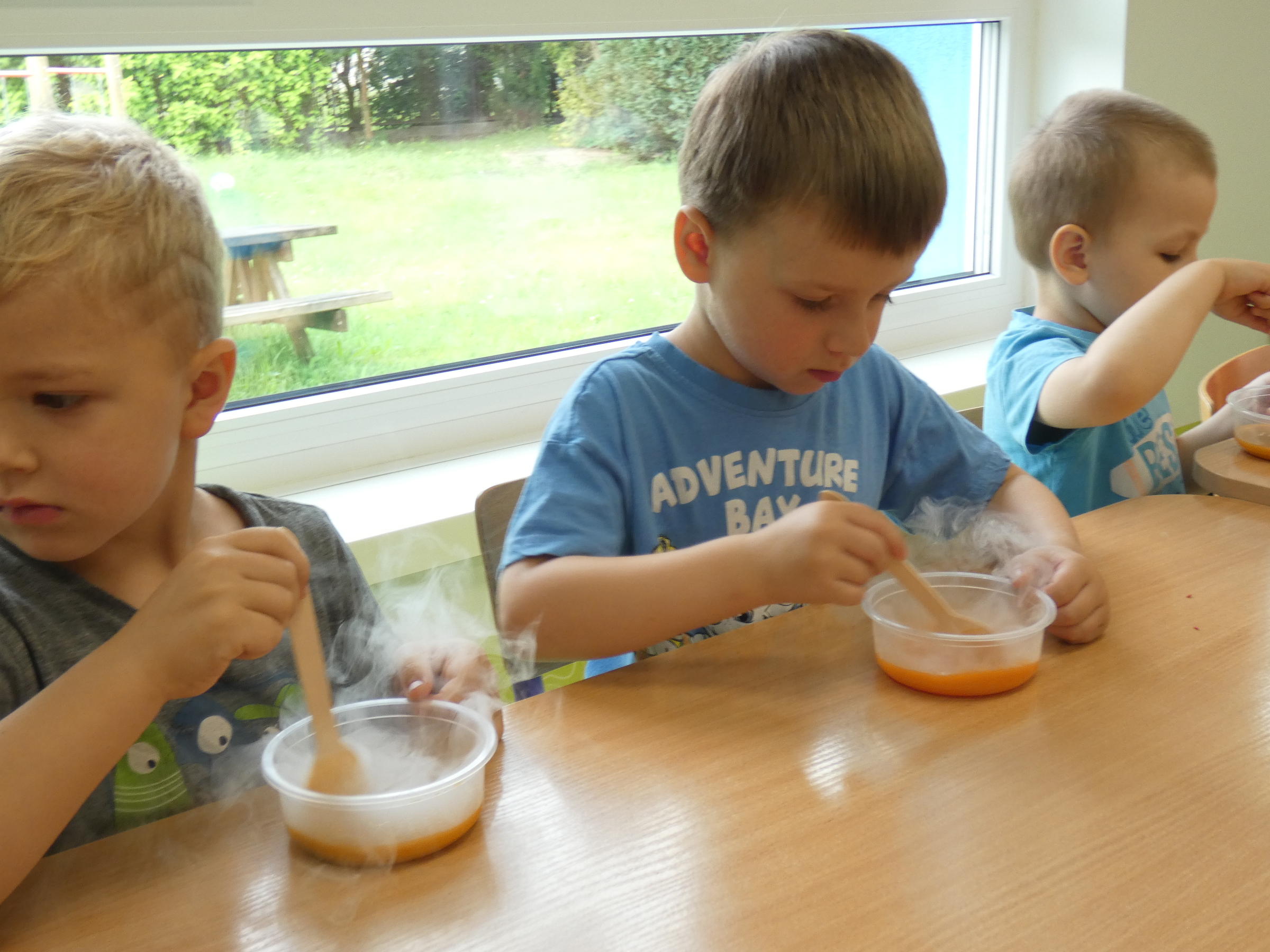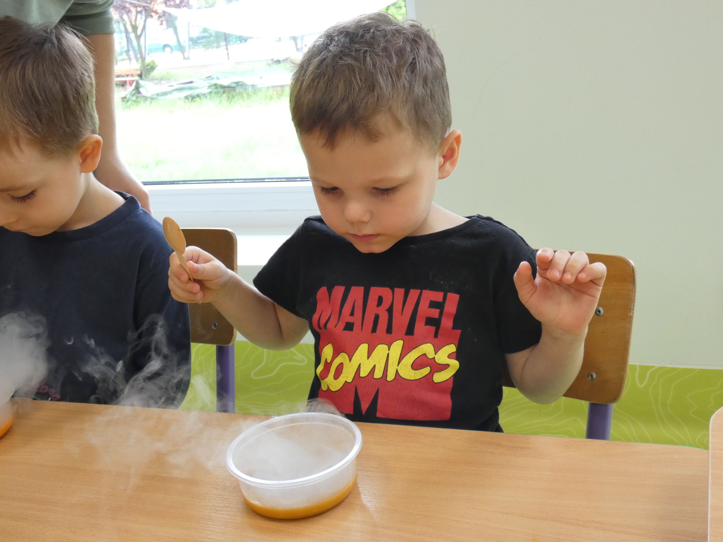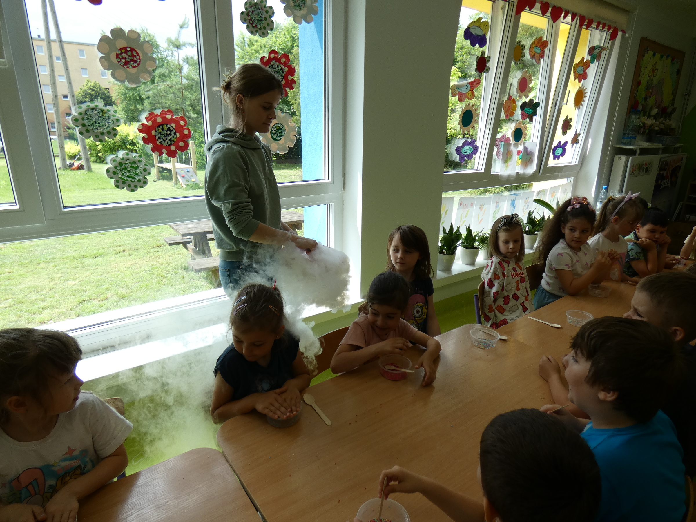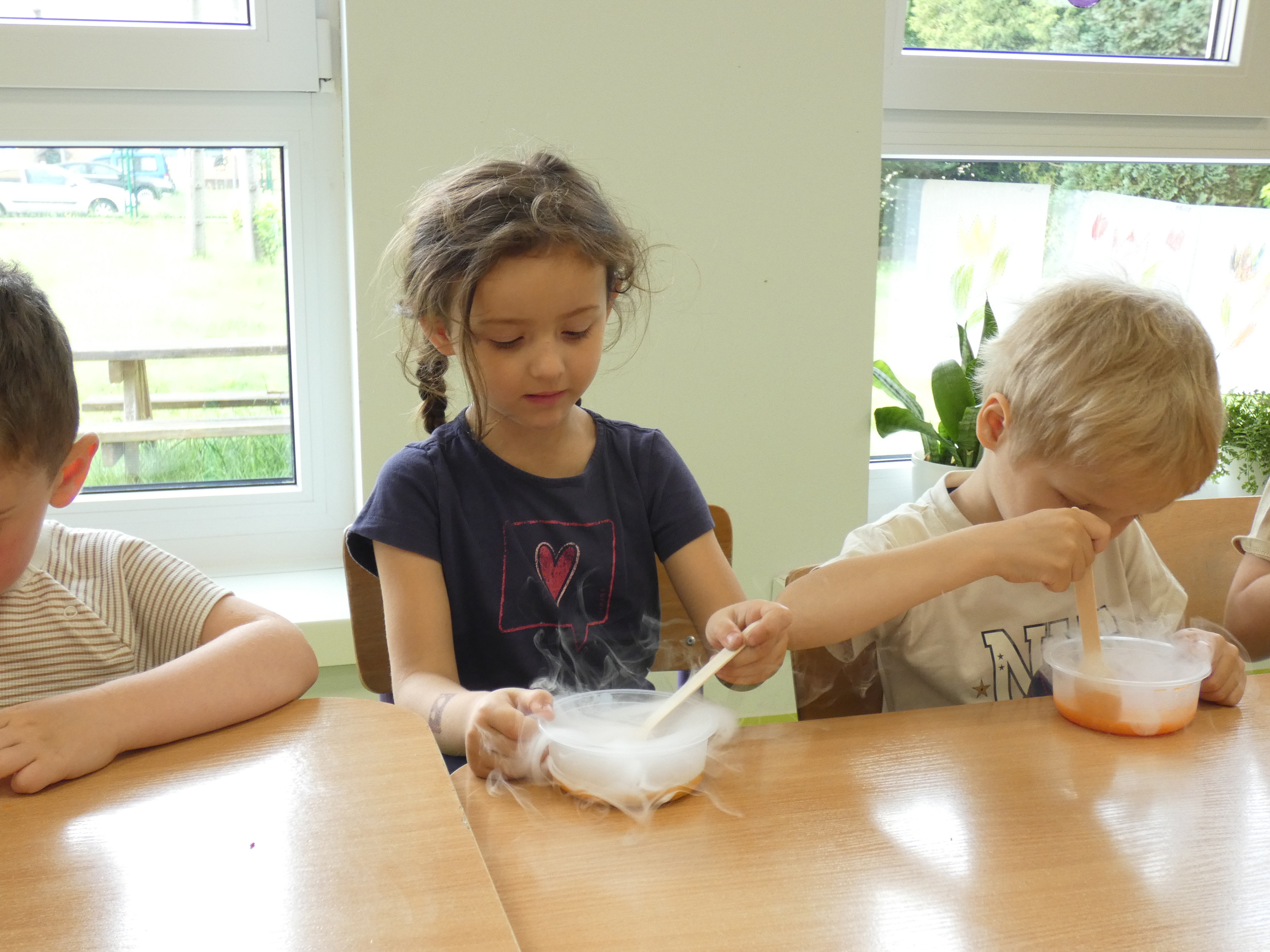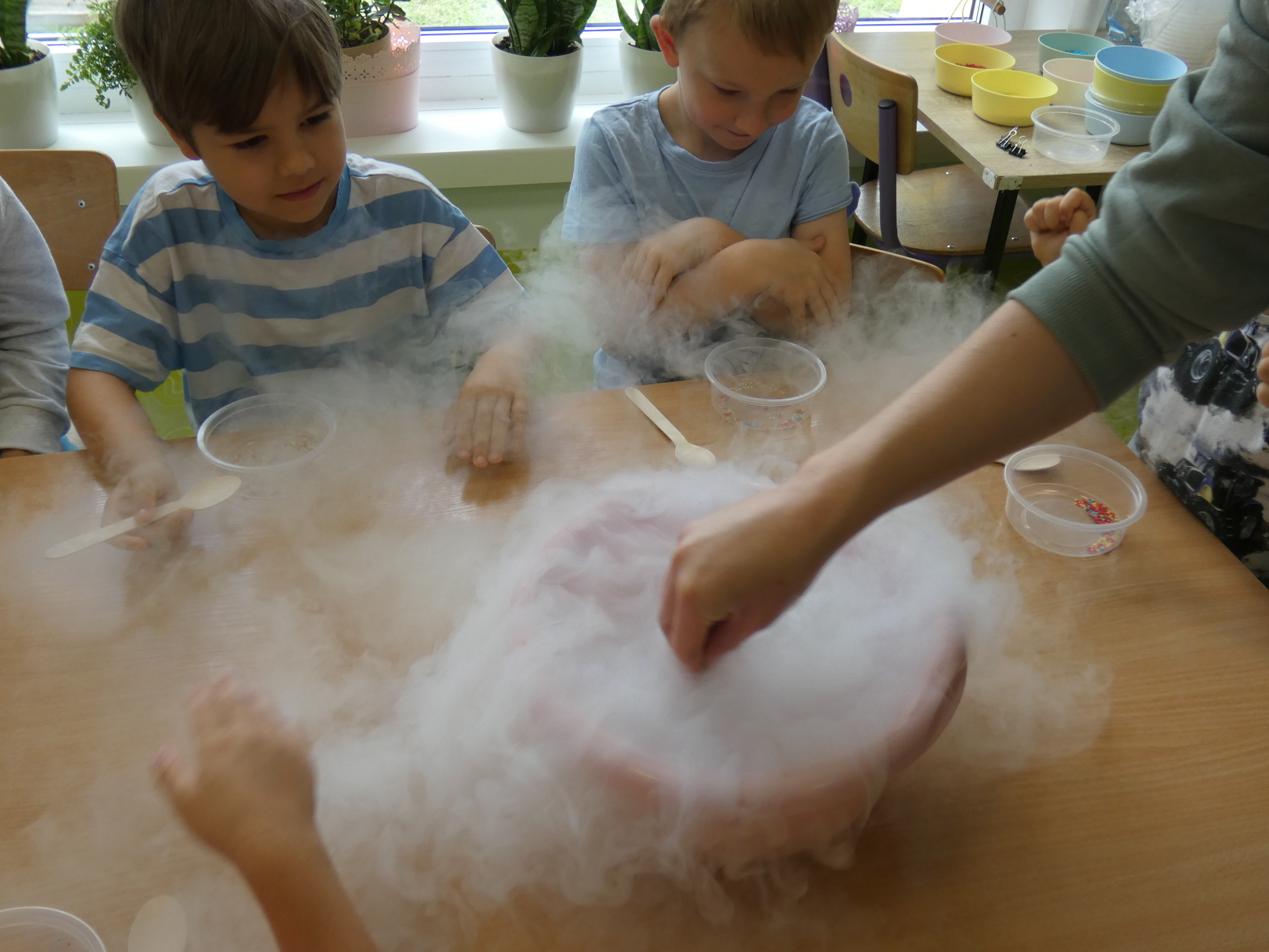 5 czerwca 2024 Warsztaty kuchni molekularnej w przedszkolu Administrator Aktualności Dnia 3 czerwca odbyły się w przedszkolu bardzo ciekawe warsztaty kuchni molekularnej połączone z eksperymentami z ciekłym azotem. Przedszkolaki robiły zdrowe owocowo-warzywne lody, które smakowały wyśmienicie!