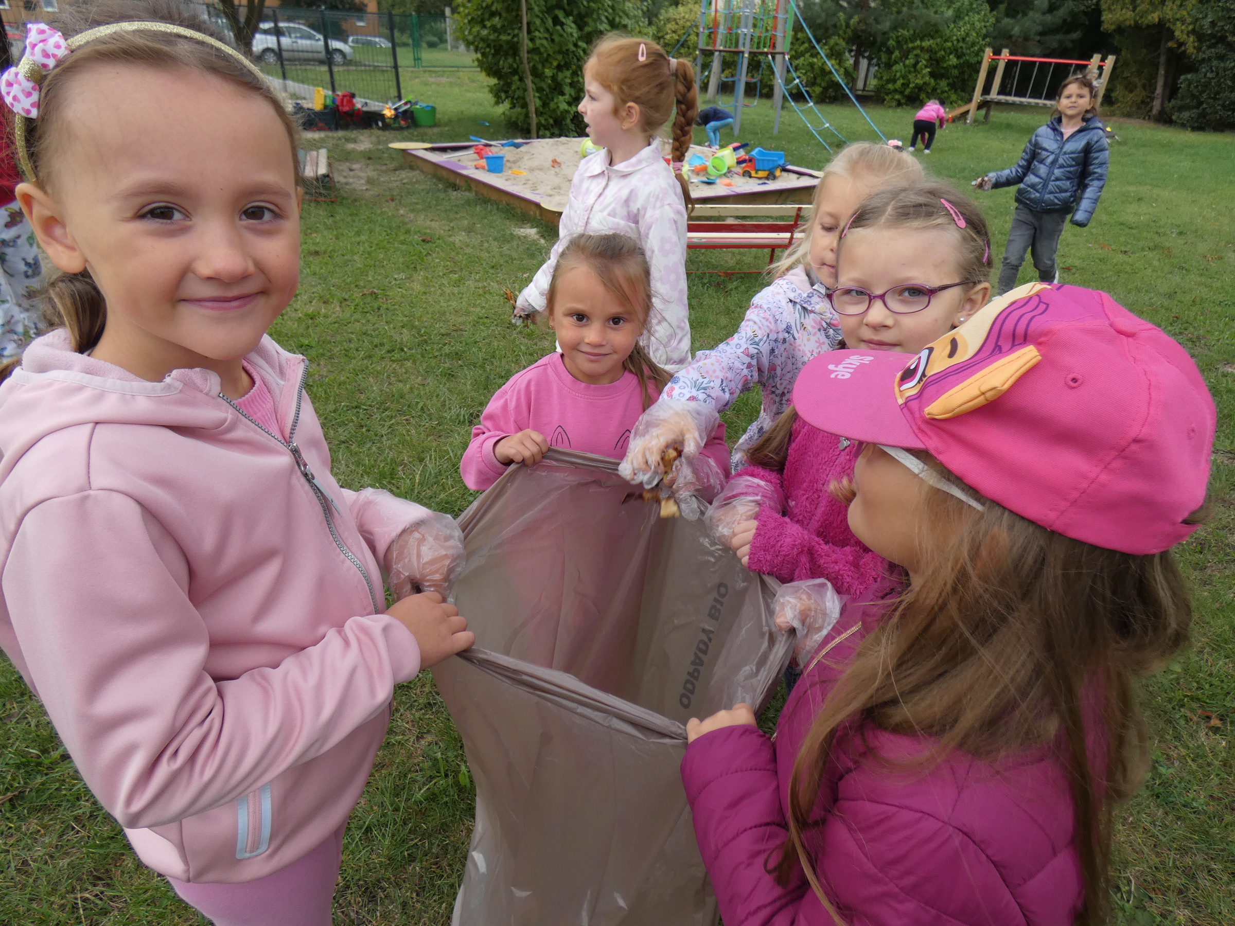 19 września nasze przedszkole dołączyło do 31.Akcji Sprzątanie Świata. Dzieci z wielkim zaangażowaniem porządkowały plac przedszkolny a efekty naszych wspólnych działań pokazują, że ilość śmieci w naturze spada, za to świadomość ekologiczna młodego społeczeństwa rośnie. Każdy taki mały gest, każde wydarzenie i każda poświęcona godzina mają ogromne znaczenie dla Naszej Planety.