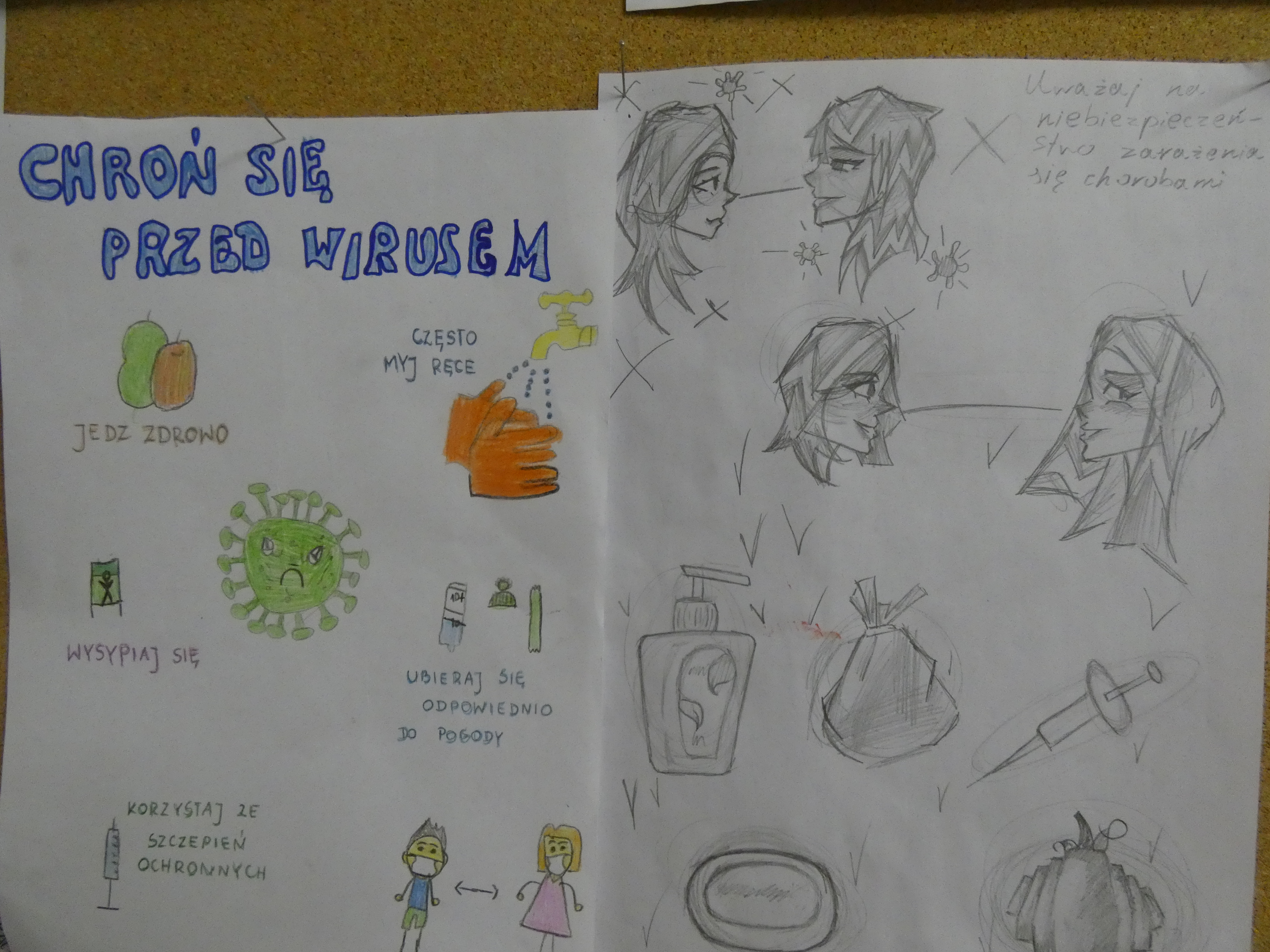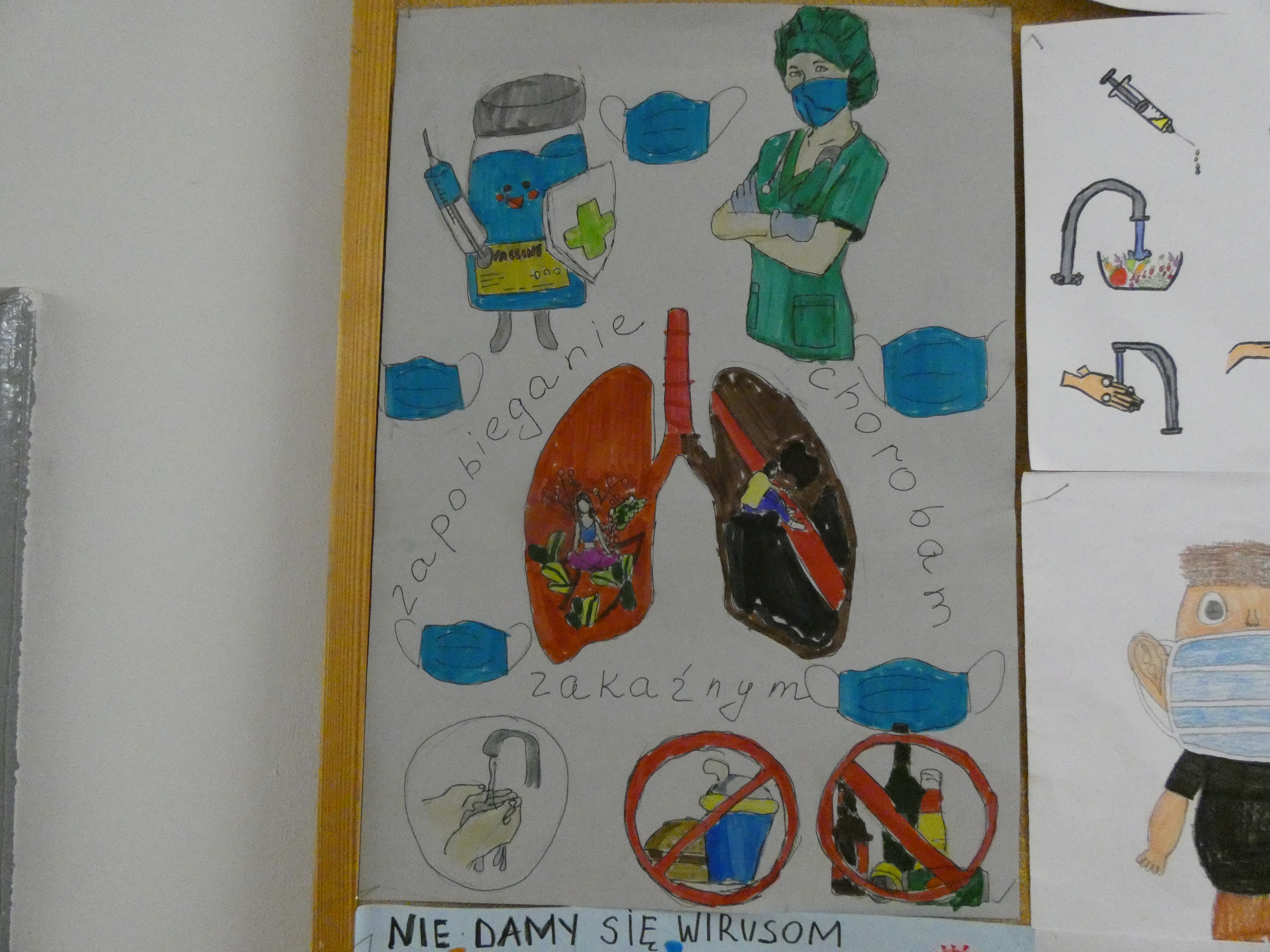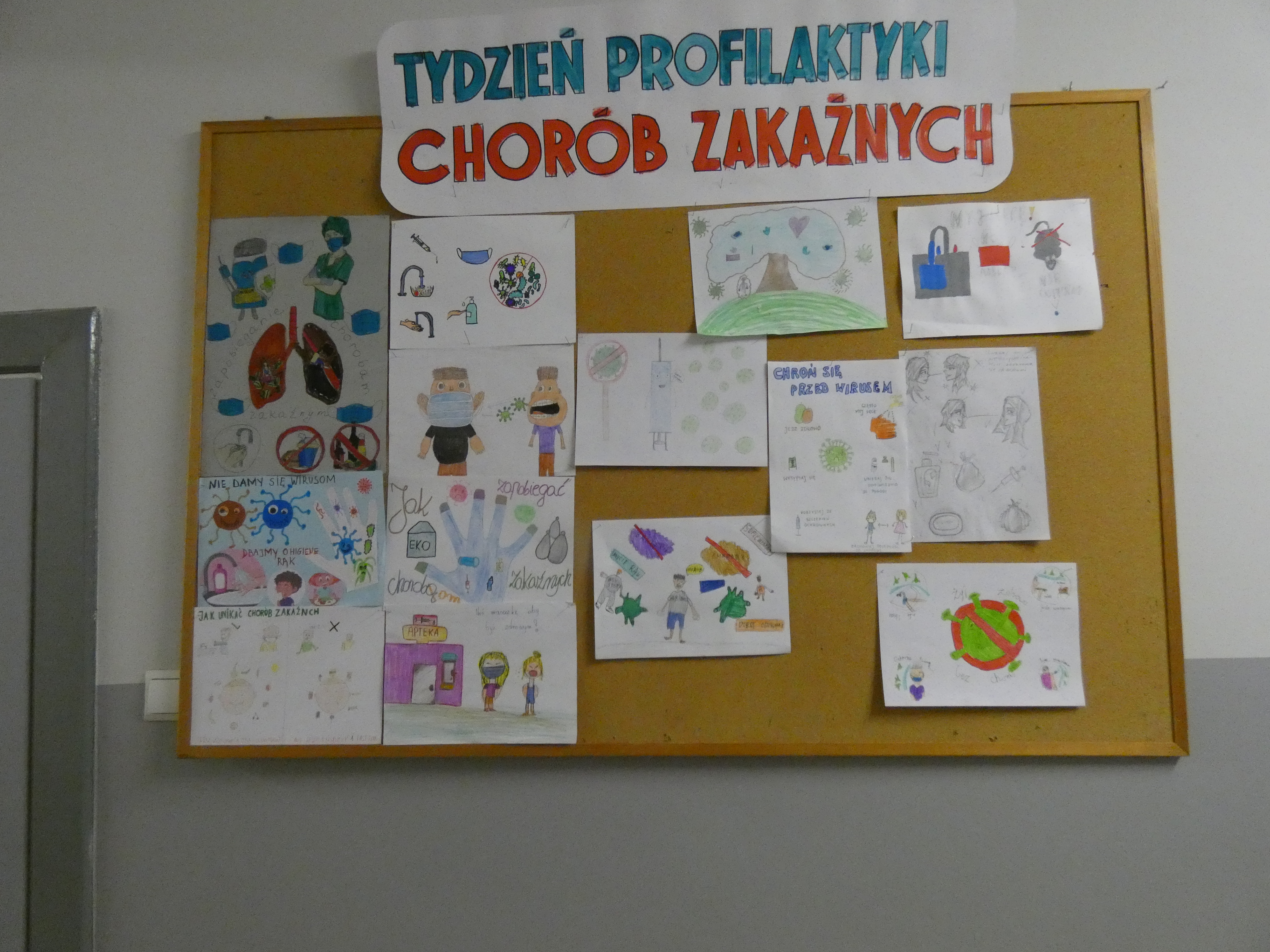 W naszej szkole obchodziliśmy "Tydzień dla profilaktyki chorób zakaźnych". Uczniowie klas z zaangażowaniem wysłuchali prelekcji o zapobieganiu chorobom zakaźnym, która była uwieńczona pokazem filmu oraz zajęciami plastycznymi, na których zostały stworzone plakaty zachęcające między innymi do szczepień ochronnych oraz przestrzeganiu podstawowych zasad higieny. Profilaktyka chorób jest obecnie bardzo ważna ze względu na pojawiające się coraz częściej choroby, które były nieobecne w naszym kraju przez wiele dziesięcioleci. Do tych chorób zaliczamy między innymi Odrę, Koklusz, Ospę wietrzną.
