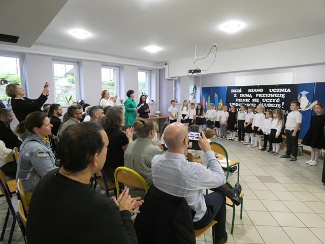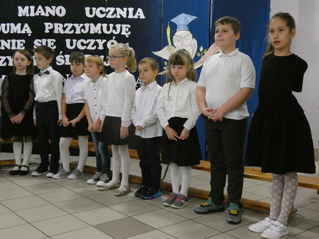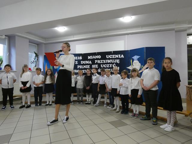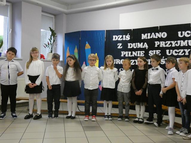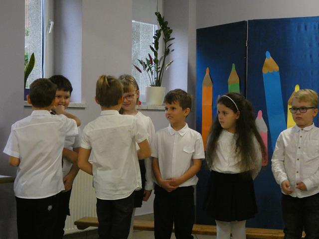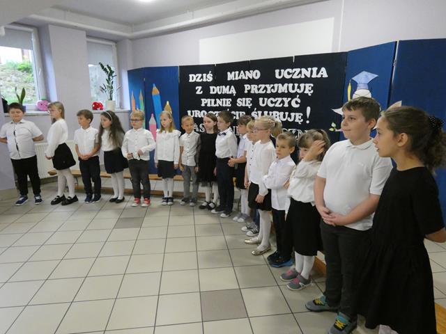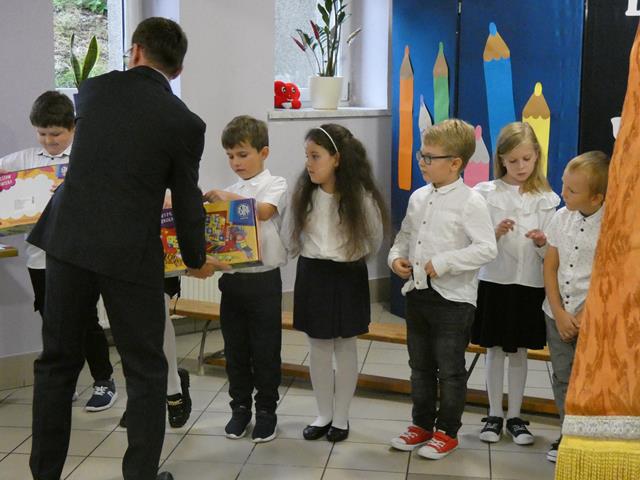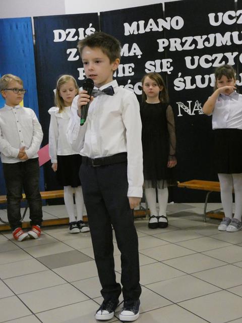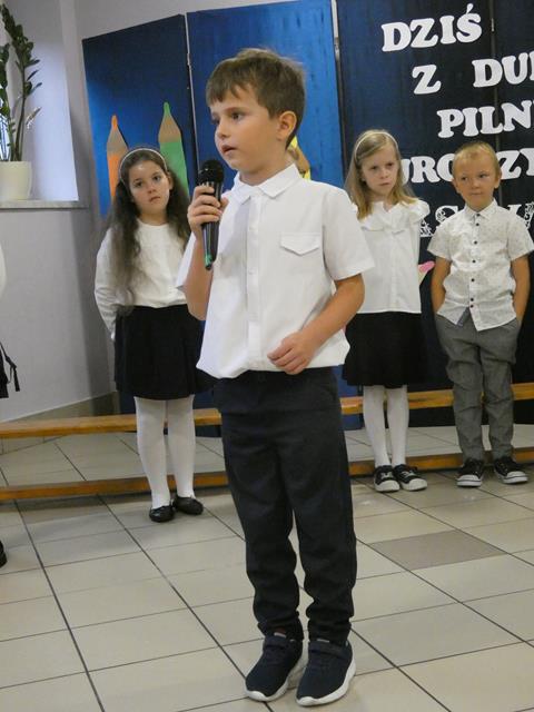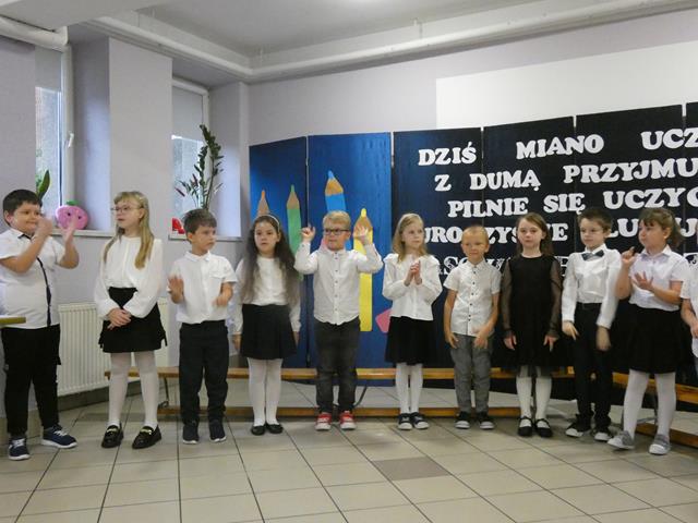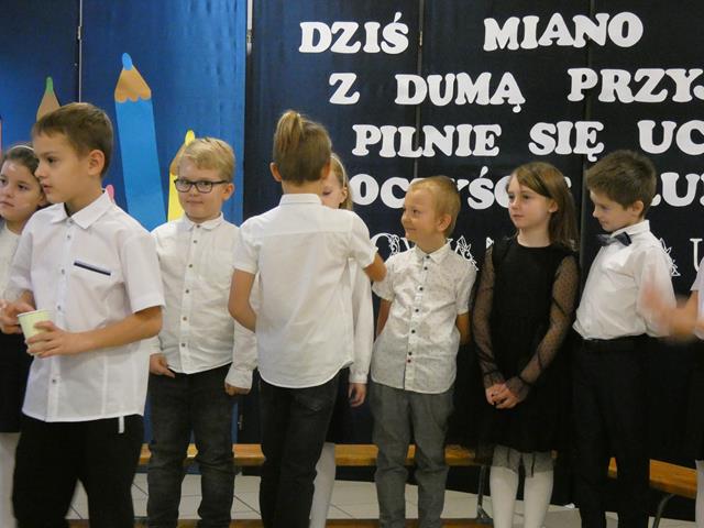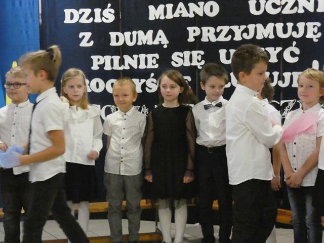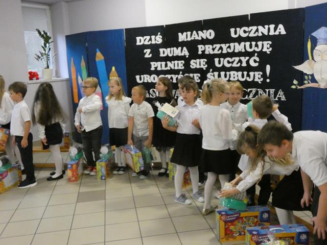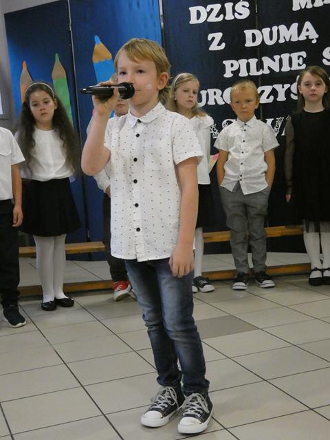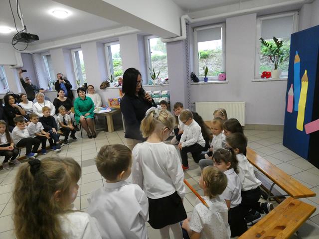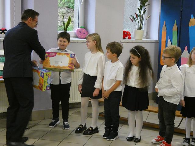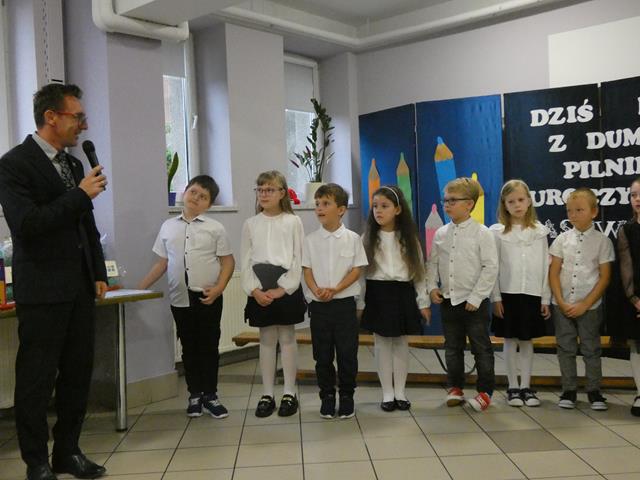 To słowa piosenki, które wybrzmiały dzisiaj śpiewane przez pierwszoklasistów podczas uroczystego Ślubowania na Ucznia Klasy Pierwszej. Kandydaci przeszli prawdziwe przeobrażenie - z ,,budrysów” stali się uczniami Zespołu Szkolno - Przedszkolnego Nr 2 w Rędzinach. Na początku uroczystości pani dyrektor szkoły Agnieszka Ryś powitała wszystkich zgromadzonych, w tym zaproszonego na tą okoliczność Wójta Gminy Rędziny Pana dr Adama Jarugę . Następnie klasa I musiała zaprezentować swoje umiejętności i wykazać się wiedzą z różnych dziedzin – śpiewając piosenki, recytując wierszyki oraz wykazując się wiedzą o Polsce i znajomością hymnu państwowego. Klasa II przywitała swoich młodszych kolegów i koleżanki bardzo serdecznie życząc im jednocześnie dobrej zabawy. Po złożeniu obietnic przez pierwszoklasistów pani dyrektor każdego z osobna pasowała na ucznia szkoły. W dalszej kolejności głos zabrał Pan Wójt, który serdecznie przywitał wszystkich zebranych i wręczył pierwszakom ufundowane prezenty. Zresztą prezentom i niespodziankom nie było końca: od Szkoły, od Rady Rodziców, od Rodziców, od klasy II, a uwieńczeniem tego dnia był słodki poczęstunek.