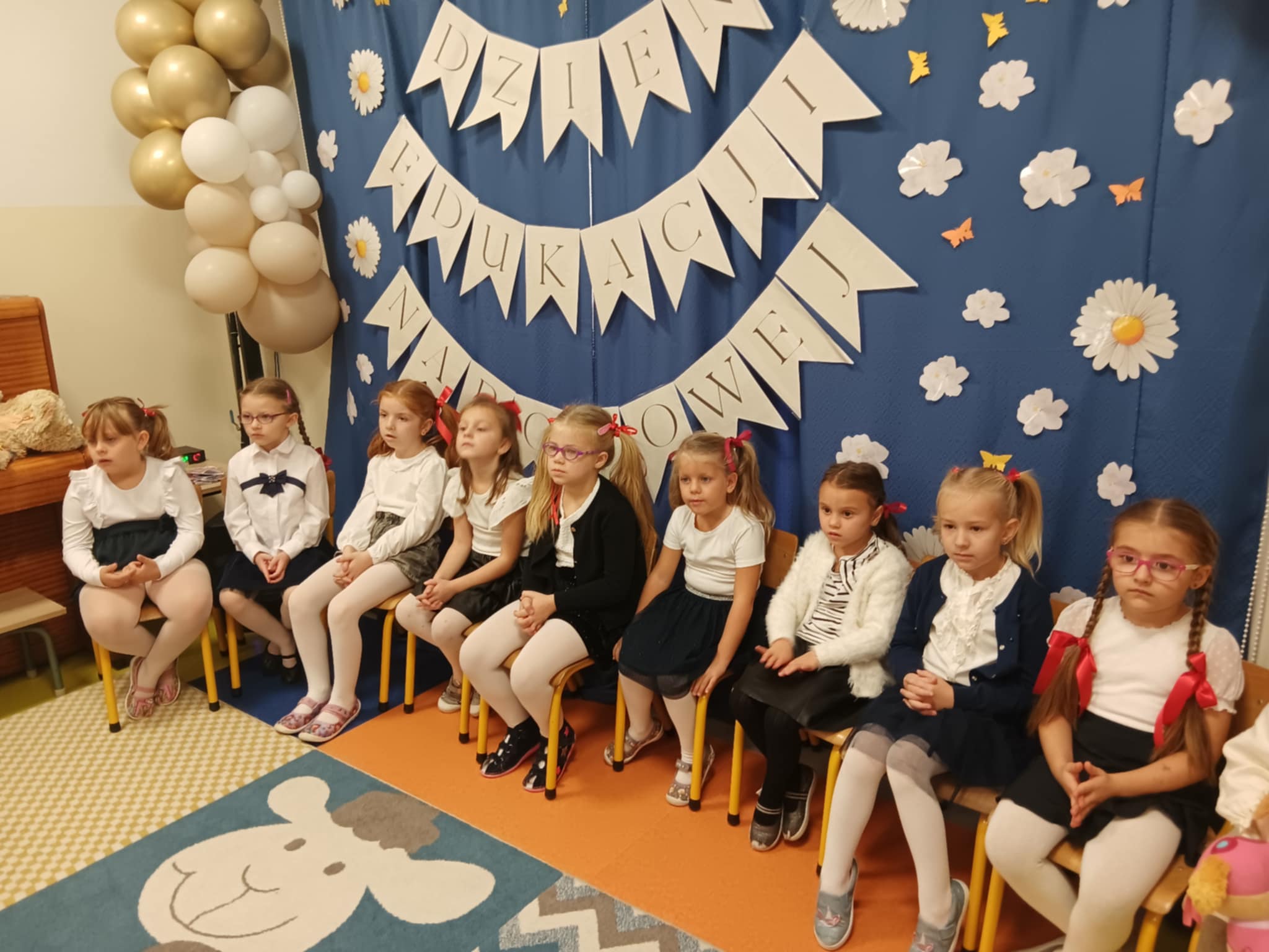 14 października odbyła się w naszym przedszkolu ważna uroczystość DZIEŃ EDUKACJI NARODOWEJ. Z tej okazji wszystkie grupy wiekowe przygotowały piękne programy artystyczne oraz własnoręcznie wykonały upominki dla całego personelu. Nasi zdolni wychowankowie wierszem, piosenką i tańcem wyrazili podziękowanie wszystkim pracownikom przedszkola za trud, opiekę i wychowanie. Na zakończenie przygotowana została wzruszająca prezentacja dla wszystkich pracowników przedszkola - DZIĘKUJEMY!!! Zapraszamy również na wystawę portretów Pracowników Przedszkola przygotowaną przez dzieci 6-letnie, która znajduje się w szatni przedszkolnej. BRAWO Nasi Zdolni Artyści!!!