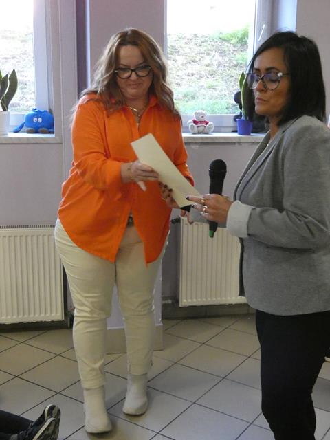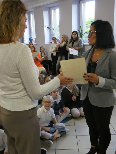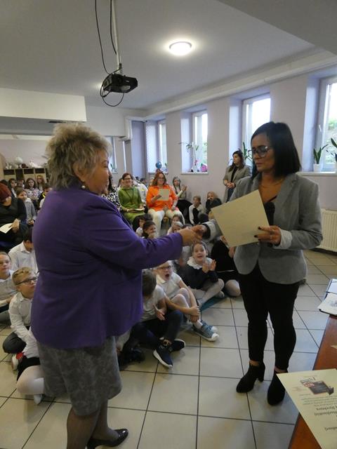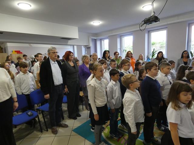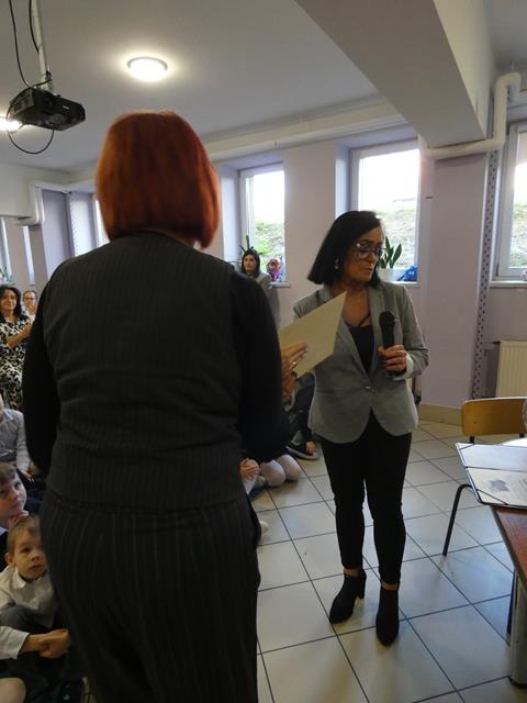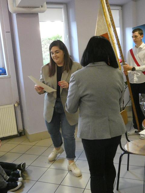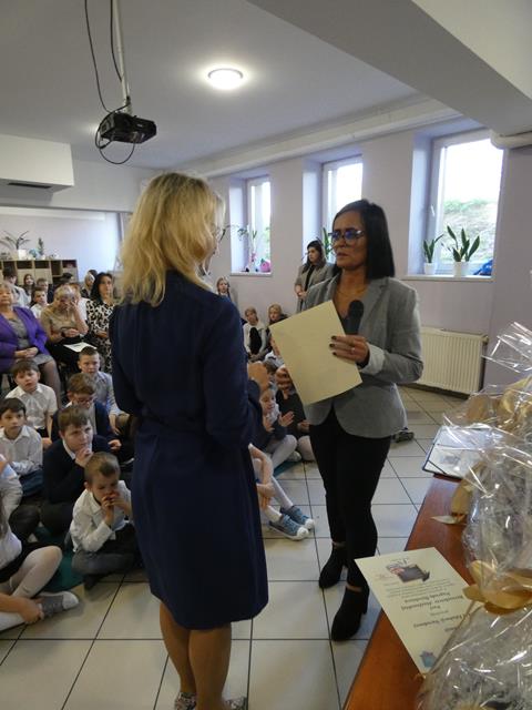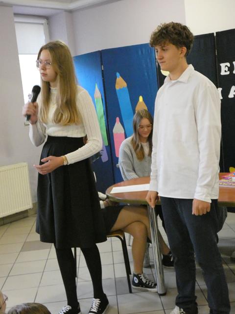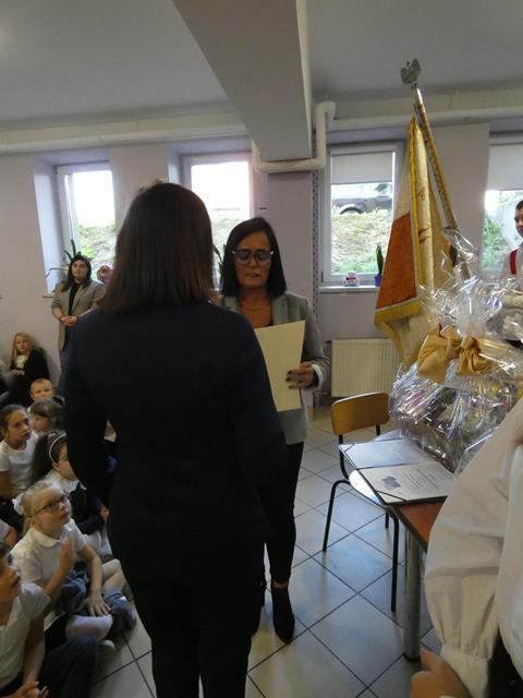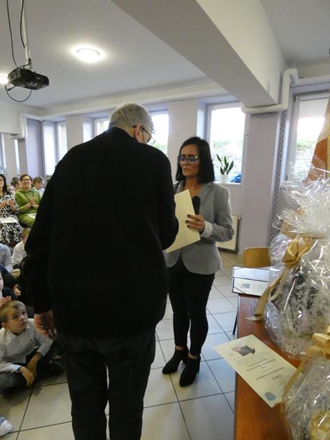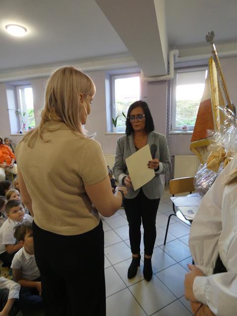 Jak co roku „Dzień Edukacji Narodowej” zgromadził całą społeczność szkolną, bo nic tak nie łączy ludzi, jak przekazywanie wiedzy. Uczniowie klas 8a i 8b, pod kierunkiem swoich wychowawczyń: p. Bożeny Migoń i p. Beaty Gulińskiej. przygotowali program artystyczny, który w wesoły sposób pokazał, jak wygląda od podszewki „pozalekcyjna” praca pedagogów. Chociaż program był niejako radosną satyrą, to tak naprawdę odzwierciedlał codzienną rzeczywistość trudnej pracy nauczycieli. Całość programu dopełniły piosenki, jedna z nich w samo sedno trafiła z przesłaniem dla wszystkich „Ludzi Oświaty”, bo któż nie życzyłby im : „Szczęścia ile się da, miłości w bród, mądrych ludzi wokół” . Uroczystość była także okazją do nagrodzenia przez Panią dyrektor Agnieszkę Ryś nauczycieli i pracowników szkoły. Na zakończenie przedstawiciele Rady Rodziców zaprosili na specjalnie przygotowany na tę uroczystość wspaniały tort.