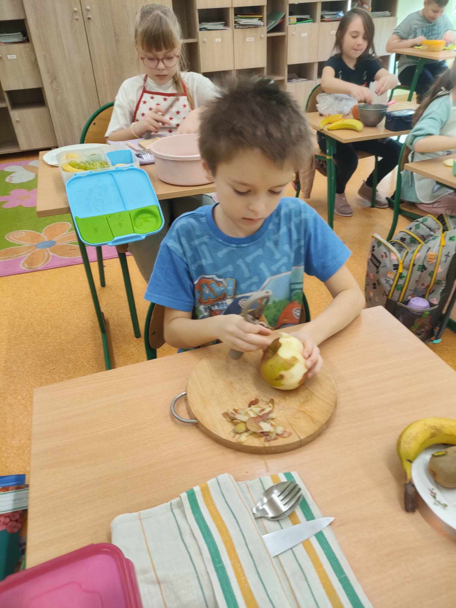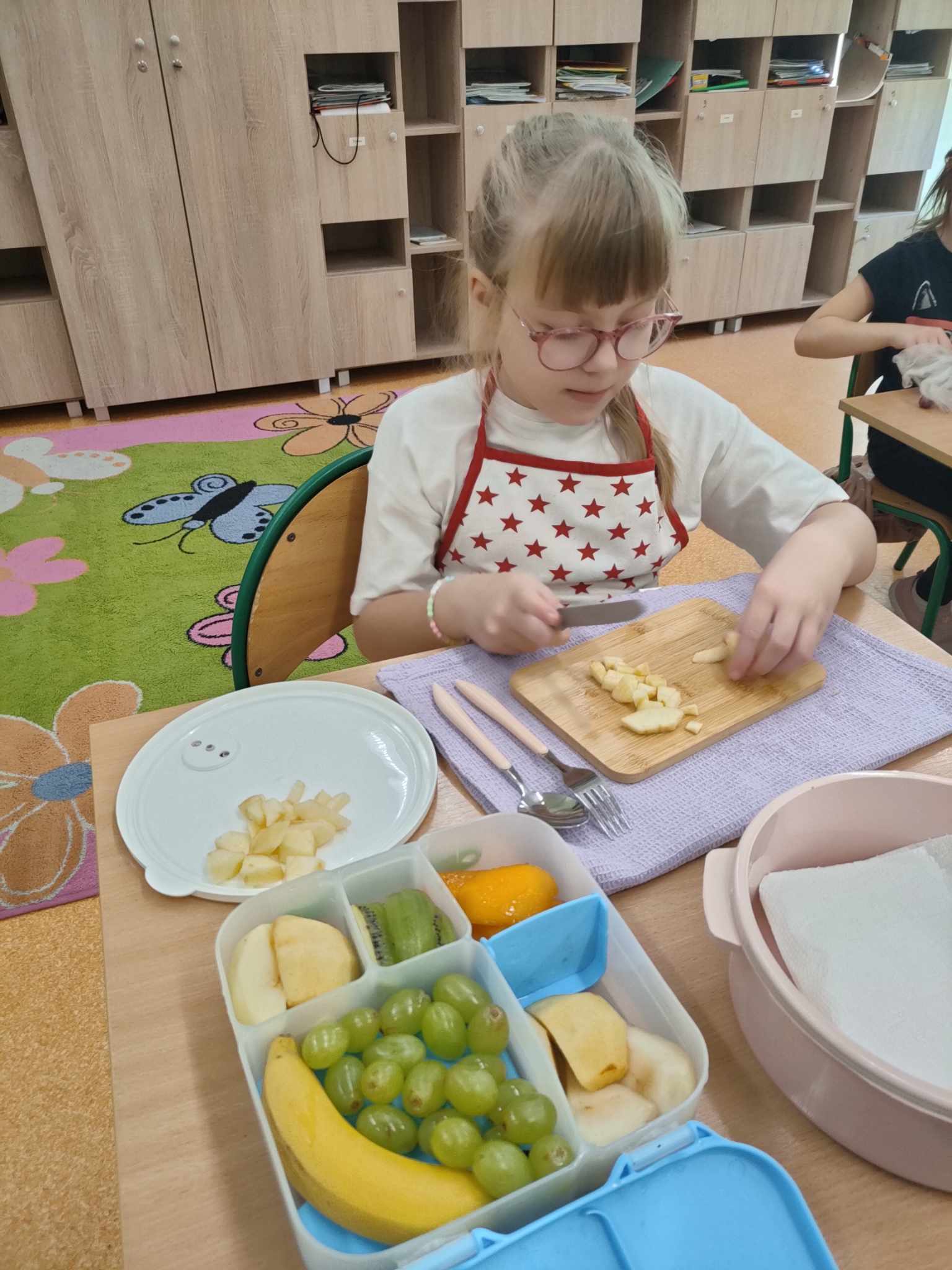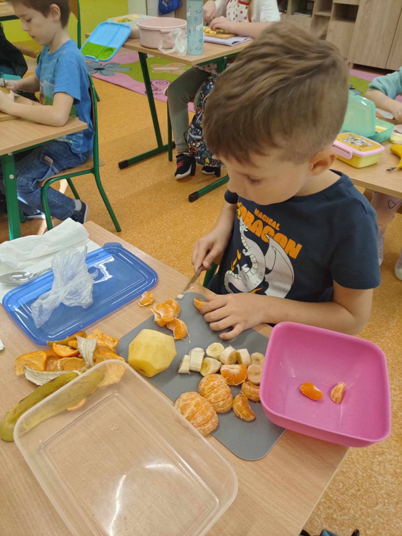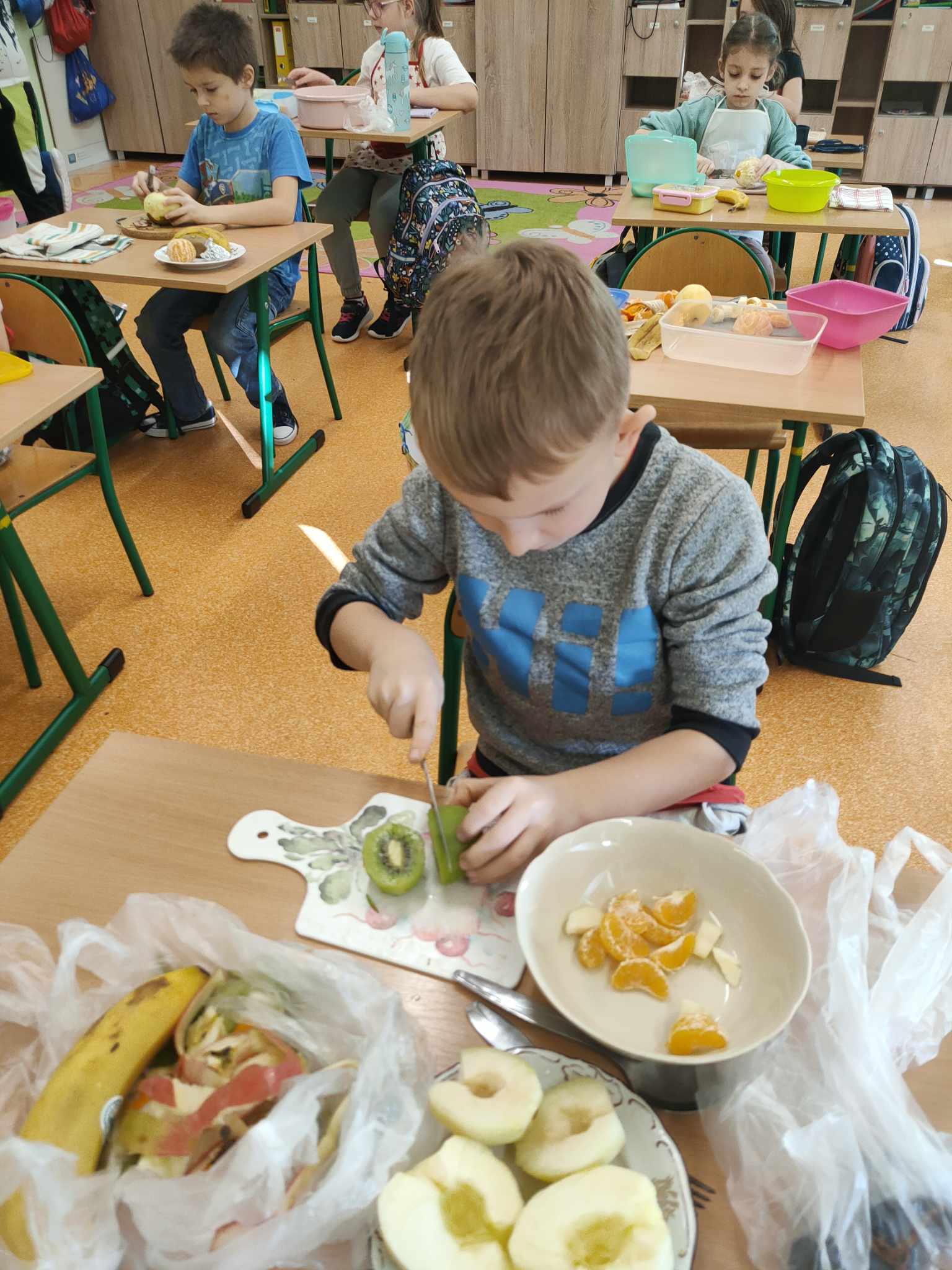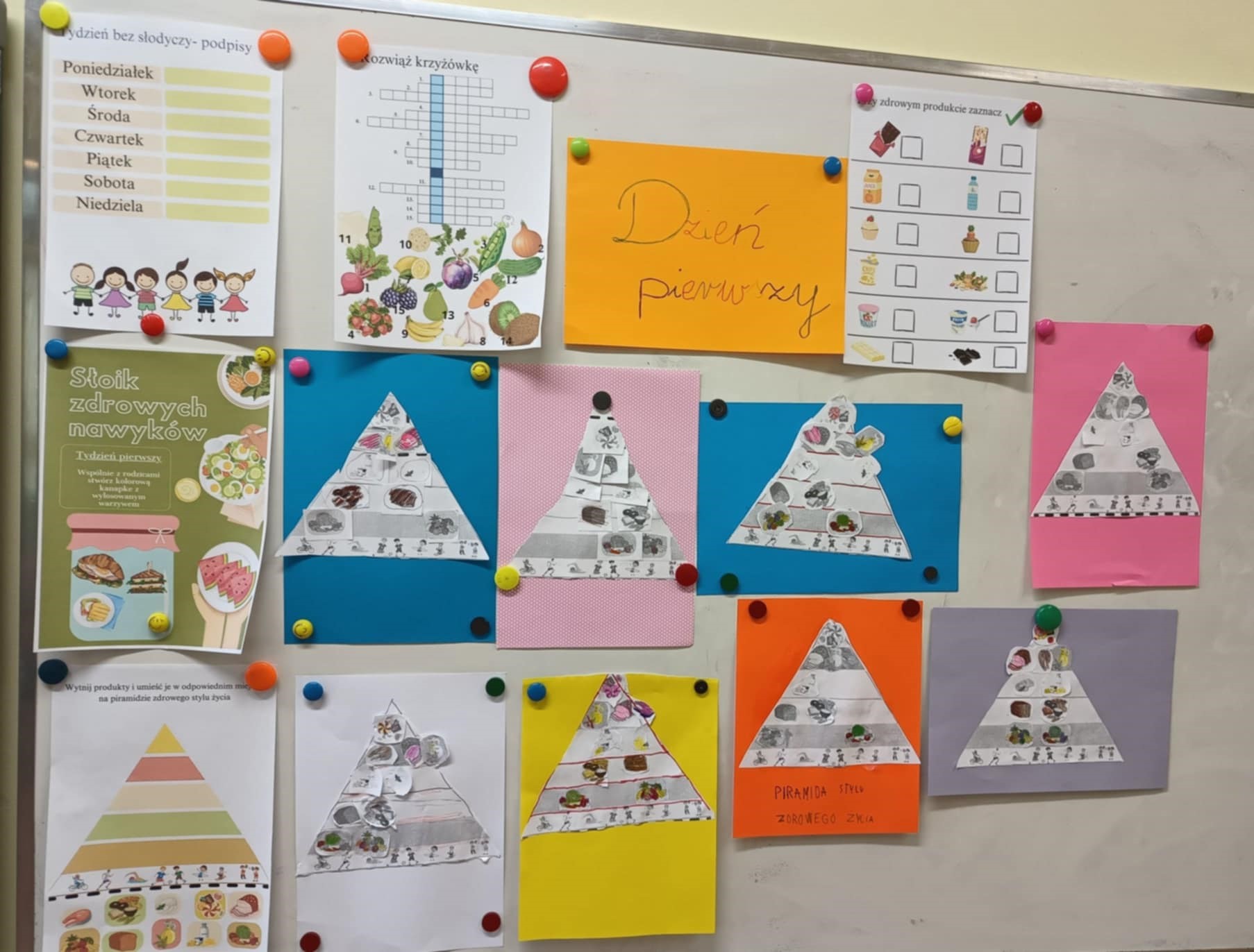 25 października dobiegł końca „Festiwal zdrowych nawyków: zdrowo i kolorowo”, który odbywał się w naszej szkole w ramach projektu mającego podnieść świadomość zarówno nauczycieli, dzieci, jak i ich rodziców na temat roli i znaczenia prawidłowego odżywiania i aktywności fizycznej w codziennym życiu. Uczniowie klas 1-3 mogli zaznajomić się z piramidą zdrowego stylu życia, porozmawiać na temat potrzeby picia dużej ilości wody i jej ogólnego znaczenia dla człowieka, roślin i zwierząt. Przeprowadzono eksperymenty, które udowadniały szkodliwość nadmiernego spożywania cukru i jego zawartości w różnych produktach żywnościowych. Uczniowie klasy 1 przygotowywali dodatkowo sałatki owocowe, a uczniowie klasy 3 spędzali aktywnie czas w trakcie przerw śródlekcyjnych wykonując ćwiczenia ruchowe. Podczas działań projektowych uczniowie wykonywali również prace plastyczne oraz rozwiązywali krzyżówki i rebusy. W ostatnim dniu każdy z uczniów otrzymał pamiątkową odznakę za udział w festiwalu, która była jednocześnie formą nagrody za jego zaangażowanie i aktywność podczas zajęć. Projekt był prowadzony przez nauczycielki edukacji wczesnoszkolnej: p. B. Józefowską, p. A. Ferdyczak i p. M. Dziubę, a koordynatorem działań była p. A. Kopyto.