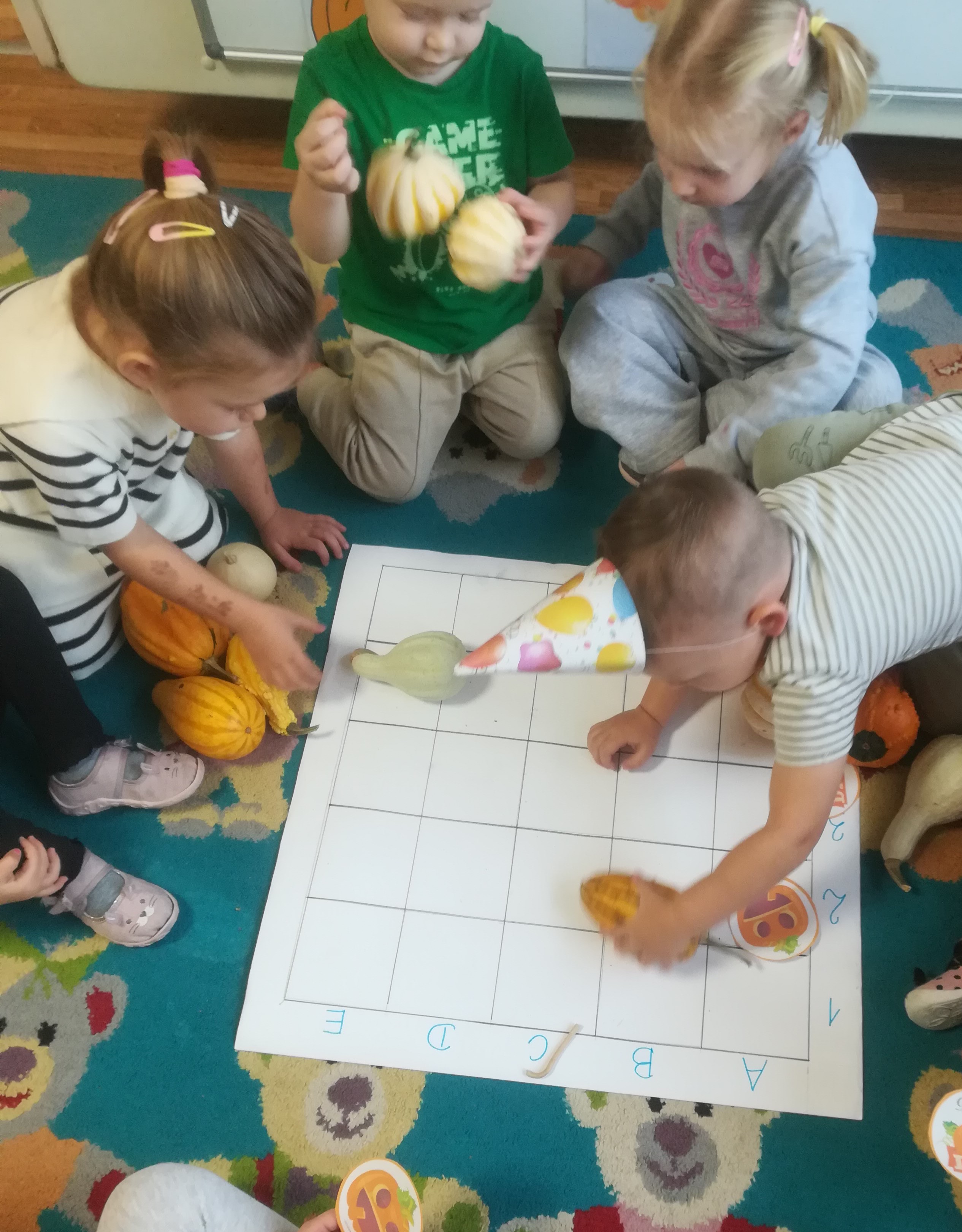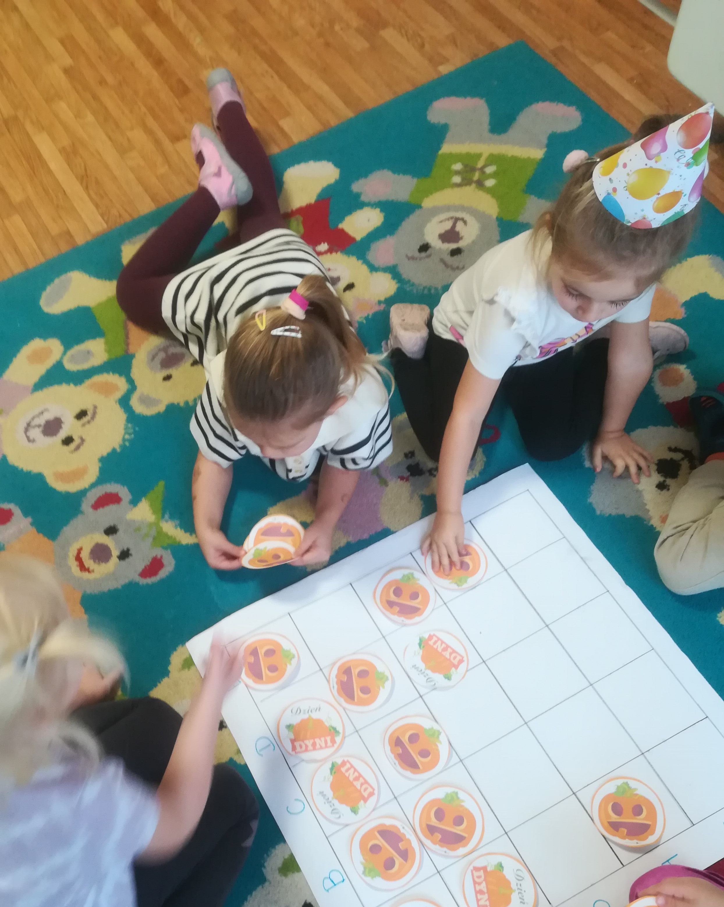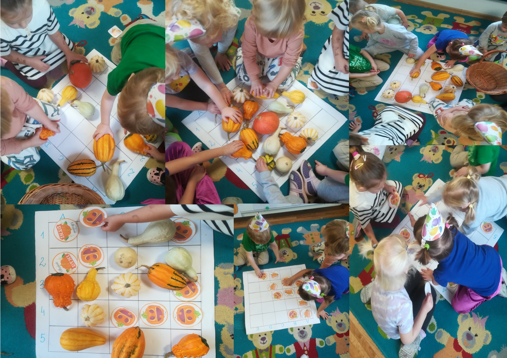 Dzieci 3-letnie z wielkim zapałem realizują kolejne zadania Ogólnopolskiego Programu Uczymy Dzieci Programować. Tym razem DYNIA w roli głównej. Tworzymy obrazy na macie do kodowania za pomocą elementów graficznych oraz naturalnych materiałów zgromadzonych w Kąciku Przyrody. W ten sposób wprowadzamy elementy programowania do zajęć dydaktycznych i wspieramy rozwój kluczowych kompetencji u dzieci na etapie wychowania przedszkolnego.