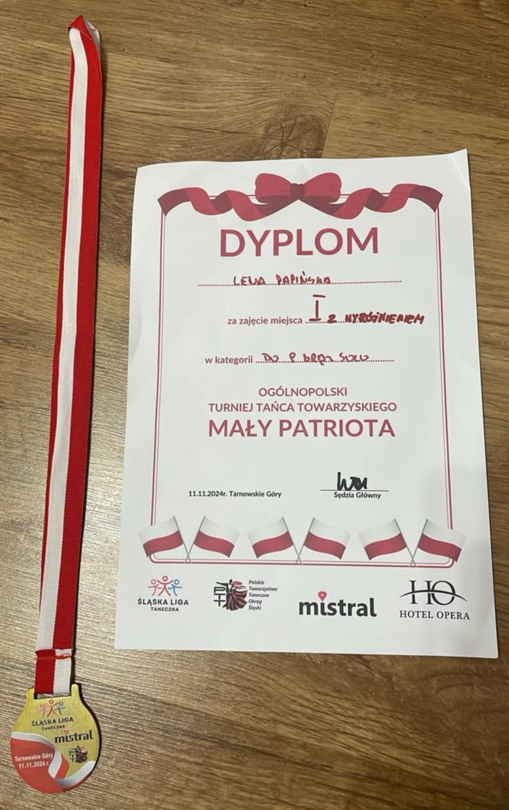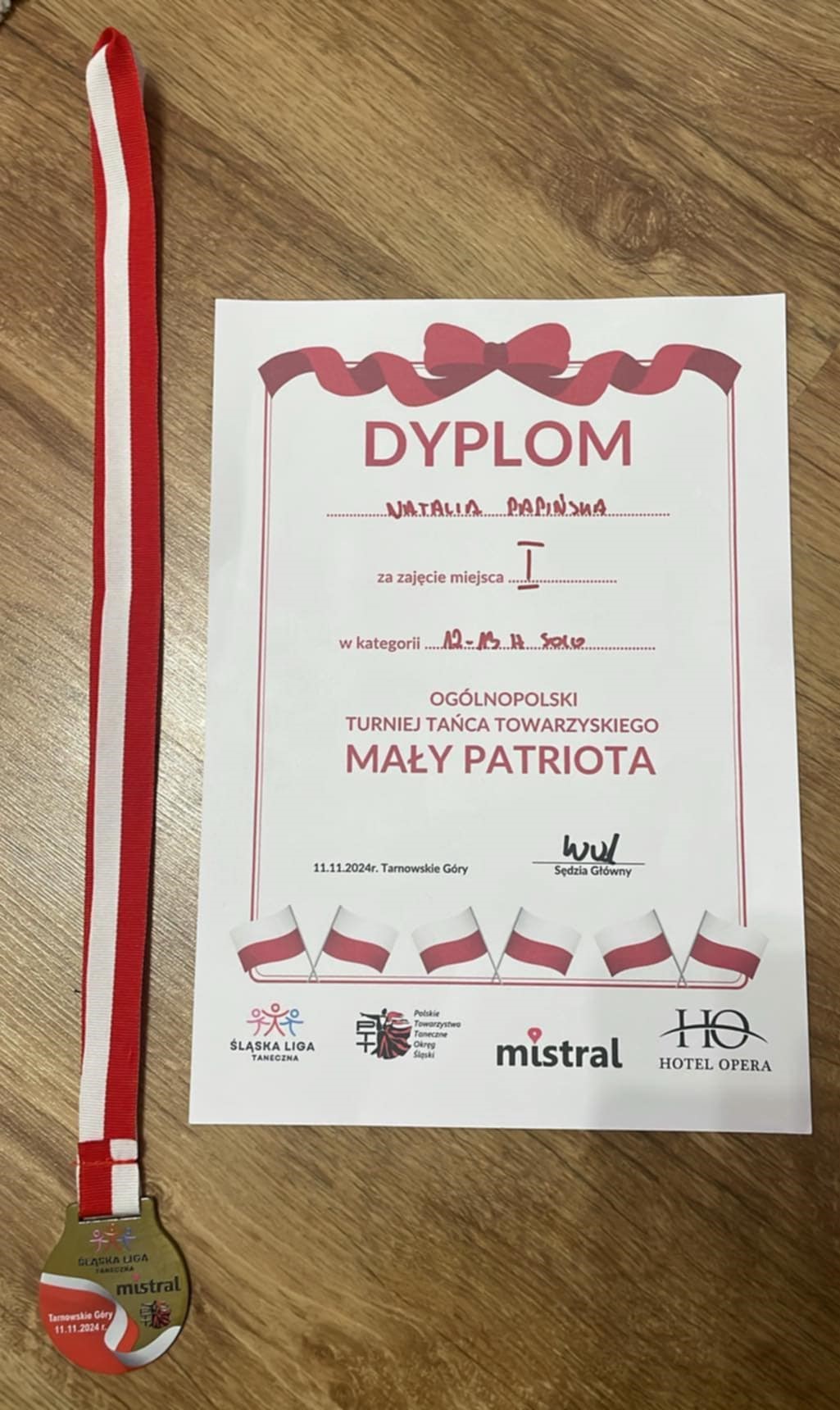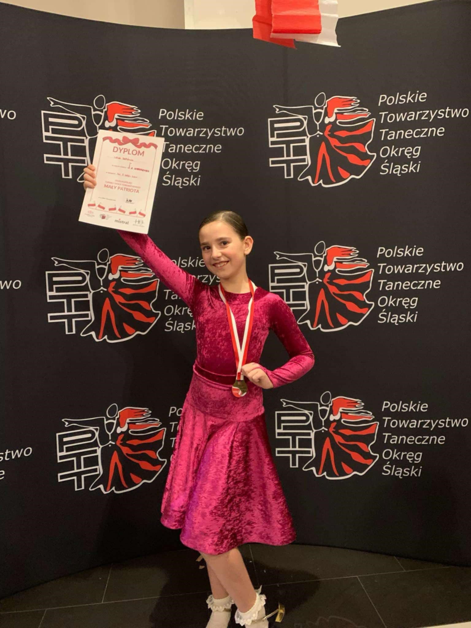Natalia Papińska - uczennica kl.6 i Lena Papińska - uczennica kl.3 wzięły udział w Ogólnopolskim Turnieju Tańca Towarzyskiego MAŁY PATRIOTA ŚLĄSKA LIGA TANECZNA, który odbył się 11 listopada w Tarnowskich Górach.