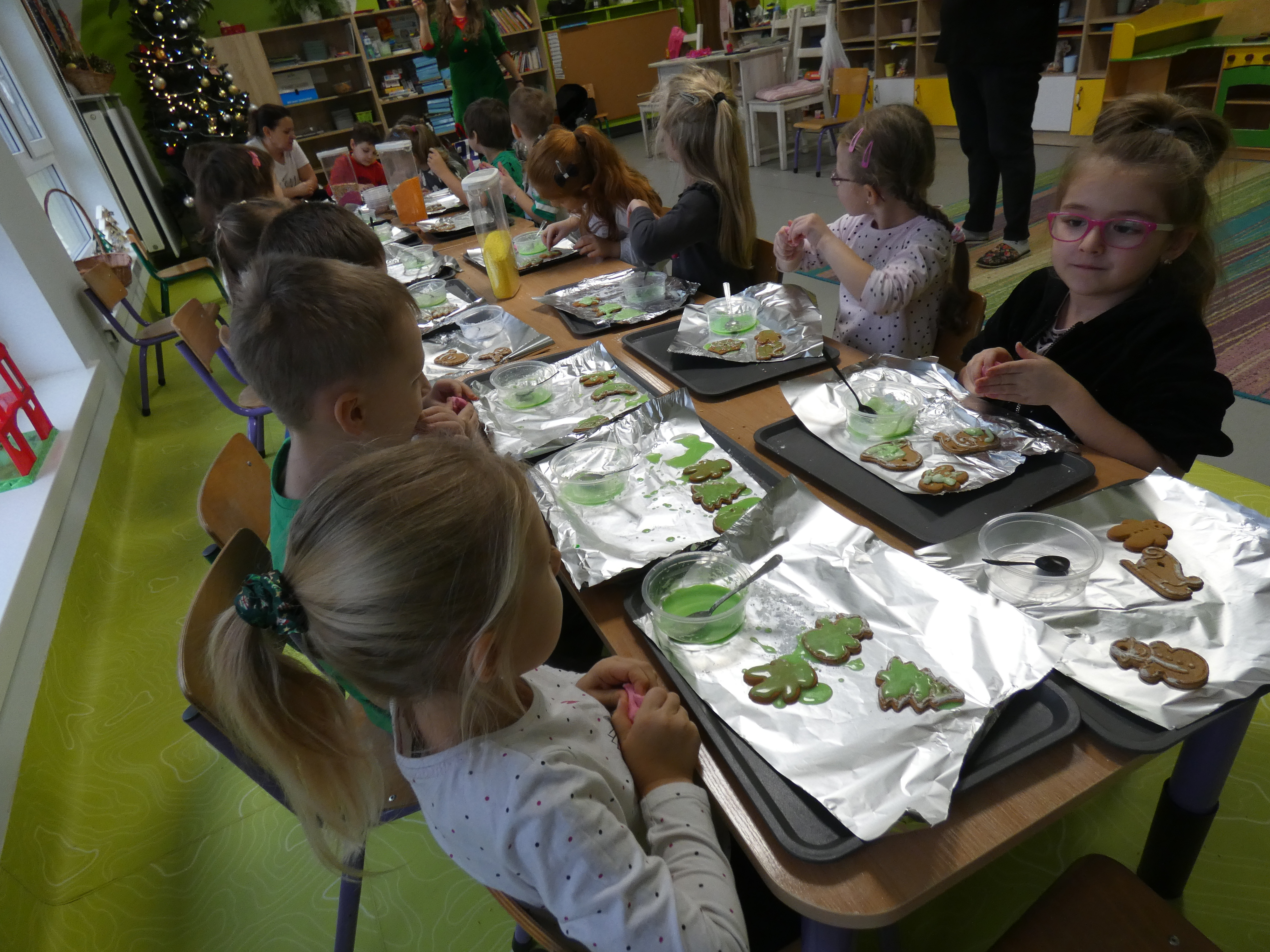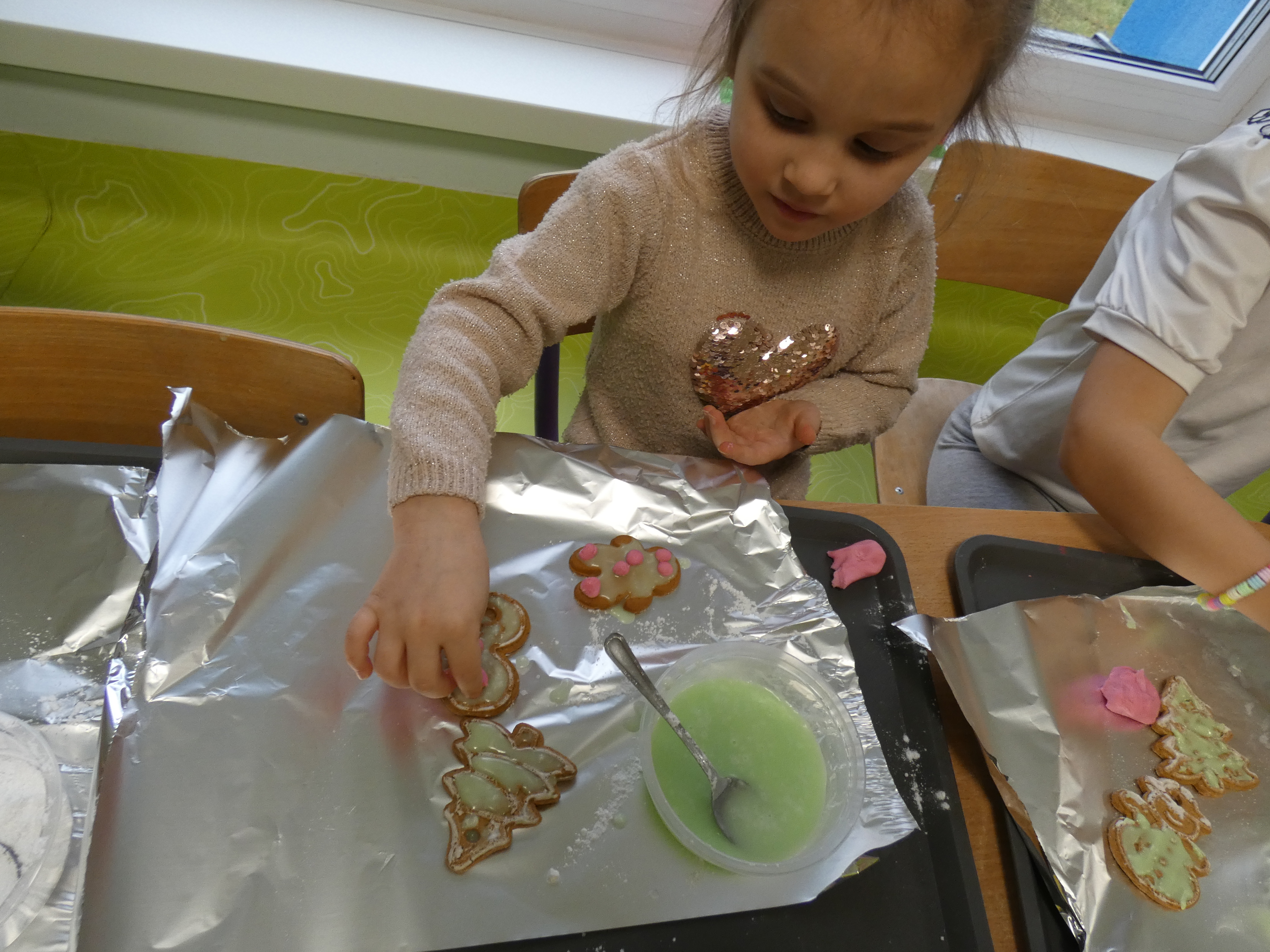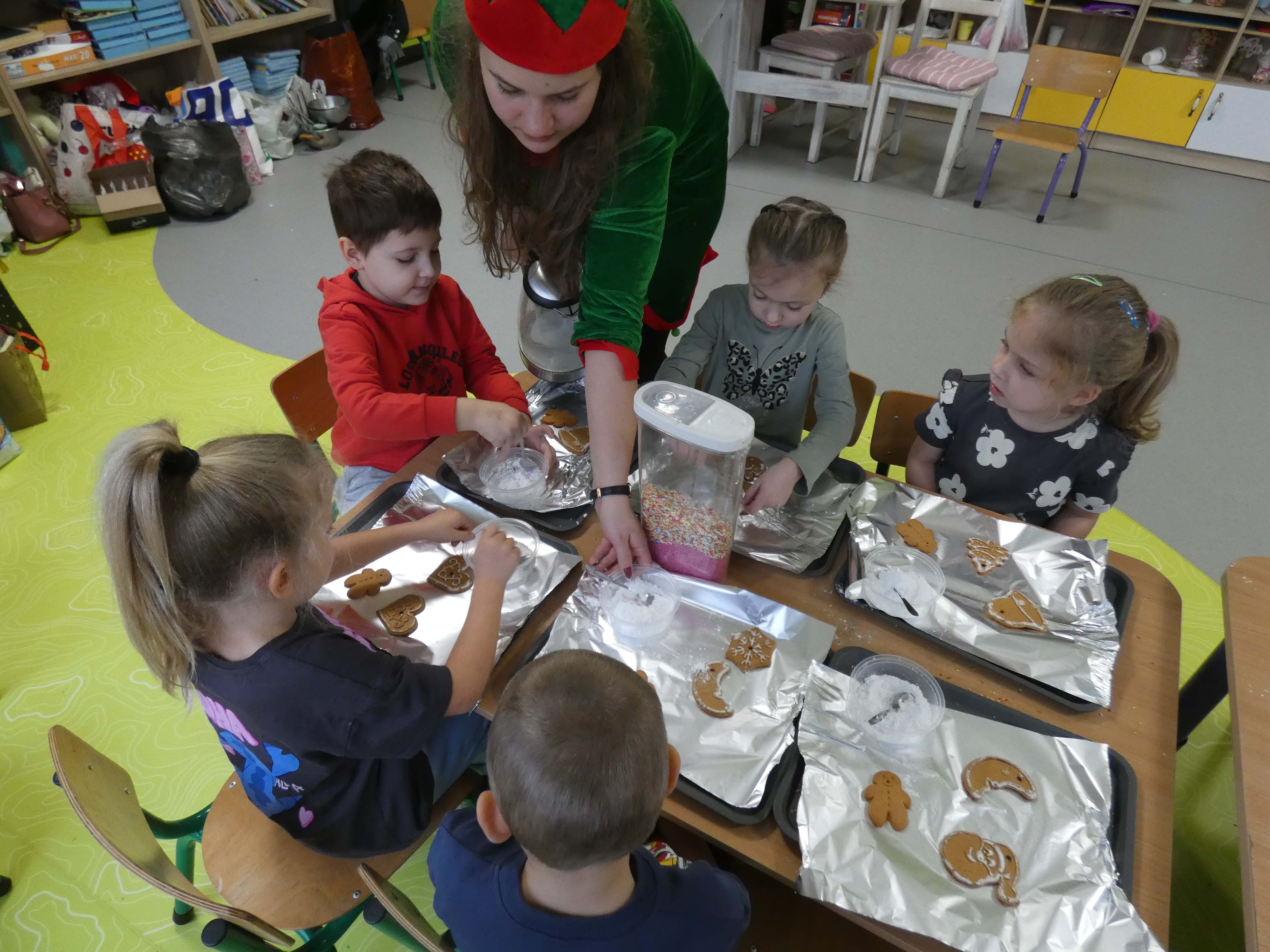 Dekorowanie pierników to piękna świąteczna tradycja, która pozwala tworzyć niepowtarzalną atmosferę zbliżających się świąt. W trakcie dzisiejszych warsztatów dzieci razem z Elfikie miały możliwość samodzielnego ozdobienia świątecznych pierniczków. Frajdy i słodkiej zabawy było co niemiara. Każdy piernik wykonany przez przedszkolaków był unikalny, zachwycał oryginalnością i pomysłowością. Piękne i kolorowe pierniczki można zawiesić na choince, podarować komuś bliskiemu lub po prostu zjeść.