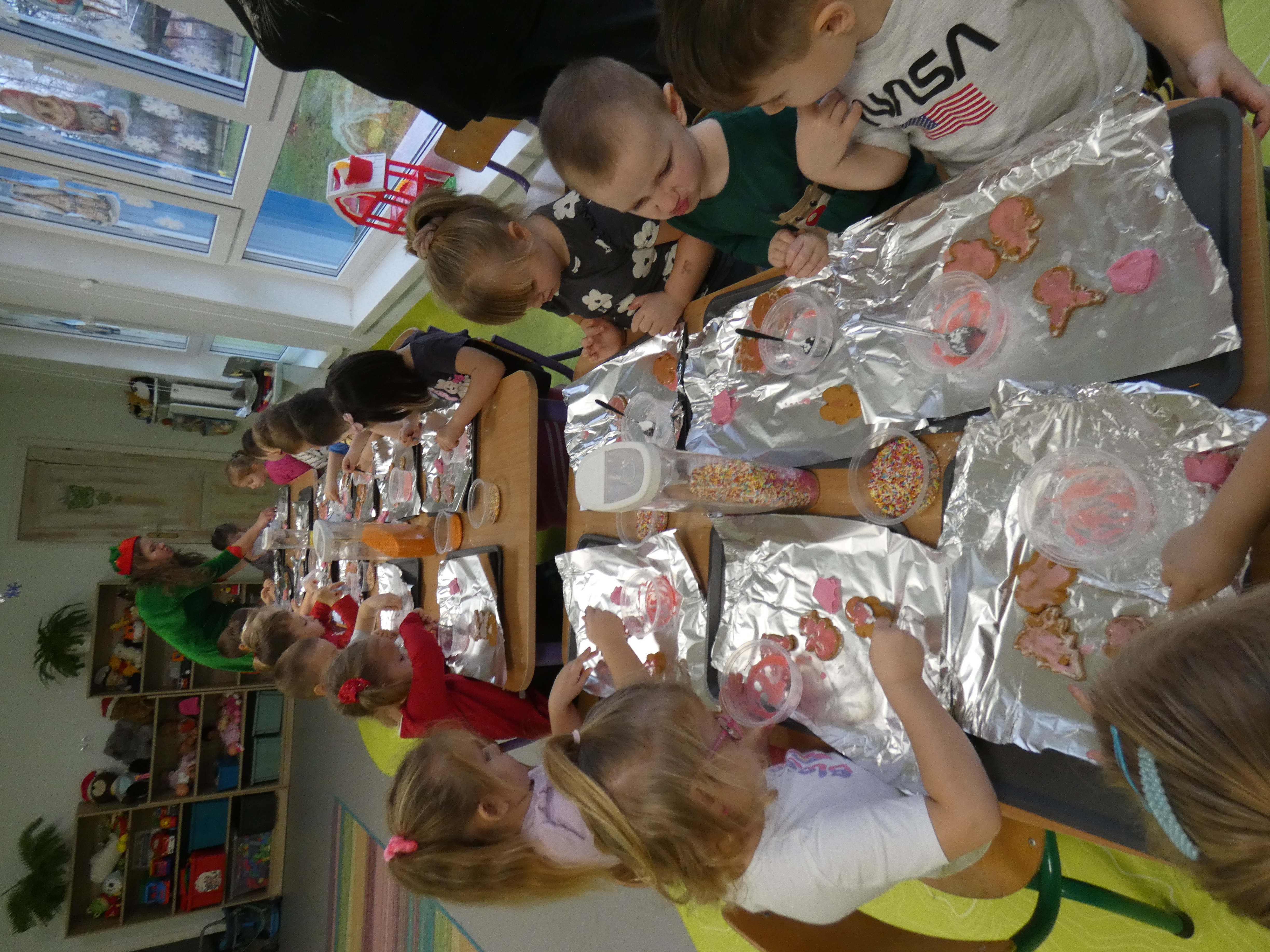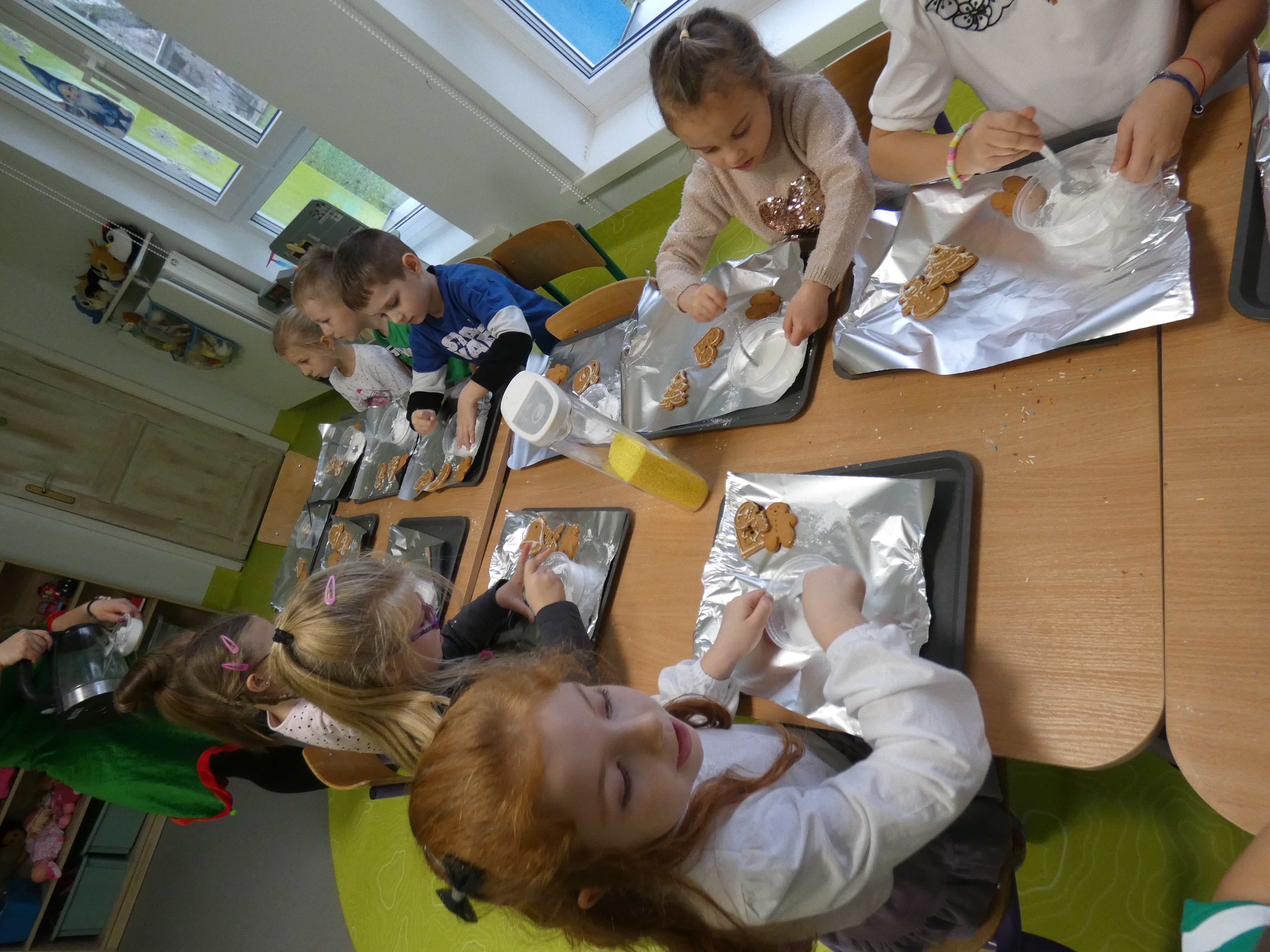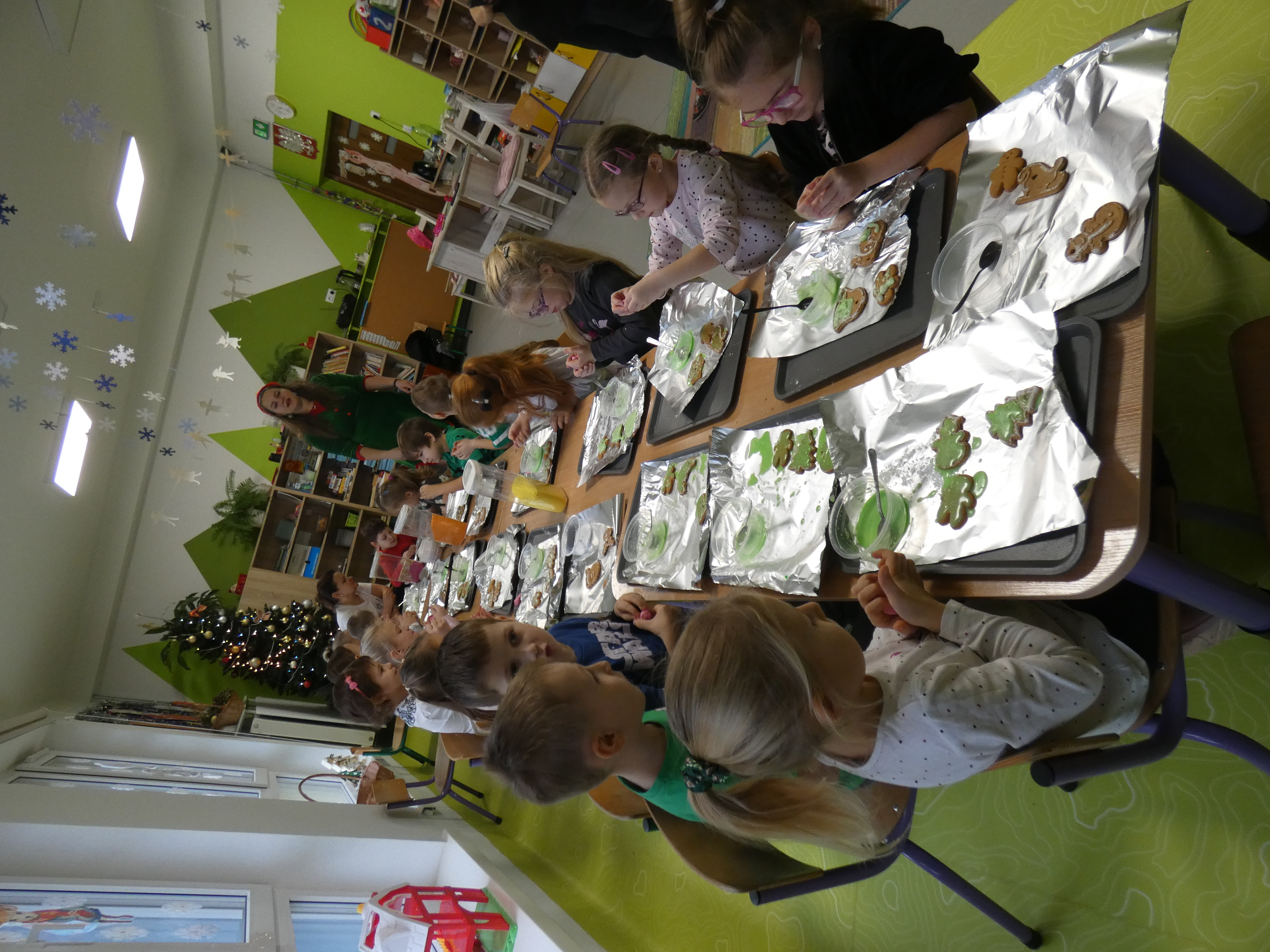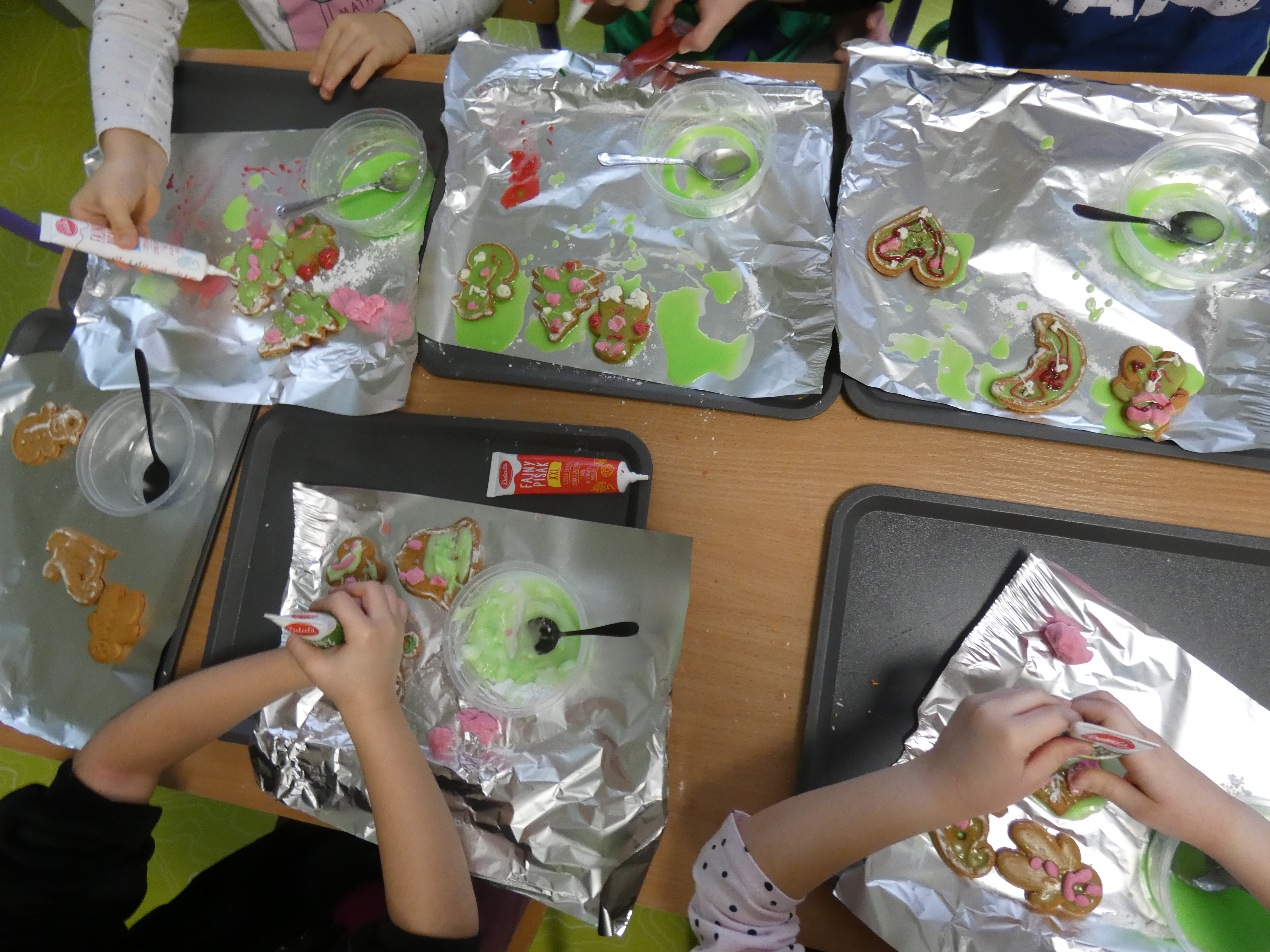 Dekorowanie pierników to piękna świąteczna tradycja, która pozwala tworzyć niepowtarzalną atmosferę zbliżających się świąt. W trakcie dzisiejszych warsztatów dzieci razem z Elfikie miały możliwość samodzielnego ozdobienia świątecznych pierniczków. Frajdy i słodkiej zabawy było co niemiara. Każdy piernik wykonany przez przedszkolaków był unikalny, zachwycał oryginalnością i pomysłowością. Piękne i kolorowe pierniczki można zawiesić na choince, podarować komuś bliskiemu lub po prostu zjeść.