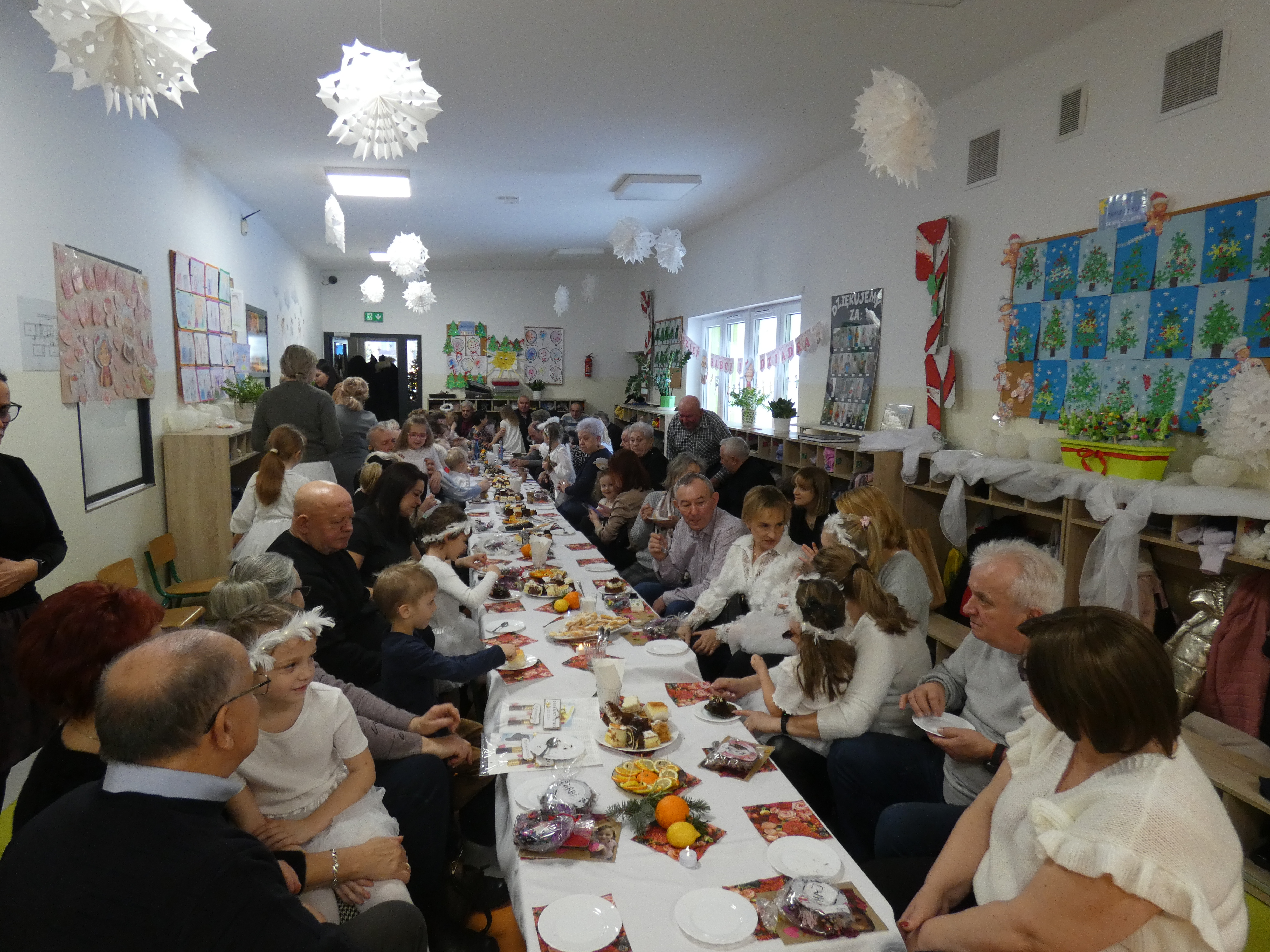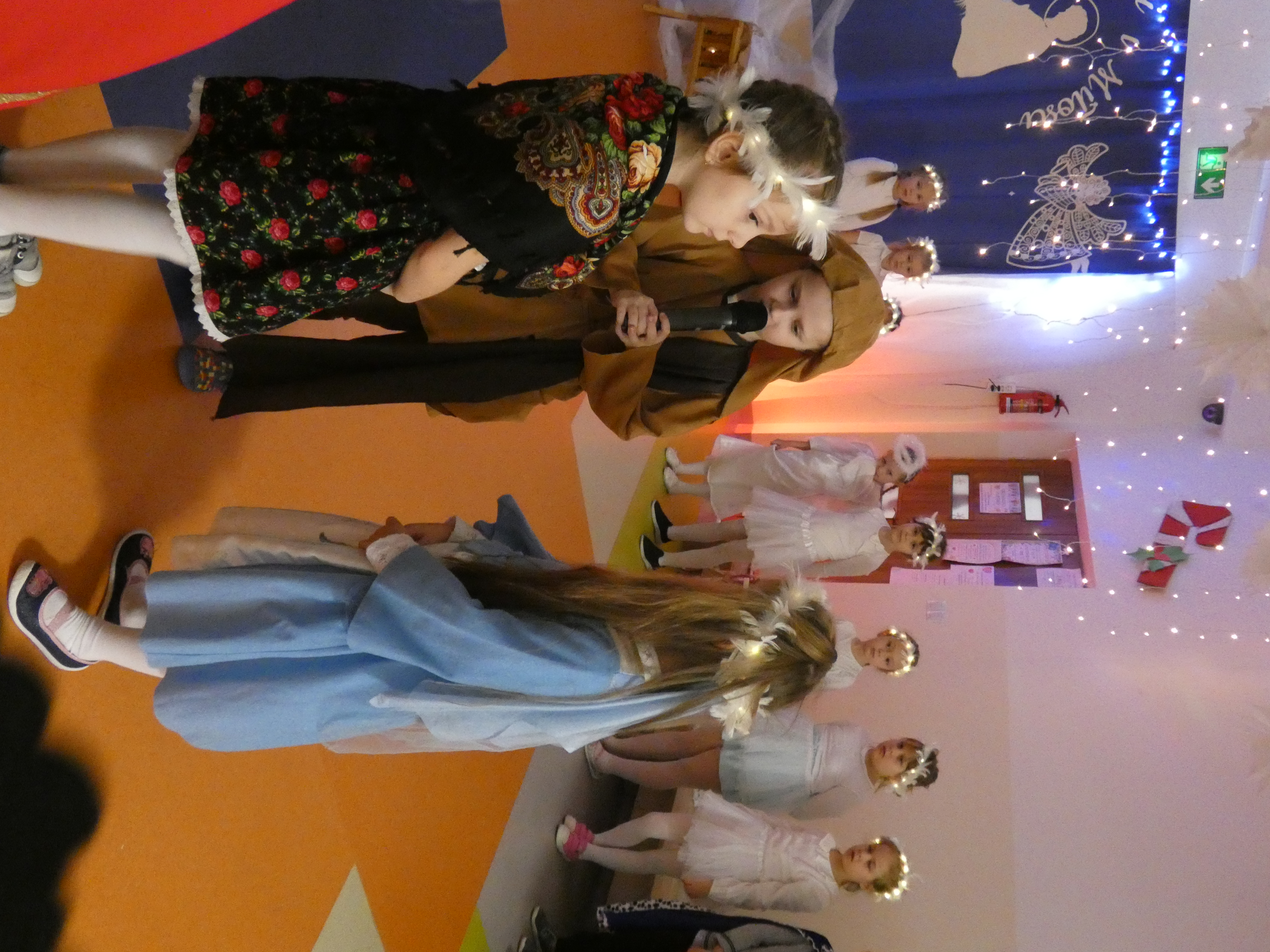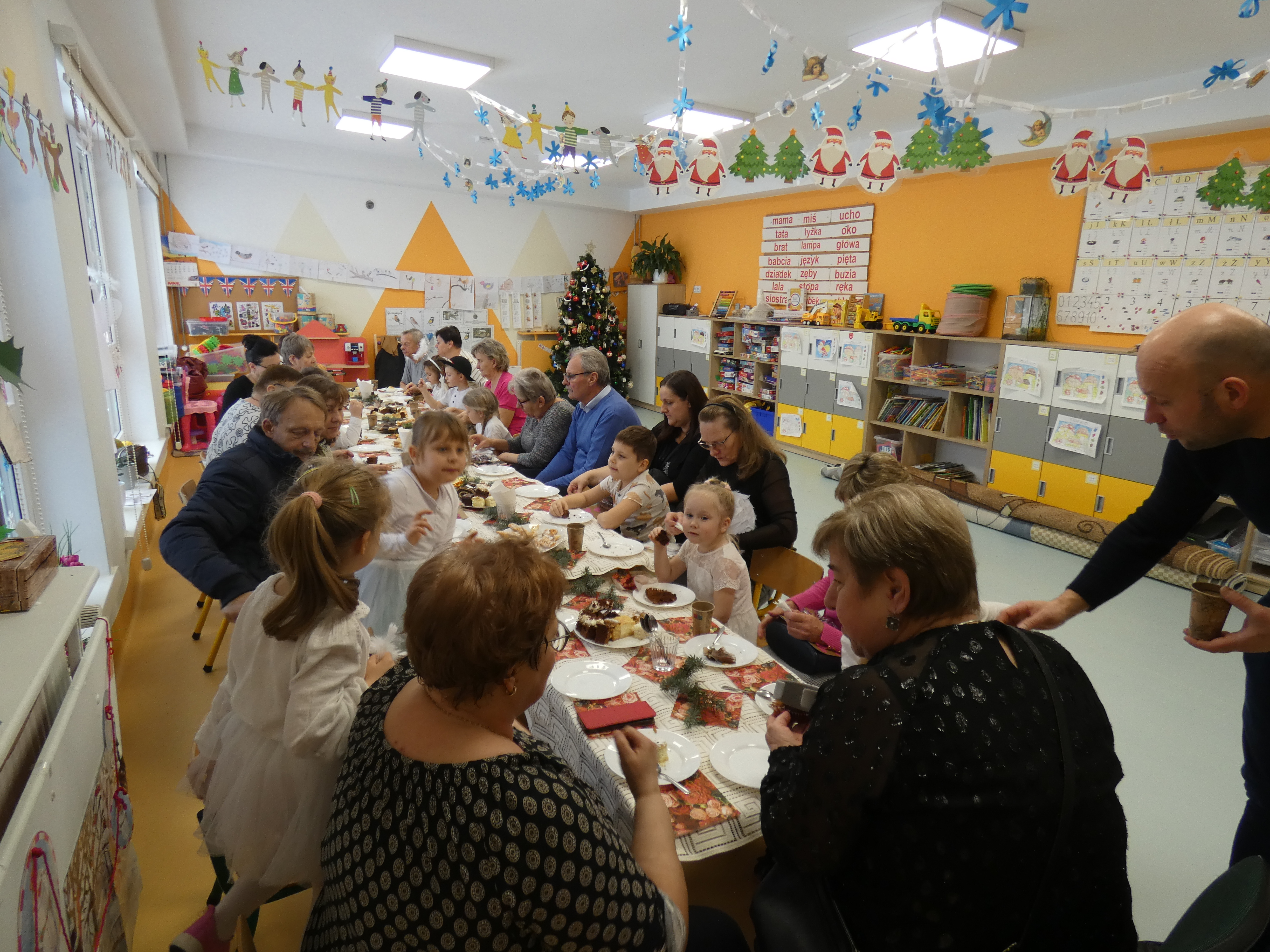 W dniu 15 stycznia 2025 r. dzieci z grupy 5 i 6-latków przygotowały wyjątkowe spotkanie dla swoich Babć i Dziadków. Uroczystość odbyła się w ciepłej, rodzinnej atmosferze. Przedszkolaki zaprezentowały jasełka, które wzruszyły zgromadzonych gości, a na zakończenie wręczyły własnoręcznie wykonane upominki. Po części artystycznej wszyscy zasiedli do wspólnego poczęstunku, podczas którego Babcie i Dziadkowie mogli spędzić miłe chwile ze swoimi wnukami. Spotkanie na długo pozostanie w pamięci wszystkich uczestników.