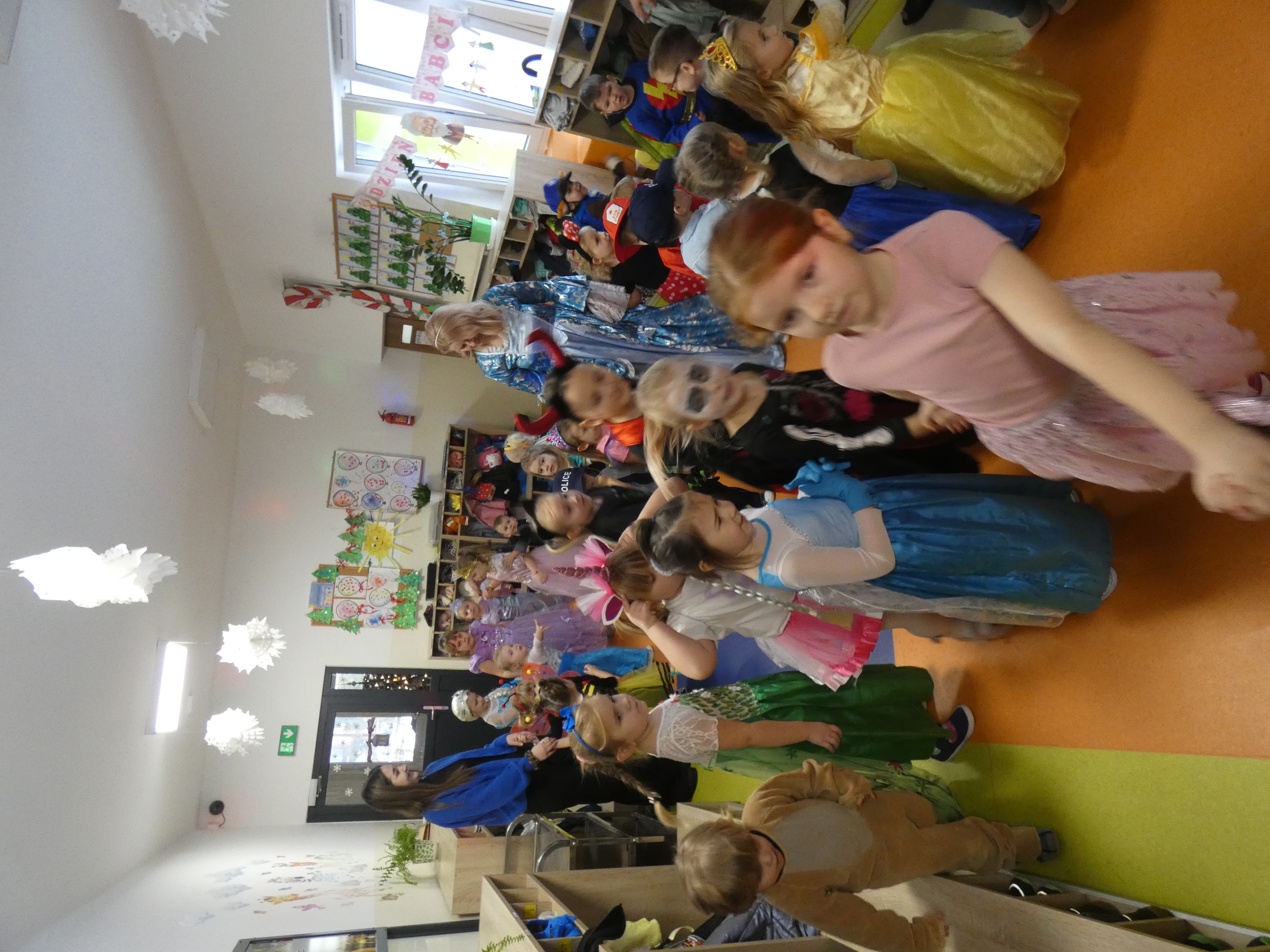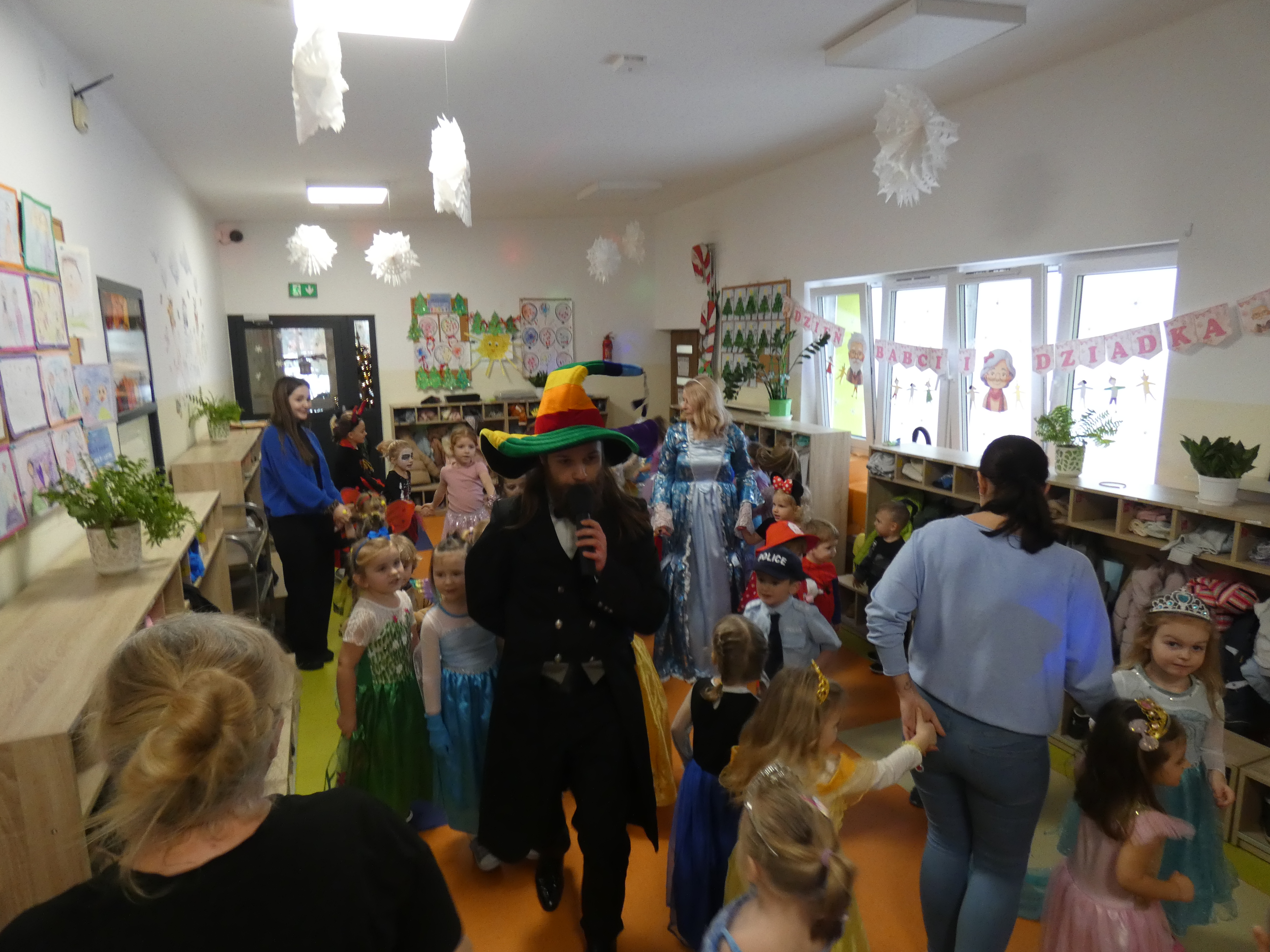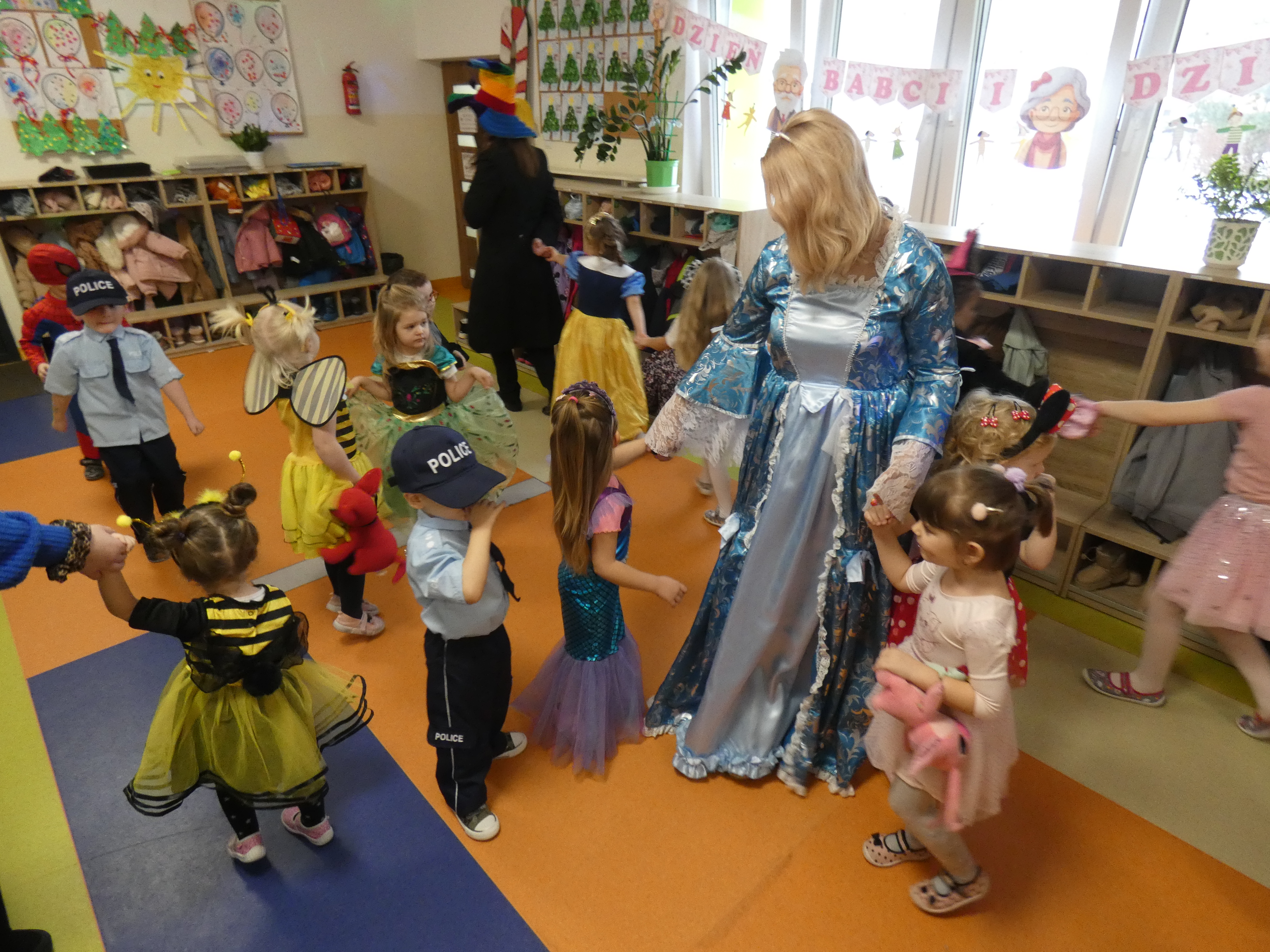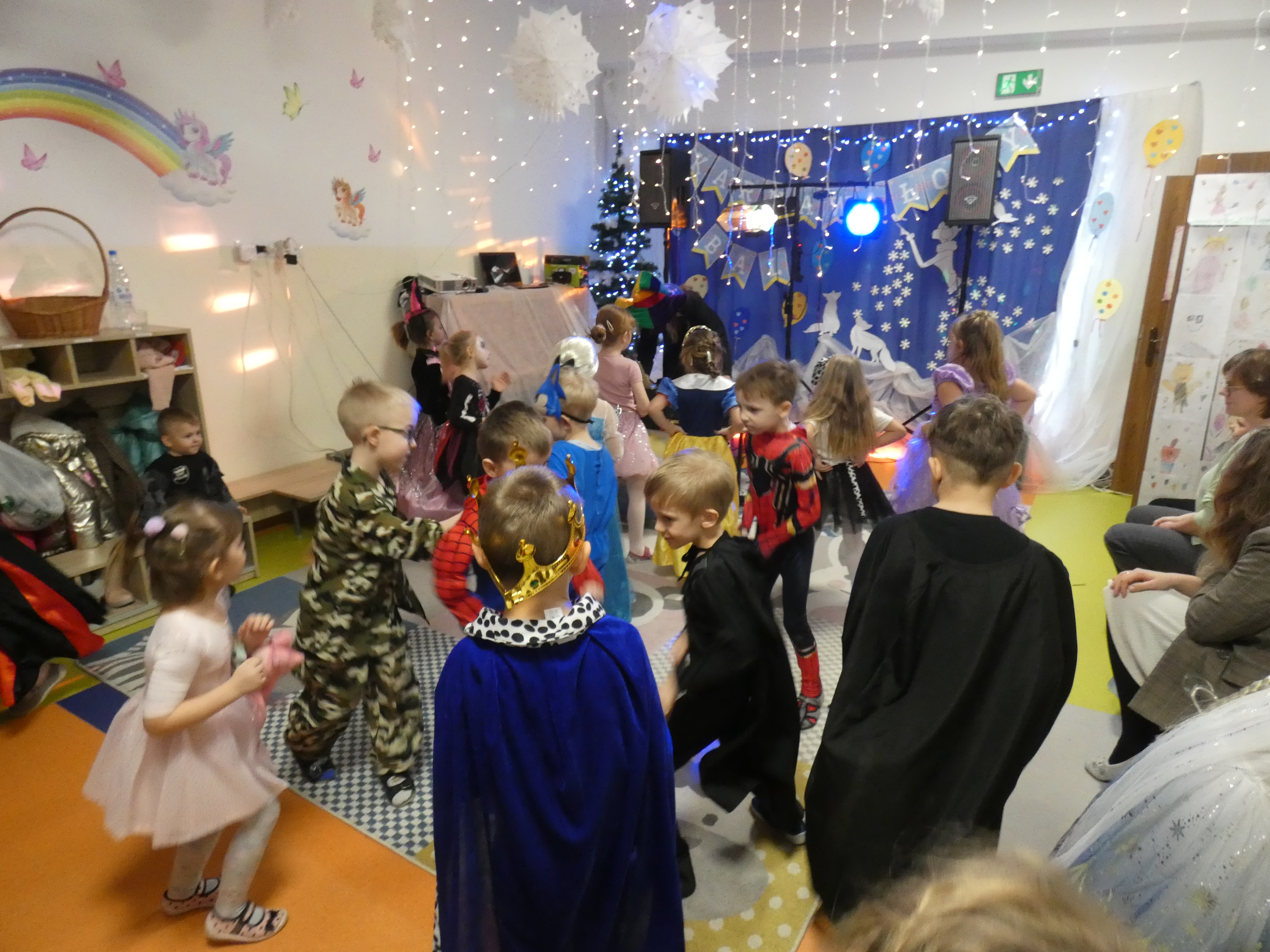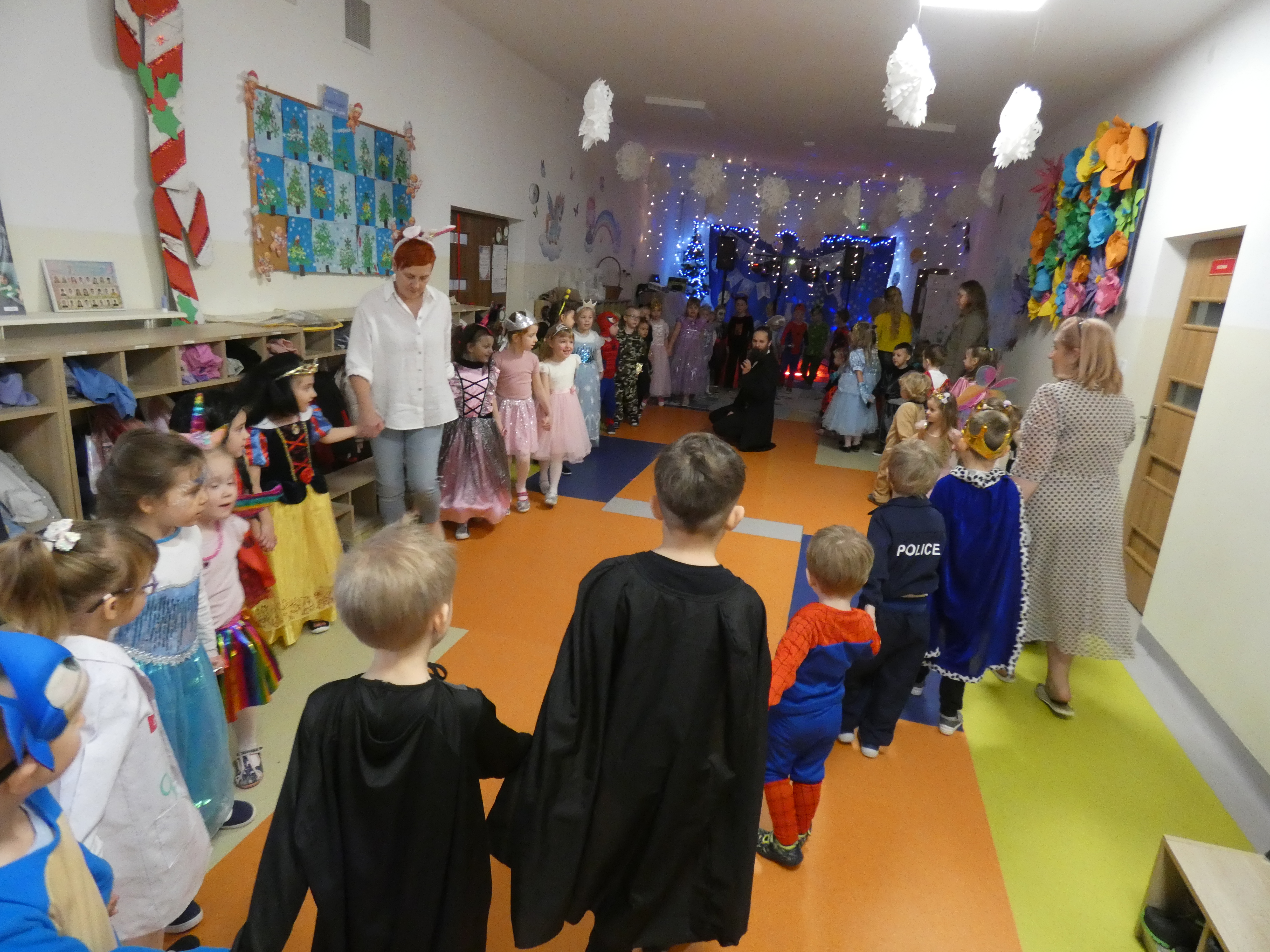 Karnawał to radosna tradycja przepełniona muzyką i zabawą, dla przedszkolaków to dzień niezwykły, dostarczający im wielu przeżyć i radości. Tak też było u nas 16 stycznia 2025 r. W salach przedszkolnych zagościły wróżki, pszczółki, królewny, strażacy, policjanci, nie sposób zliczyć i wymienić tych wszystkich postaci z bajek. Kiedy pojawiły się pierwsze rytmy wesołej muzyki wszyscy z wielką ochotą rozpoczęli pląsy i tańce. Przedszkolacy bawili się znakomicie! Wspólna zabawa przyniosła dzieciom wiele zadowolenia i uśmiechu. Dziękujemy rodzicom za zaangażowanie w przygotowanie pięknych balowych strojów dla dzieci i wyczarowanie pysznego poczęstunku. Kolejny bal karnawałowy już za rok!