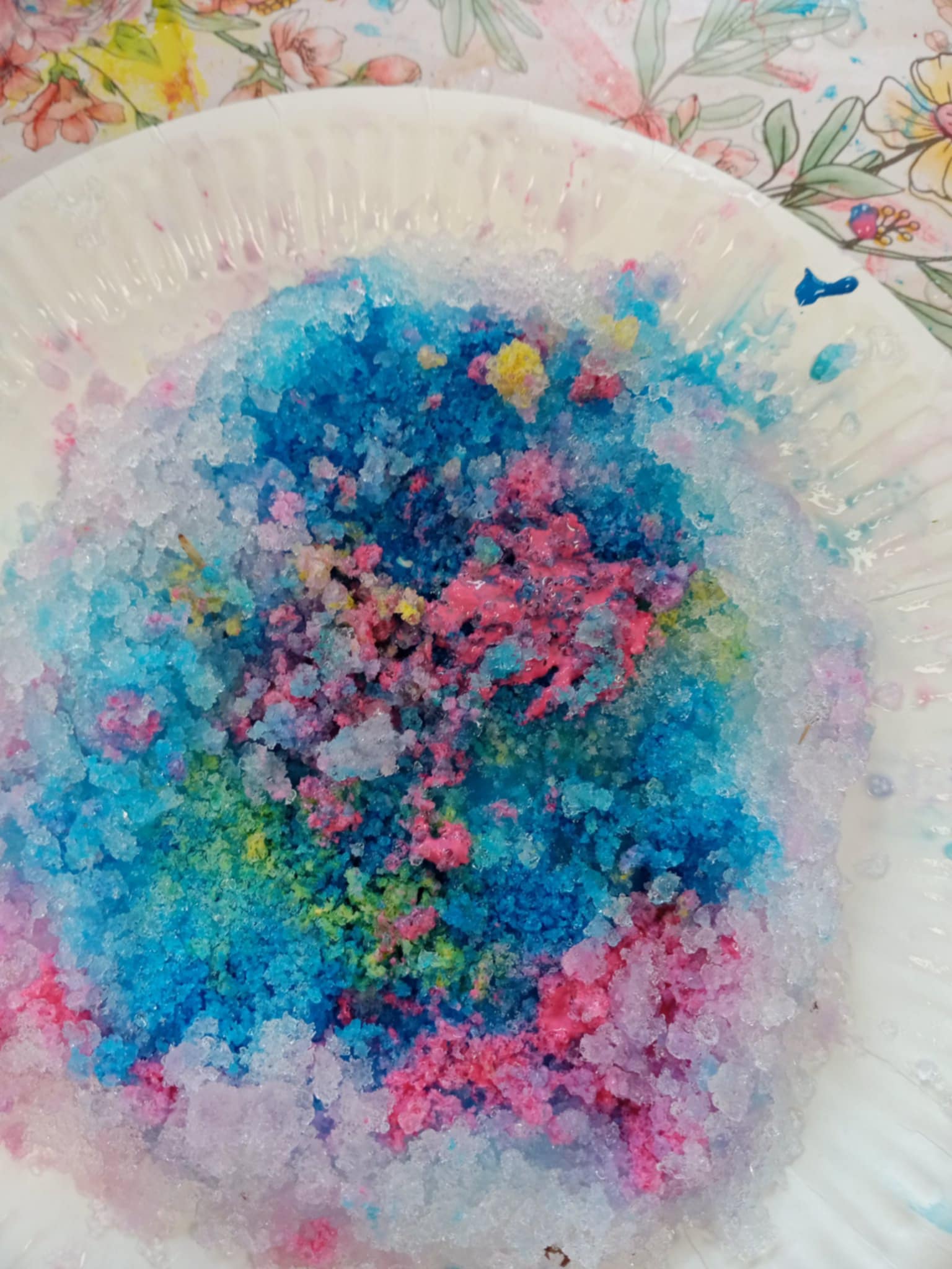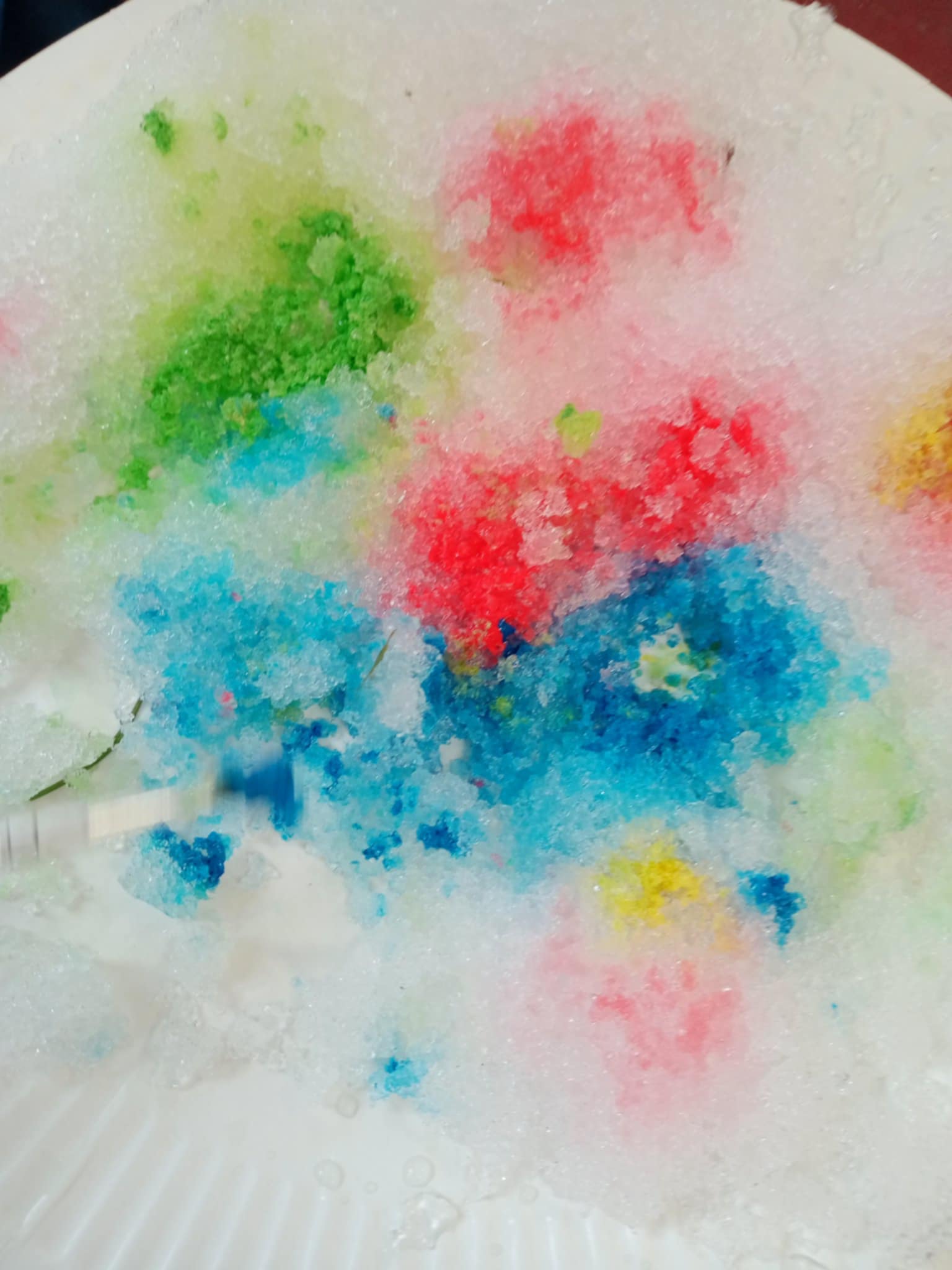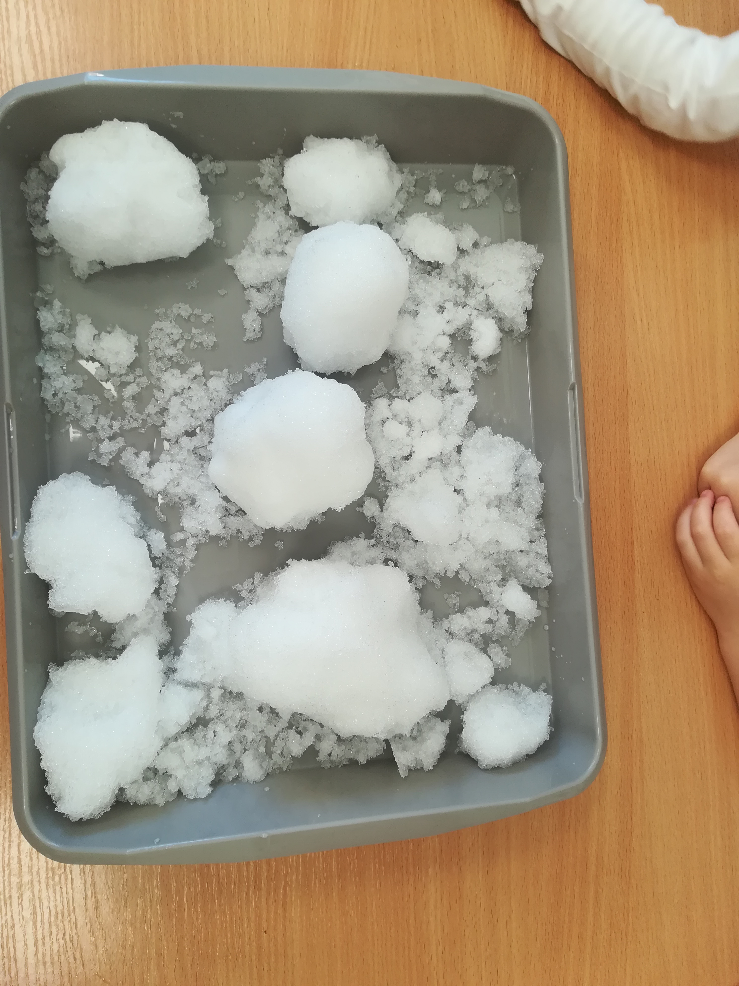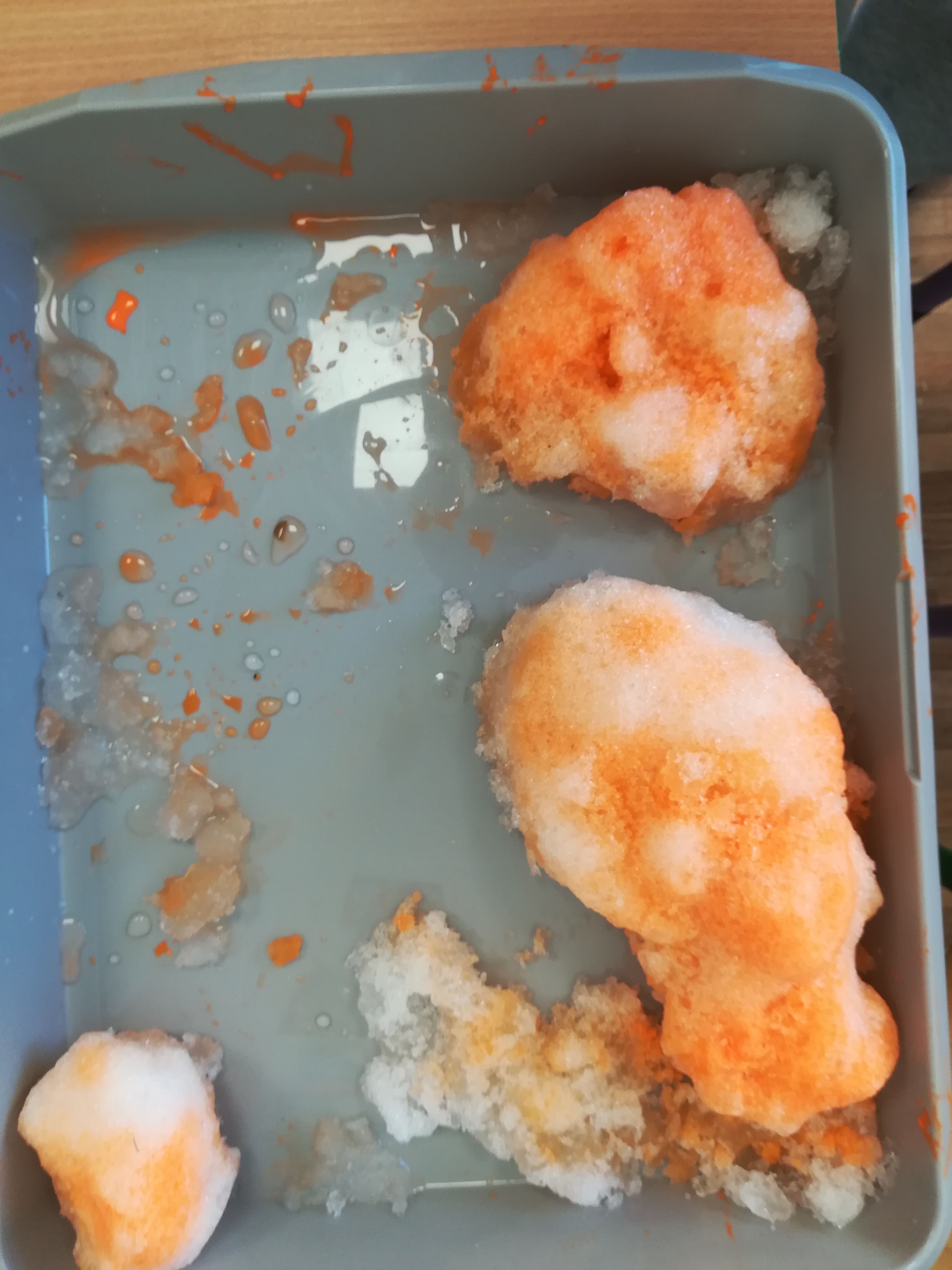 Na zajęciach badawczych przedszkolaki eksperymentowały ze śniegiem i poznawały jego właściwości. Okazało się, że jest on bardzo zimny, biały i mokry, a pod wpływem wyższej temperatury rozpuszcza się. Co można ulepić ze śniegu? – wiadomo!!! Kulki śniegowe, bałwanka a nawet Plastusia! Przedszkolaki przekonały się również, że śnieg nie musi być tylko biały, a może być na przykład pomarańczowy albo kolorowy. Malowanie śniegu okazało się suuuper zabawą!!!davdavdavdavdav