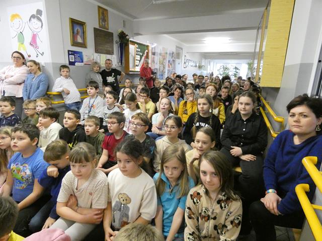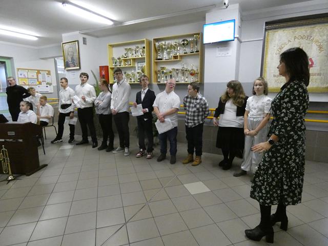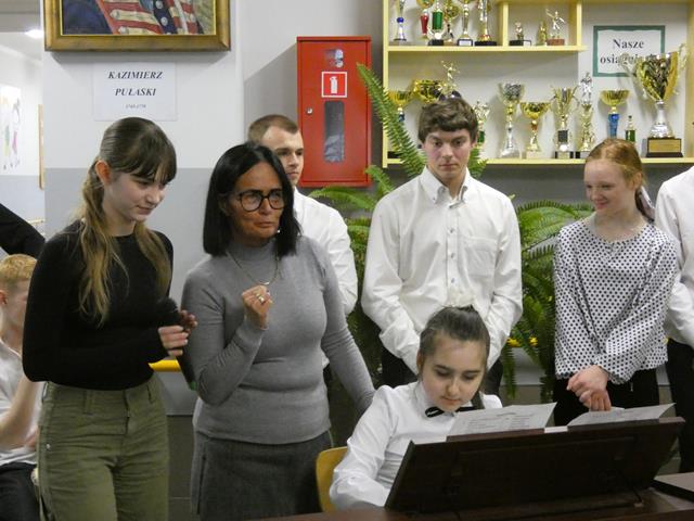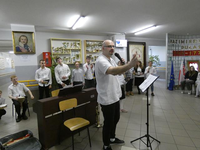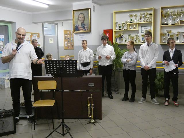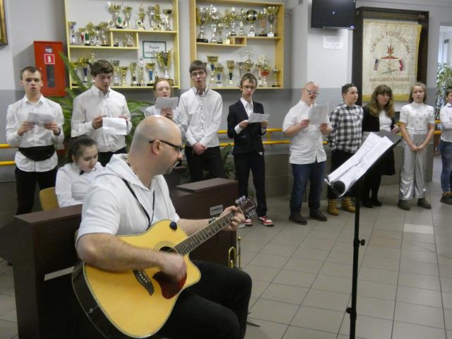 Młodzi artyści zaprezentowali tradycyjne polskie kolędy, które wzruszyły zarówno uczniów, jak i nauczycieli. Wspólne muzykowanie wprowadziło wszystkich zebranych w wyśmienity nastrój, a ten niezwykły koncert został nagrodzony przez naszą całą społeczność szkolną gromkimi brawami. Dziękujemy naszym gościom, a szczególnie inicjatorowi tego spotkania - p. Krzysztofowi Jabłońskiemu za moc wrażeń i niezapomnianych przeżyć, które będą stanowić dla nas wyjątkowe wspomnienia.