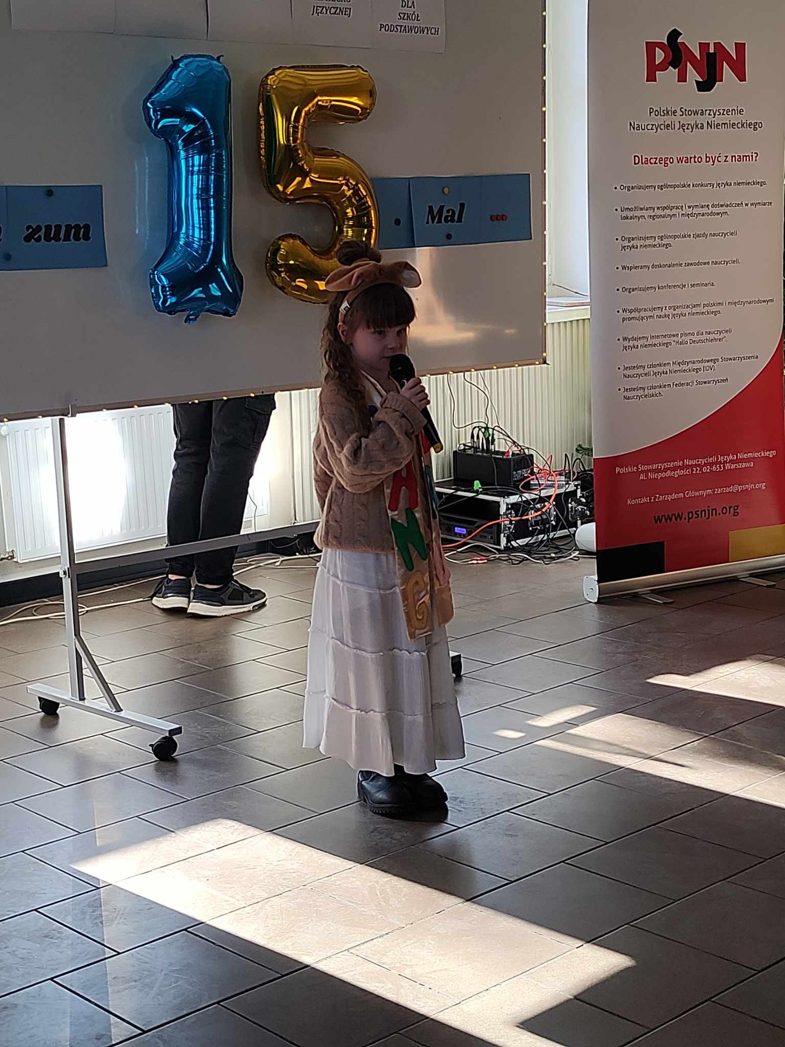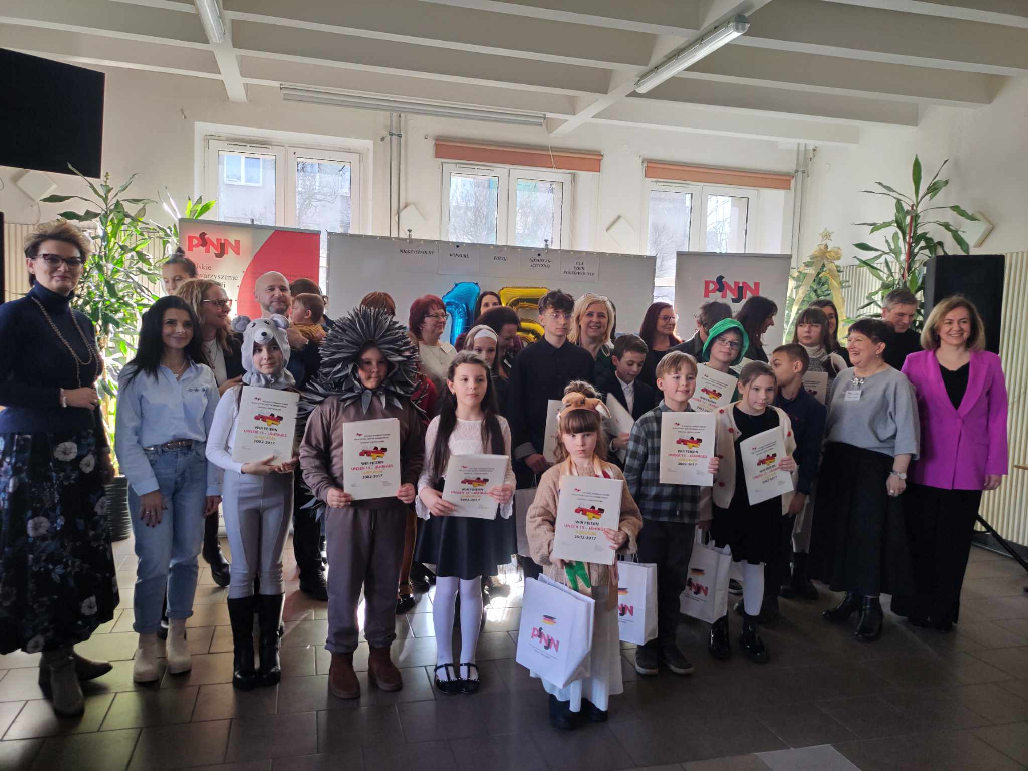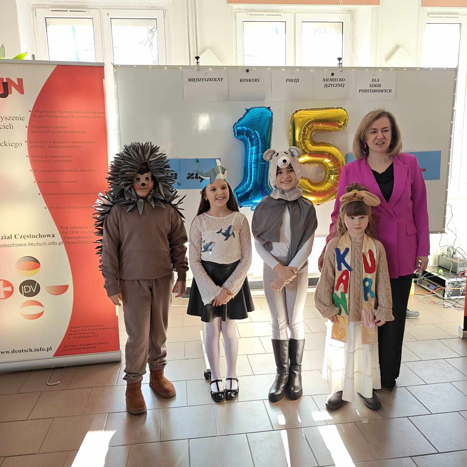 Uczennice klas I-III reprezentowały dziś naszą szkołę w XV Międzyszkolnym Konkursie Recytatorskim Poezji Niemieckojęzycznej dla Uczniów Szkół Podstawowych w Częstochowie organizowanym przez Stowarzyszenie Nauczycieli Języka Niemieckiego o/Częstochowa. Konkurs był objęty patronatem Starostwa Powiatowego w Częstochowie, którego reprezentanci w osobie Starosty p. Krzysztofa Smeli oraz Członka zarządu- p. Anny Dziewior można było znaleźć wśród zaproszonych gości siedzących na widowni. Nasze uczennice wykazały się wspaniałymi umiejętnościami recytatorskim, dzięki którym znalazły się wśród laureatów. Uczennice kl. II Sandra Błaszczyk i Zuzanna Rumin zajęły II miejsce, a uczennica kl. I - Hannah Nowakowska oraz uczennica kl. III - Lena Papińska zajęły III miejce. Jeszcze raz gratulujemy i dziękujemy rodzicom dziewczynek za zaangażowanie i wsparcie w przygotowaniach do konkursu!