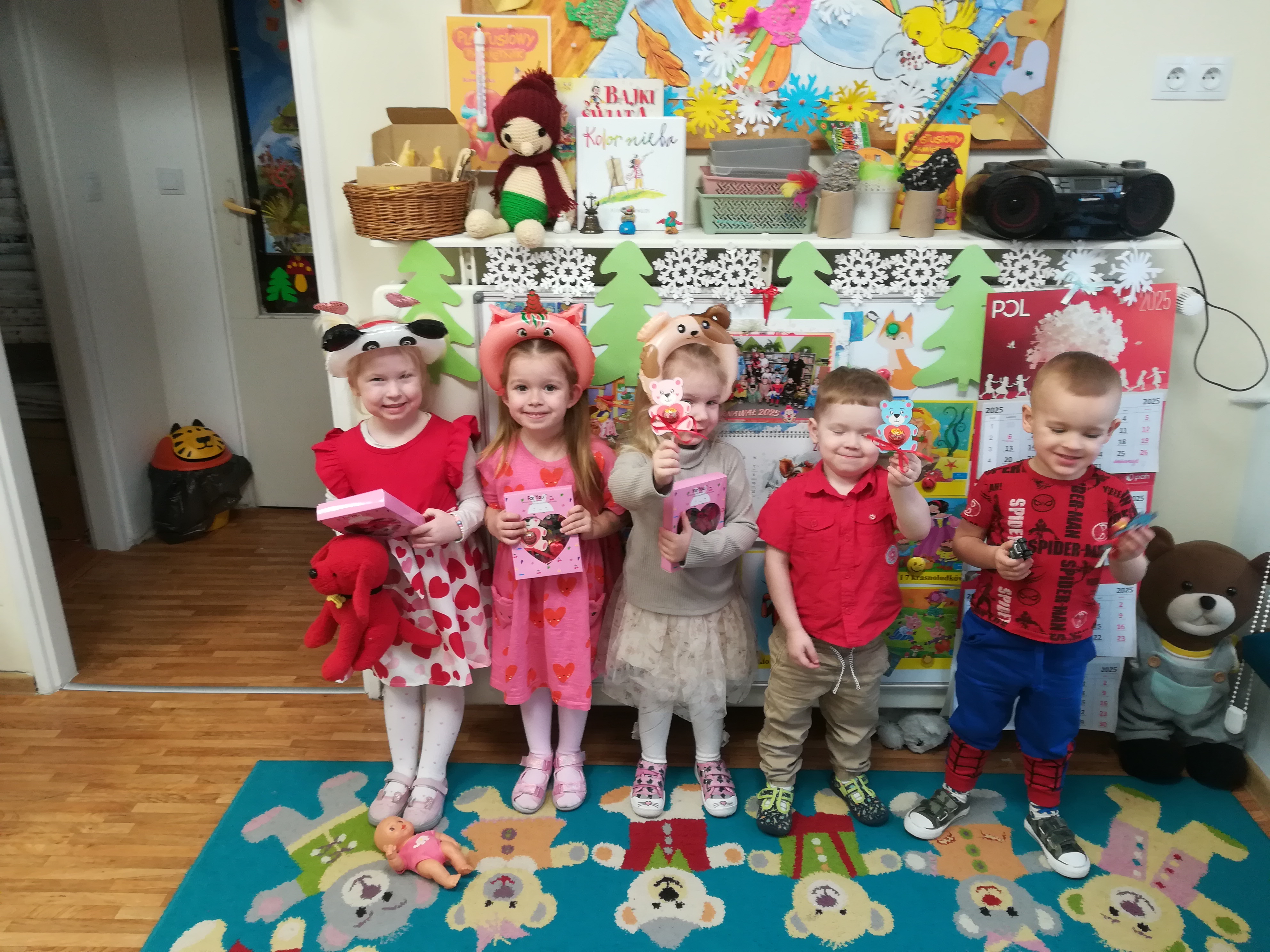 A czerwone dziś serduszko, wszystkim podaruję"W piątek 14 lutego obchodziliśmy w naszym przedszkolu "WALENTYNKI". Był to dzień pełen miłości, przyjaźni i uśmiechu. Przedszkolaki poznały tradycje walentynkowe, dowiedziały się, jak ważne jest okazywanie uczuć sympatii i miłości w stosunku do najbliższych osób. Stworzyliśmy pocztę walentynkową, dzieci malowały serduszka i wykonały piękne walentynkowe laurki. Nie zabrakło oczywiście wspólnych zabaw przy muzyce i chwilki na małe "co nieco". Dzień ten przyniósł dzieciom wiele radości i uśmiechu.davsdrdavdavdavdavdavdavdavdavdavdavdavmdedav