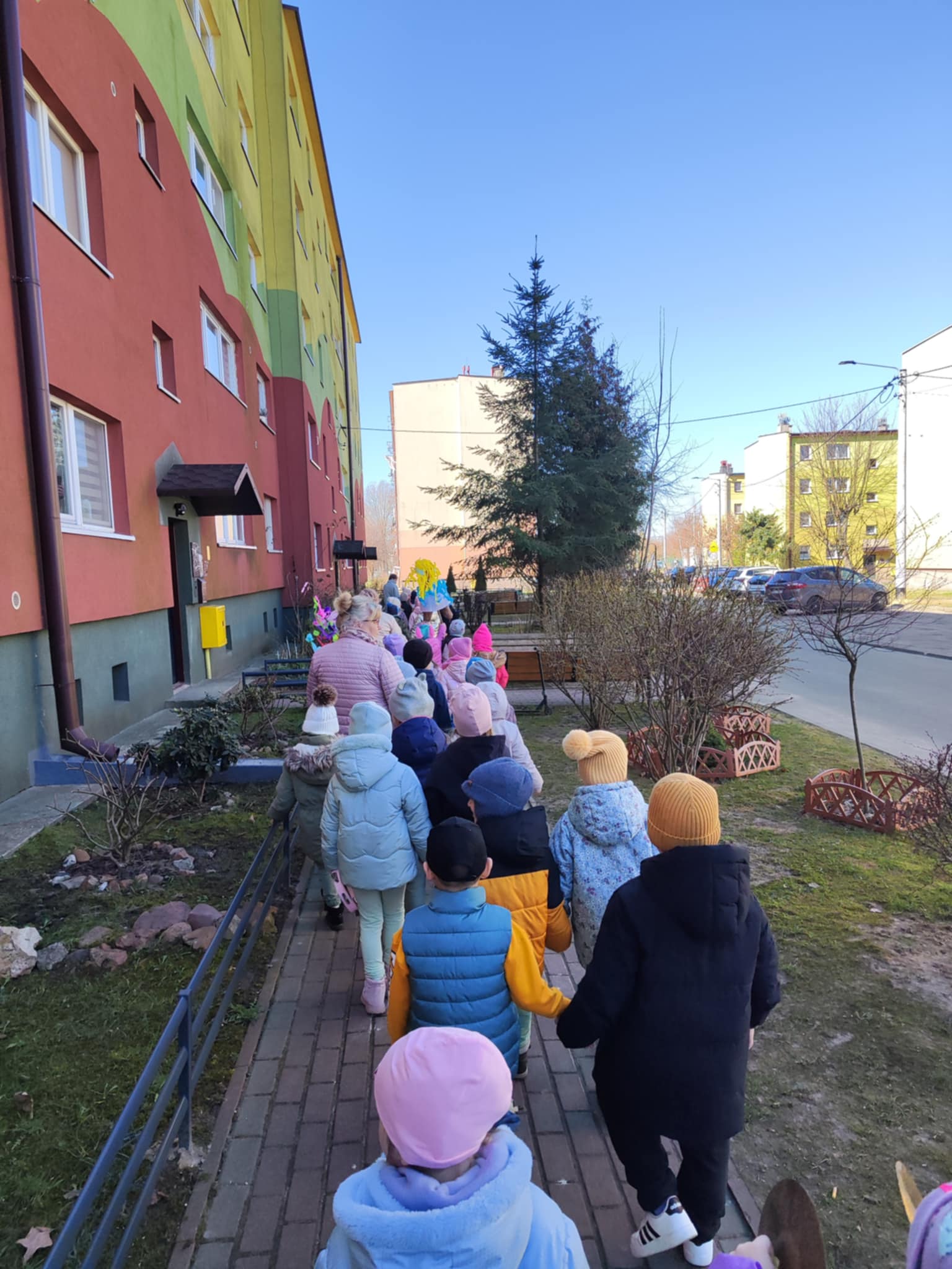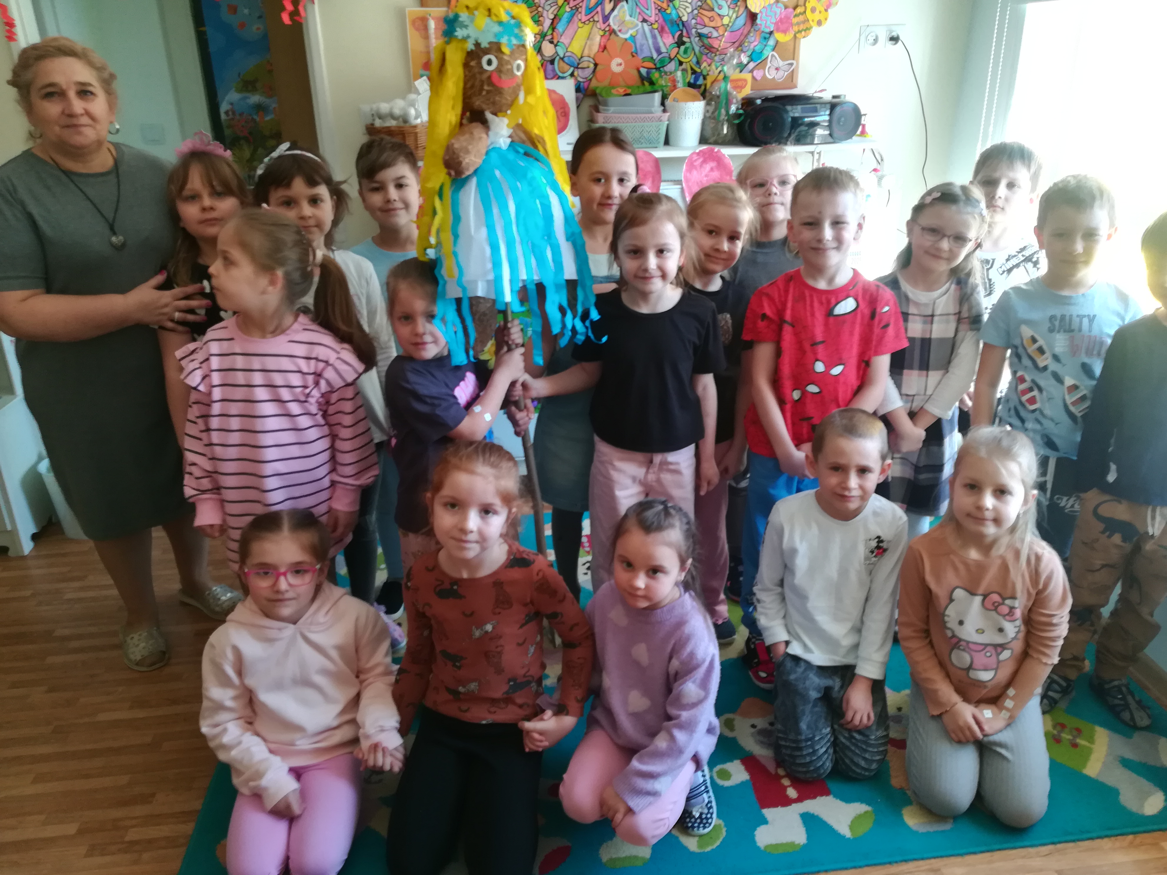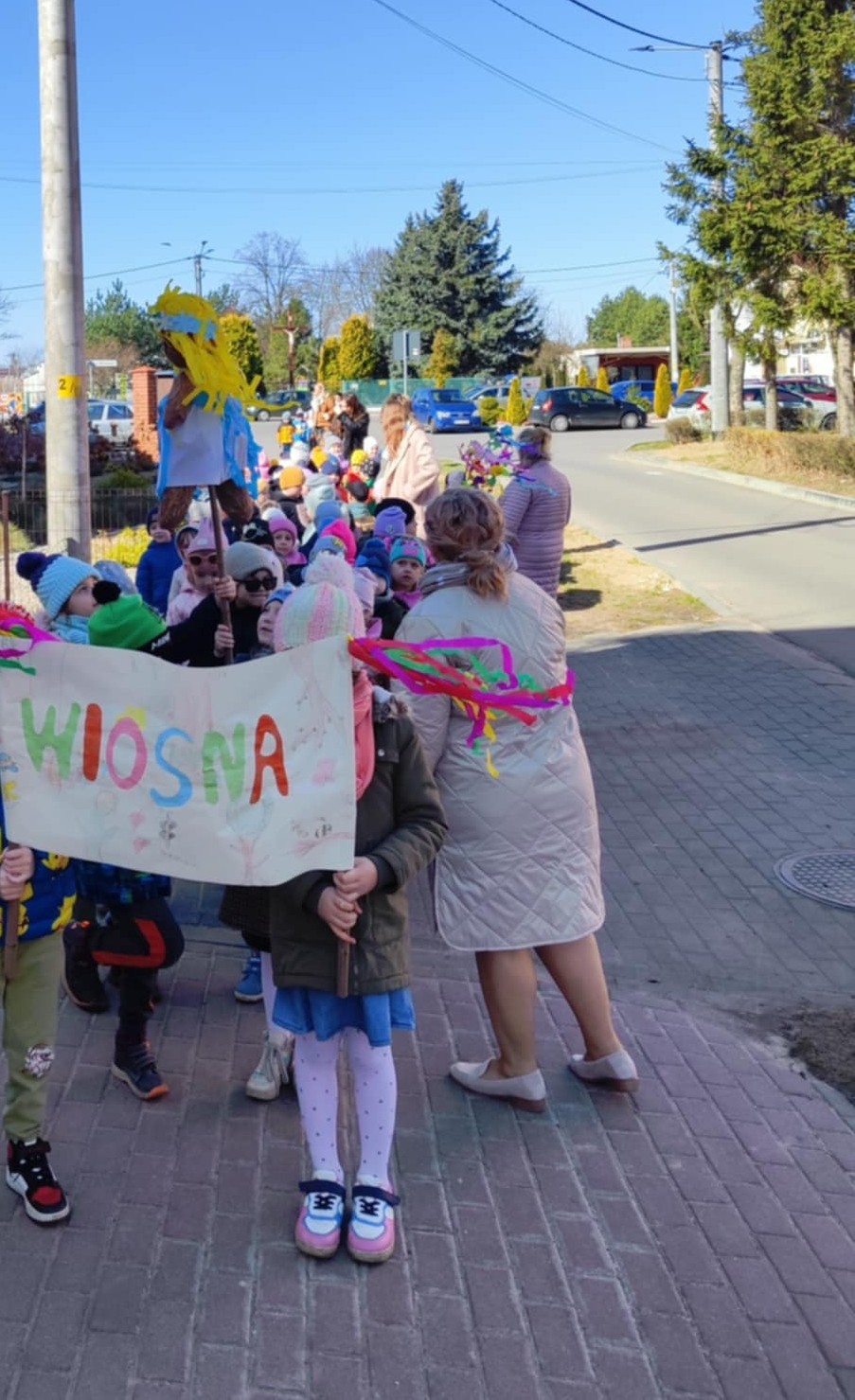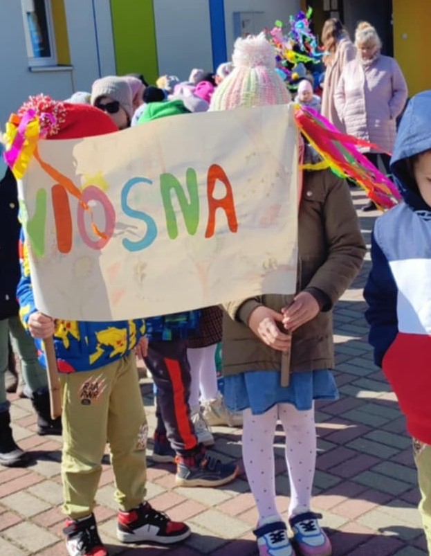 20 marca w naszym przedszkolu uroczyście przywitaliśmy WIOSNĘ! Od samego rana w salach rozbrzmiewały radosne piosenki, a przedszkolaki, ubrane w zielone stroje, z niecierpliwością czekały na główną część obchodów. Wspólnie wybraliśmy się na wiosenny przemarsz, by symbolicznie pożegnać zimę i zaprosić wiosnę do nas na dobre. Na czele pochodu dumnie kroczyła Marzanna, obok niej dzieci niosły transparent z napisem WIOSNA oraz Gaik-Maik – zieloną gałązkę ozdobioną kolorowymi wstążkami i kwiatami. W rytmie instrumentów i przy dźwiękach wesołych piosenek nawoływaliśmy wiosnę, tworząc barwny i radosny korowód. Zgodnie z tradycją, aby pożegnać zimę, spaliliśmy Marzannę, co wywołało wiele emocji i radości wśród dzieci. Po powrocie do przedszkola przedszkolaki przelały swoje wiosenne inspiracje na papier – rysowały Panią Wiosnę oraz ozdabiały piękne, kolorowe zegarki wiosenne. To był wyjątkowy dzień pełen uśmiechu, muzyki i wiosennej energii!dav