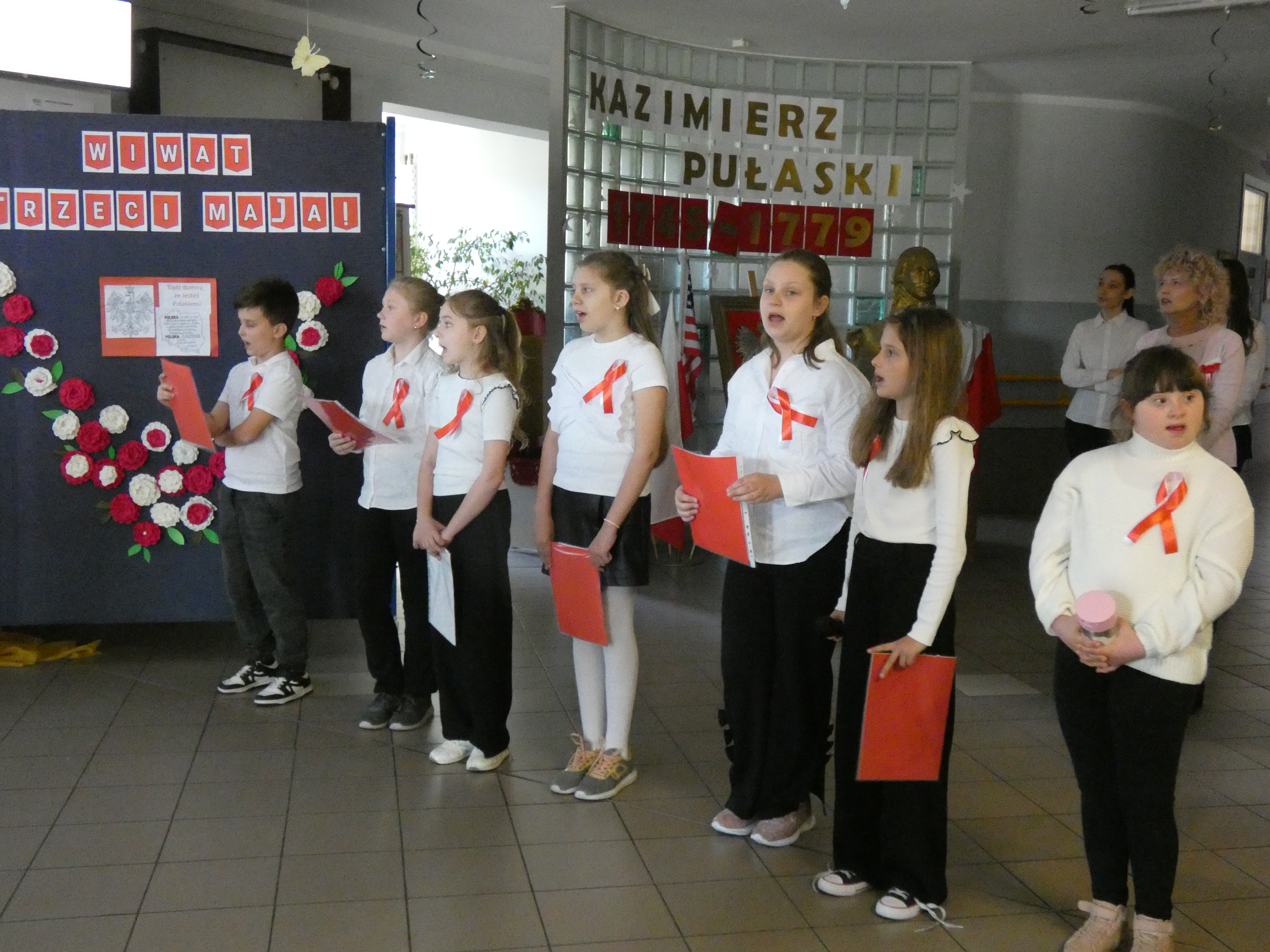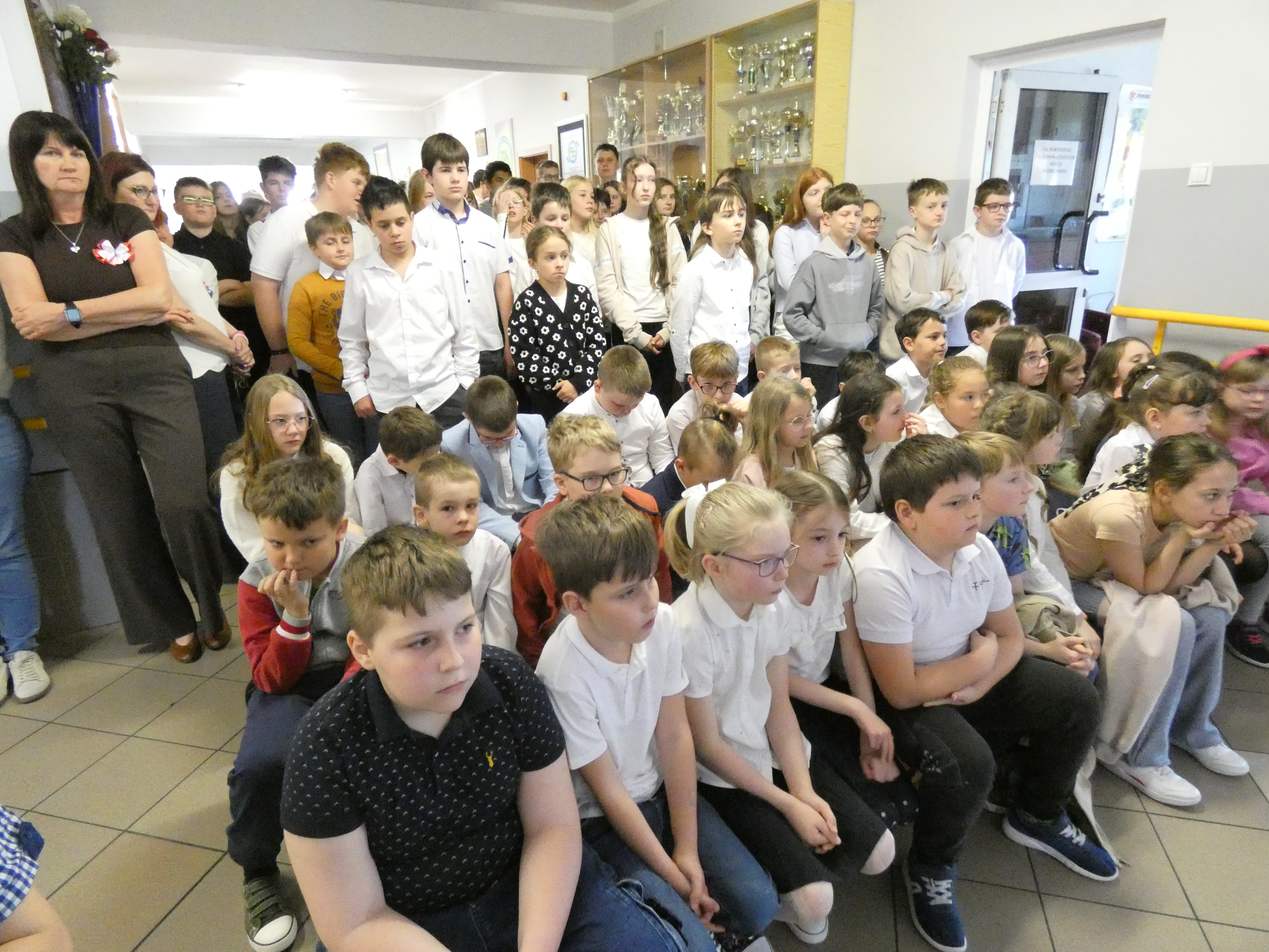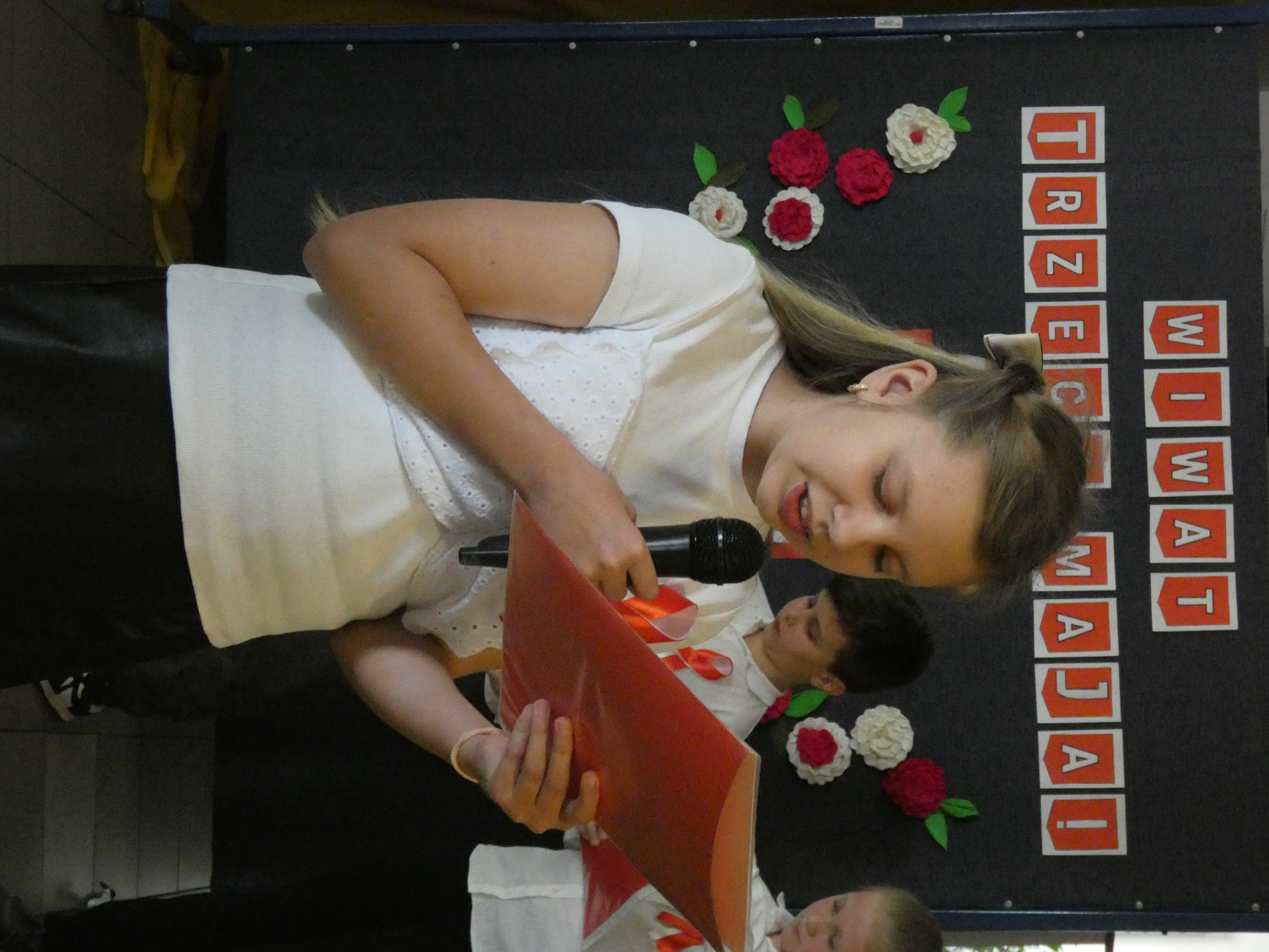 3 maja – cóż to za data? Dla setek młodych ludzi to jedna z wielu nic nie znaczących uroczystości. Ale czy tak powinno być ? Przecież naród, który nie zna swojej przeszłości, umiera i nie buduje dobrego „jutra”. Żyjąc w zwariowanym tempie dzisiejszego świata, zatrzymaliśmy się przez chwilę i wysłuchaliśmy krótkiej lekcji historii i patriotyzmu, przygotowanej przez klasę 4 pod kierunkiem wych. D. Łukasik. Zostały przypomniane ważne okoliczności towarzyszące powstaniu Konstytucji, tak ważnego dokumentu w dziejach naszej Ojczyzny, który do dziś nie stracił na wartości. Konstytucja 3 Maja 1791 roku była wówczas pierwszą w Europie, a drugą na świecie po konstytucji Stanów Zjednoczonych. Zawierała podstawowe zasady ustroju Polski. Konstytucja została symbolem możliwości odrodzenia, a w świadomości i sercach Polaków pozostała jako źródło siły i natchnienia. Uczniowie dali wyraz swojego patriotyzmu poprzez śpiew i recytację. Występ zakończył się piękną piosenką o Polsce: ,,Tu wszędzie jest moja Ojczyzna”.