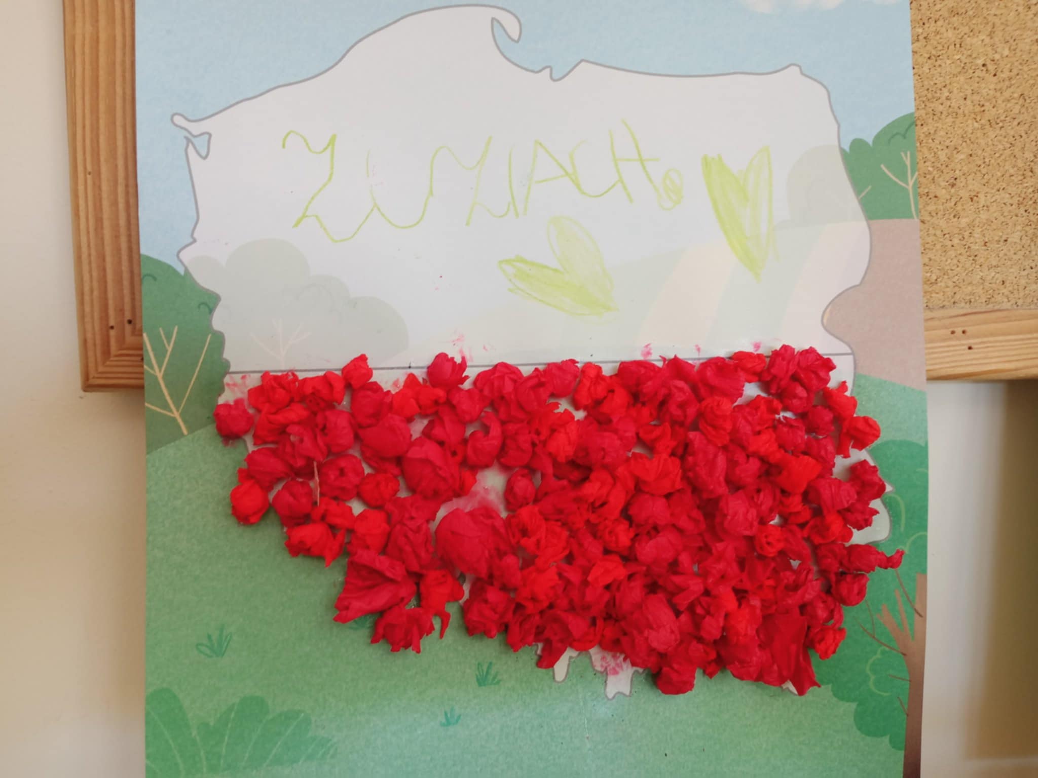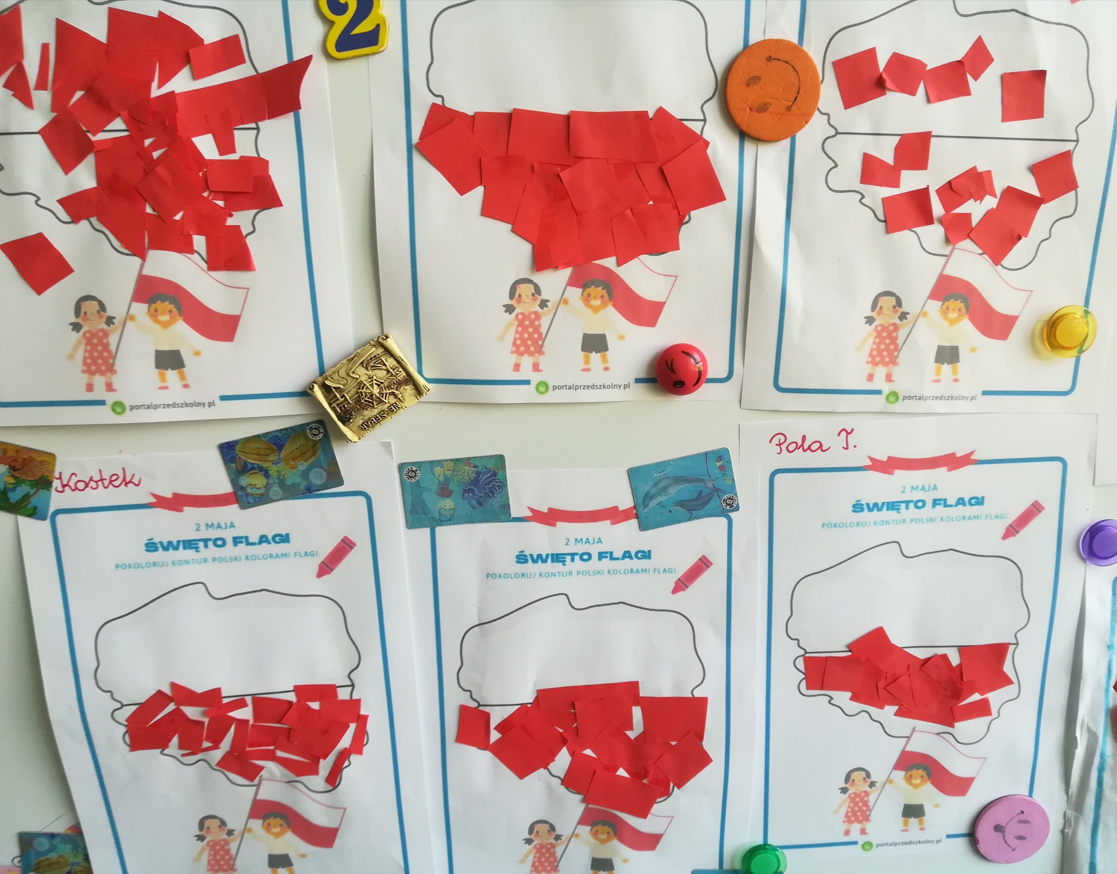 W minionym tygodniu zajęcia we wszystkich grupach poświęcone były świętom majowym: 1 maja - Święto Pracy, 2 maja - Dzień Flagi Narodowej oraz 3 maja - Uchwalenie Konstytucji 3 Maja. To wspaniały czas na przybliżenie dzieciom treści patriotycznych, oczywiście w formie przystępnej i zrozumiałej dla każdej grupy wiekowej. Zaczęliśmy od poznania historii naszej miejscowości oraz innych ciekawych regionów naszego kraju. Przedszkolaki wysłuchały nie tylko legend związanych z historią Polski, ale również obejrzały ciekawe filmy edukacyjne o powstaniu państwa polskiego. Podczas zajęć dzieci utrwalały symbole narodowe i tworzyły wspaniałe prace z wykorzystaniem różnorodnych technik plastycznych. Budzenie u dzieci zainteresowań historią swojego państwa od najmłodszych lat jest niezbędne dla nauki patriotyzmu, kształtowania pozytywnych postaw i uczuć patriotycznych.