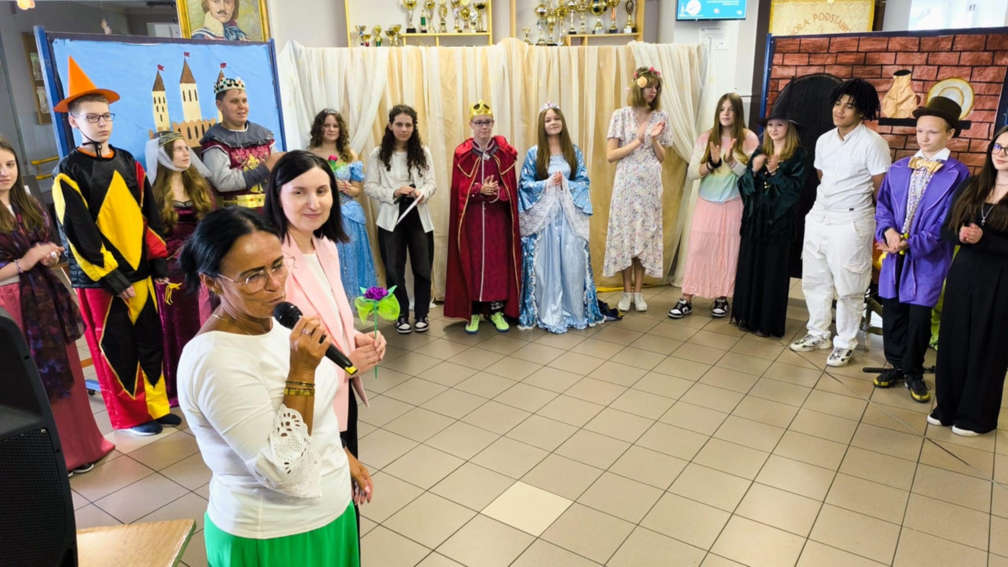 W ZSP2 w Rędzinach 30 maja odbyła się inscenizacja baśni braci Grimm „Śpiąca królewna” w języku niemieckim. Tego trudnego zadania podjęli się uczniowie klasy siódmej, mimo że dopiero od września tego roku szkolnego zaczęli naukę języka niemieckiego. Z powierzonego zadania wywiązali się znakomicie, czego dowodem były gromkie brawa od całej społeczności szkolnej. Oprócz nauki roli w języku obcym, młodzi aktorzy na lekcjach plastyki wykonali plakaty promujące przedstawienie, zaproszenia oraz dekoracje. Poprzez udział w kilkutygodniowych próbach uczniowie przyswoili sobie dużo nowego niemieckojęzycznego słownictwa oraz wzmocnili umiejętność pracy w grupie. Taka „teatralna lekcja” korzystnie wpływa na przełamanie bariery językowej, umacnia poczucie własnej wartości i sprawności językowej oraz motywuje uczniów do dalszej nauki języka obcego.