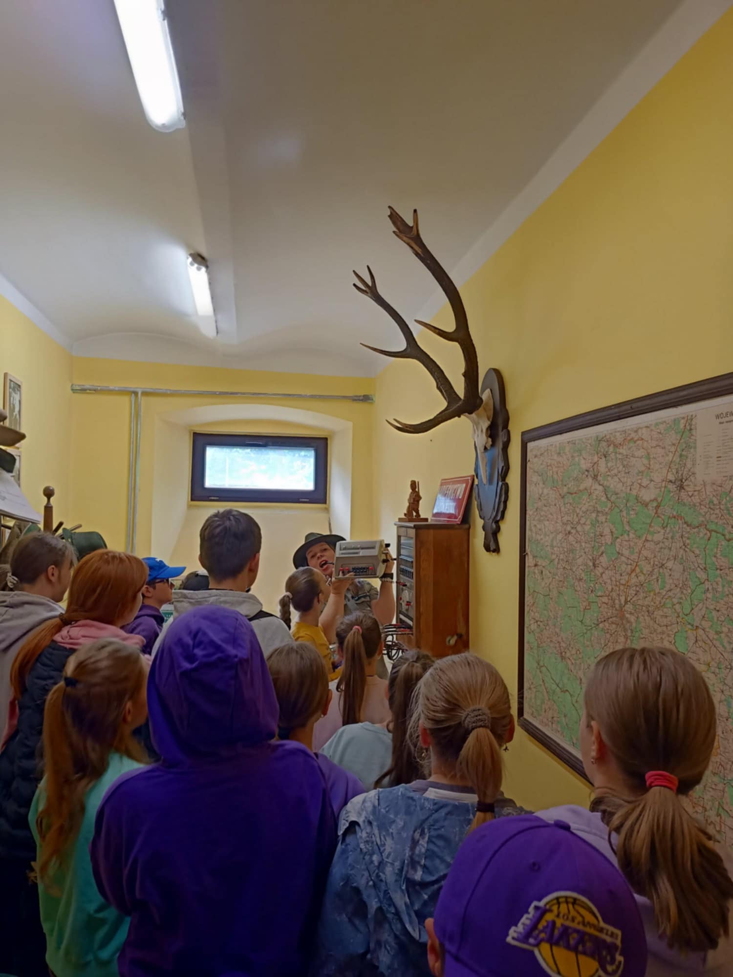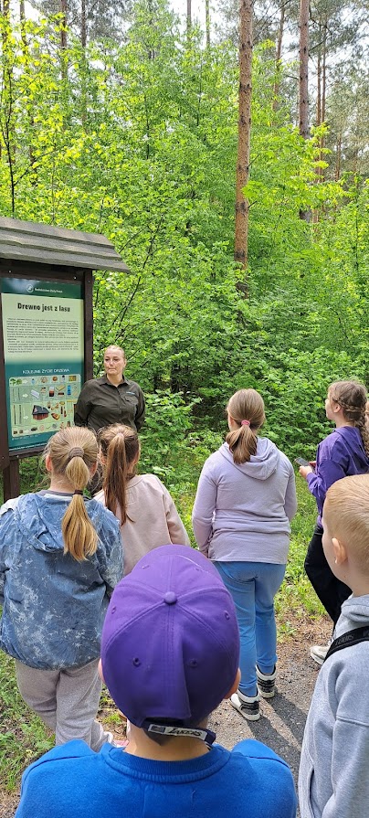 22 maja klasy IV i V wraz z wychowawcami wybrały się do Nadleśnictwa Złoty Potok. Naszą wycieczkę rozpoczęliśmy od zwiedzania izby przyrodniczo-leśnej. Mogliśmy tam zobaczyć eksponaty zwierząt i ptaków (a także posłuchać ich odgłosów), przyjrzeć się przekrojom drzew, przejrzeć zielniki roślin. Pani leśnik przekazała nam ciekawe informacje na temat życia roślin i zwierząt, pracy leśniczego, ochrony przyrody i gospodarki leśnej.