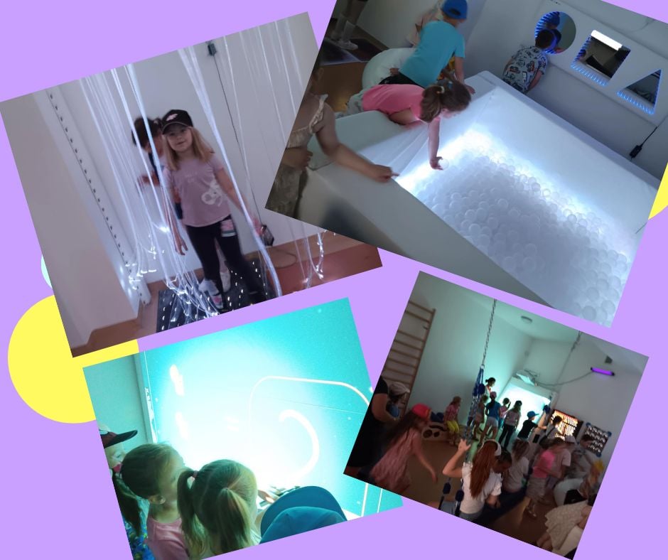 Z ogromną ciekawością zwiedzały każdą salę, zaglądały do pięknej pracowni zielonej , testowały szkolne ławki, sprawdziły, co słychać na stołówce – same pyszności! A największe „wow!” wywołała sala świateł i integracji sensorycznej – prawdziwa kraina zmysłów i wyobraźni! Dzieci zadawały pytania bez końca, było mnóstwo śmiechu i zachwytu. Powitała nas Pani Dyrektor – wspaniały przewodnik tej wyprawy – a każdy pracownik szkoły obdarzał dzieci serdecznym uśmiechem.