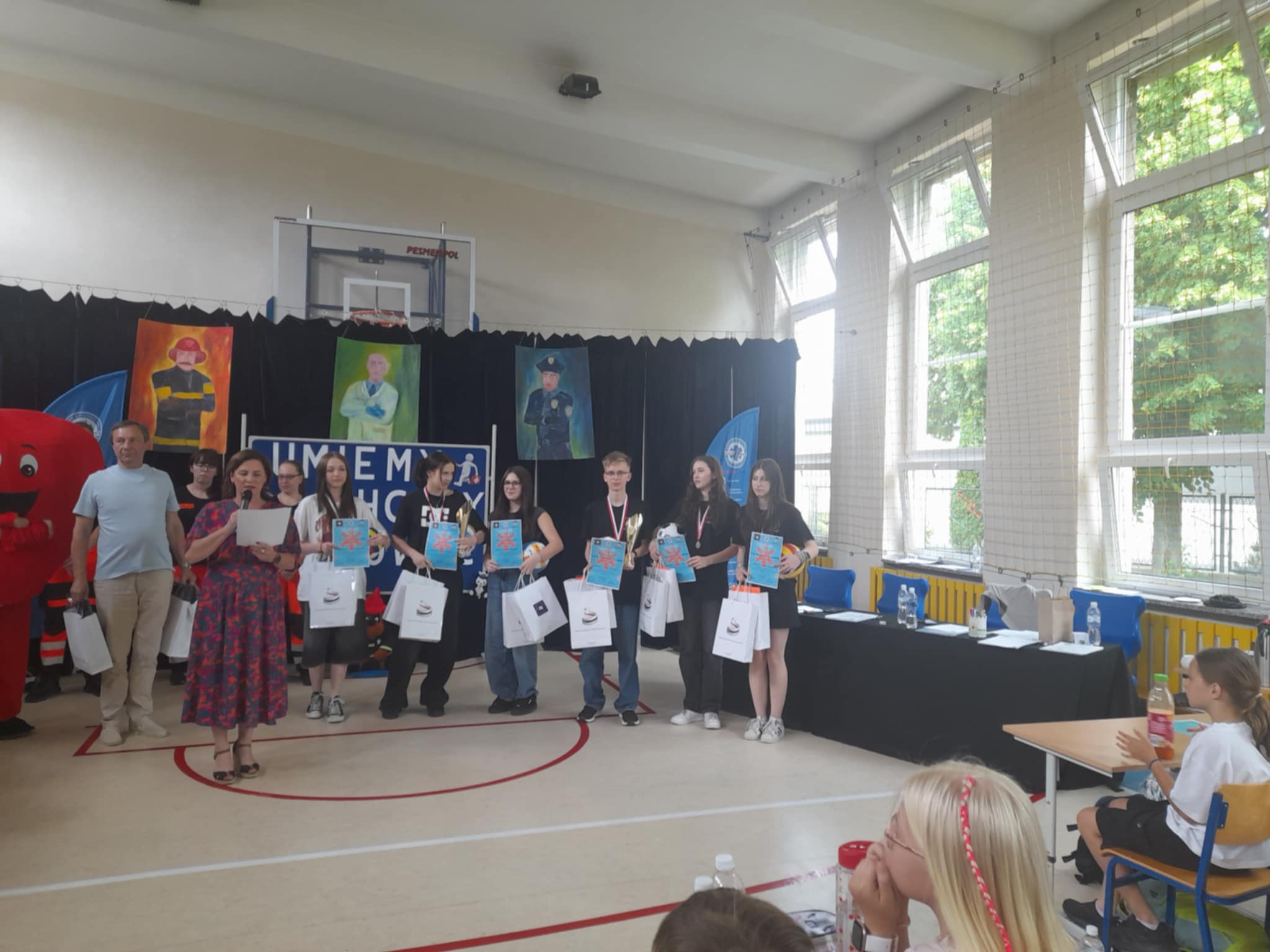 5 czerwca 2025 roku 3-osobowa drużyna z naszej szkoły w składzie: Adrianna Kopyto, Tatiana Bąbelewska oraz Zuzanna Koźlik wzięła udział w Powiatowym Konkursie Pierwszej Pomocy „UMIEMY I CHCEMY RATOWAĆ” pod Honorowym Patronatem Prezydenta Miasta Częstochowy. Głównym celem konkursu było rozpowszechnianie wśród dzieci i młodzieży zasad udzielania pierwszej pomocy: od prawidłowego wezwania pomocy, po podstawowe czynności ratunkowe przy osobie poszkodowanej, kształtowanie umiejętności odpowiedniego zachowania się w sytuacjach zagrożenia życia i zdrowia. Konkurs składał się z 2 części: teoretycznej (test) i praktycznej (symulacje). Zadania konkursowe przygotowało i oceniało Jury powołane przez Stowarzyszenie Sztabu Ratownictwa i Łączności w Częstochowie RESCUE TEAM. Miło nam poinformować, że nasza drużyna zajęła drugie miejsce w kategorii klas IV-VIII. Gratulacje dla naszego zespołu i życzymy dalszych sukcesów.