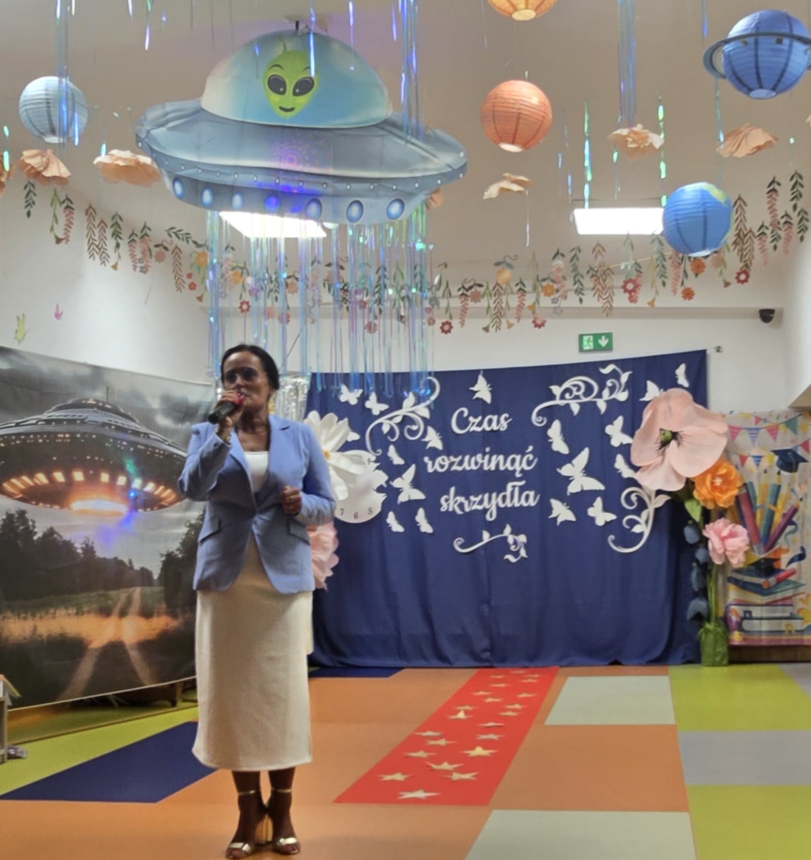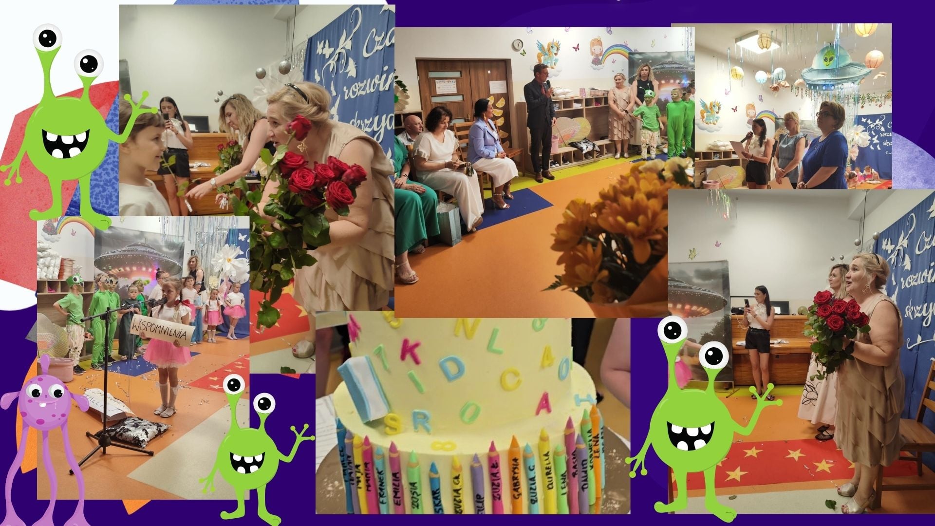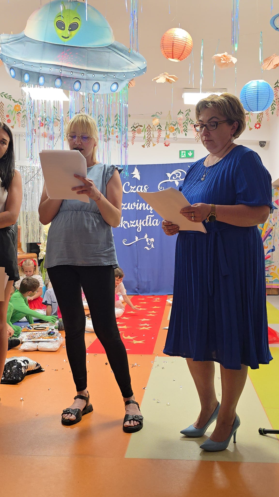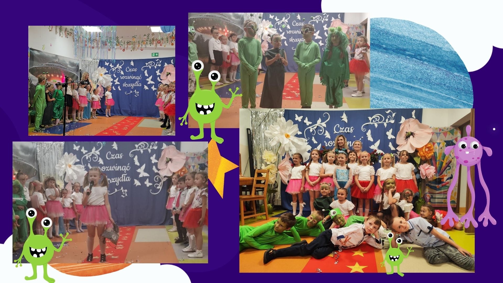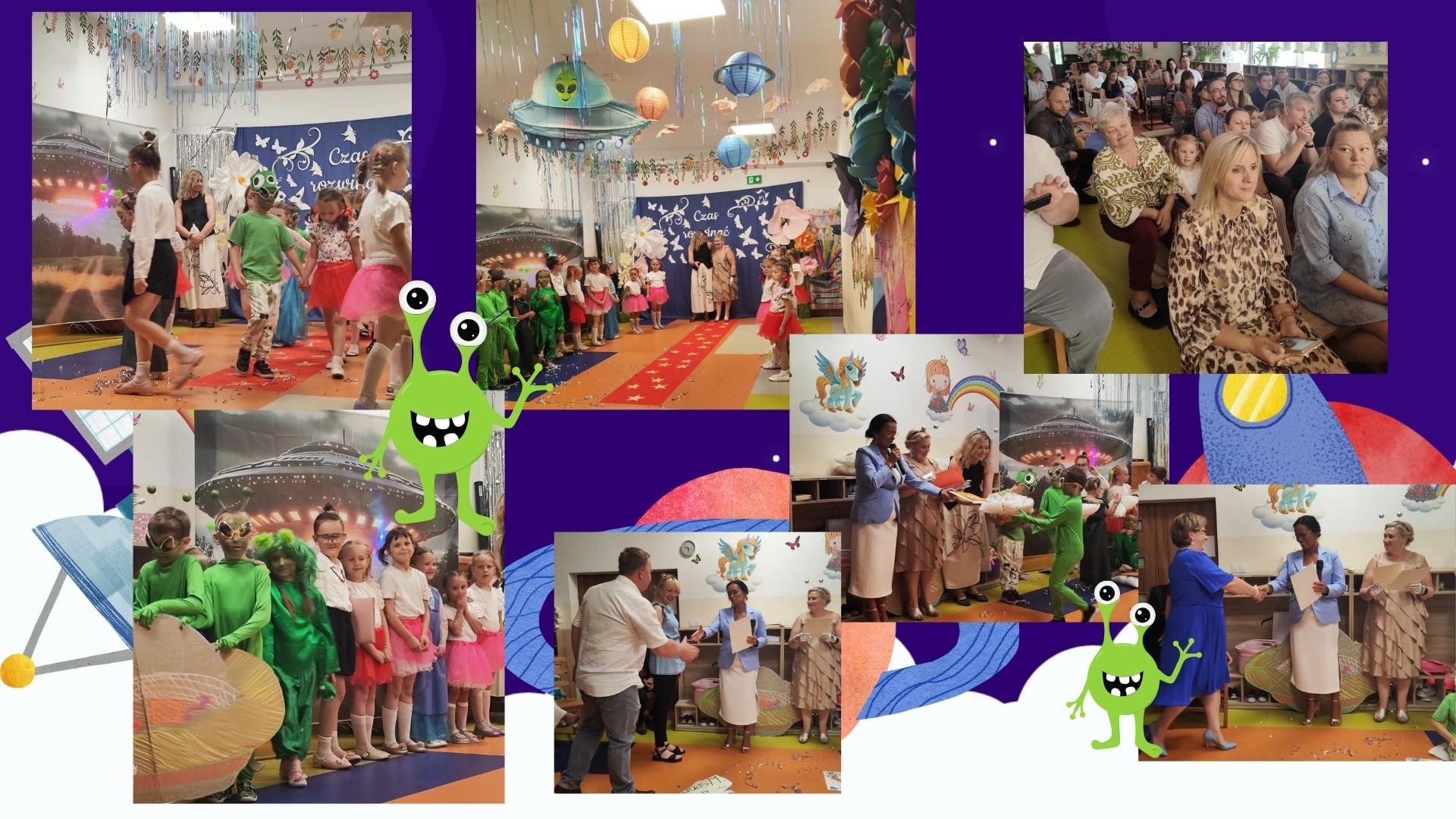 100 zdjęć nie odda tych chwil… bo to, co najpiękniejsze, zostaje w sercu. Kosmiczne Zakończenie Roku… i to dosłownie! Naszą uroczystość odwiedzili nawet kosmici, by pożegnać grupę niesamowitych 6-latków, którzy po czterech wspólnych latach wyruszają w nową podróż życia. Było wszystko, co najpiękniejsze: bajeczny tort, korowód kwiatów dla naszych wspaniałych Pań, cudowne karykatury – wyjątkowa pamiątka pełna uśmiechu i przede wszystkim Wy – dzieci, które świeciły na scenie jak najjaśniejsze gwiazdy. Wzruszenie mieszało się z dumą – goście byli oczarowani. Dziękujemy z całego serca Rodzicom i Dzieciom za ten wspólny czas, za każdy krok, który przeszliśmy razem. To nie pożegnanie – to piękne „do zobaczenia”… Wasza podróż dopiero się zaczyna!