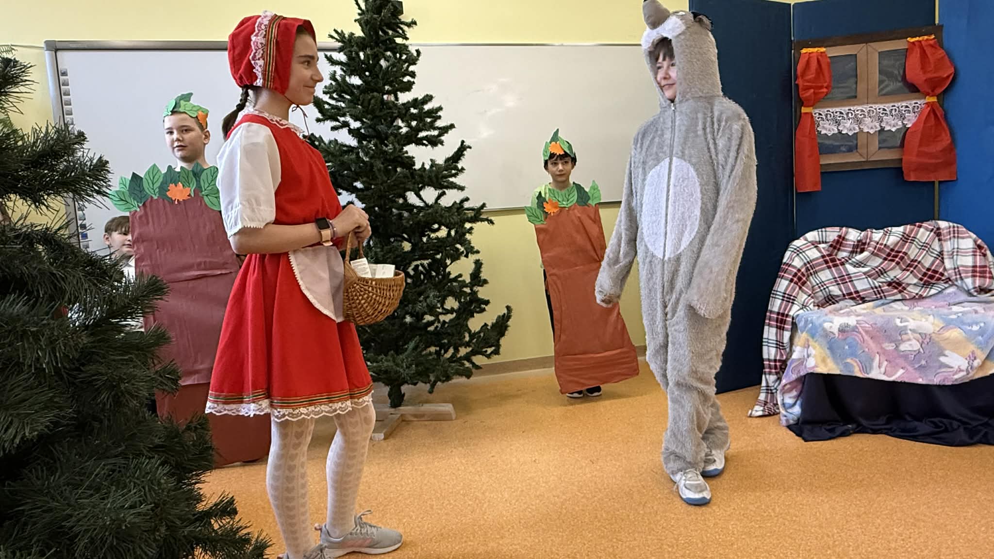 Zanim jednak odbyło się ślubowanie, pierwszaki obejrzały spektakl „Czerwony Kapturek” w obsadzie czwartoklasistów. Uczniowie z kl. VIII zapoznali najmłodszych uczniów z zasadami, jak dbać o wypożyczone książki. Następnie pierwszoklasiści złożyli uroczyste przyrzeczenie, że będą dbać i szanować książki.
