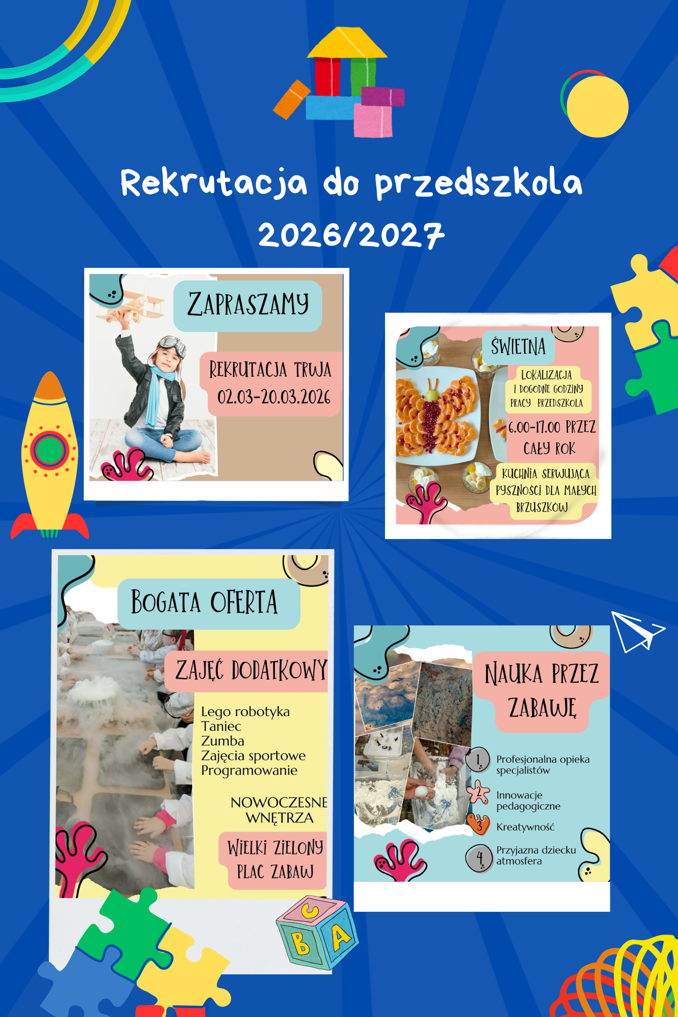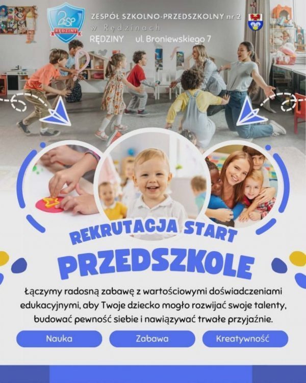 Zapraszamy do Przedszkola przy ZSP nr 2 w Rędzinach ul. Broniewskiego 7. Rekrutacja trwa do 20 marca 2026 r.