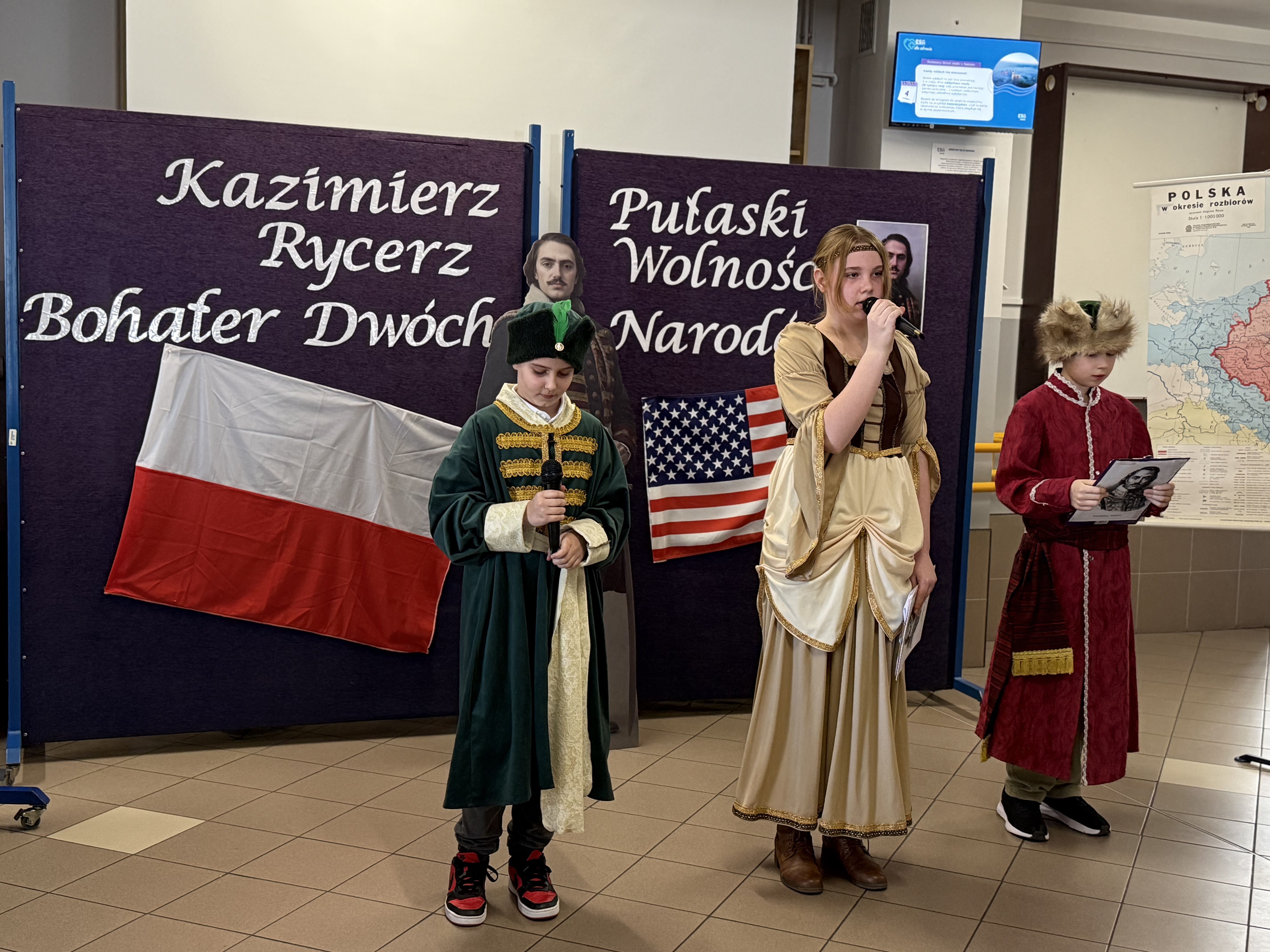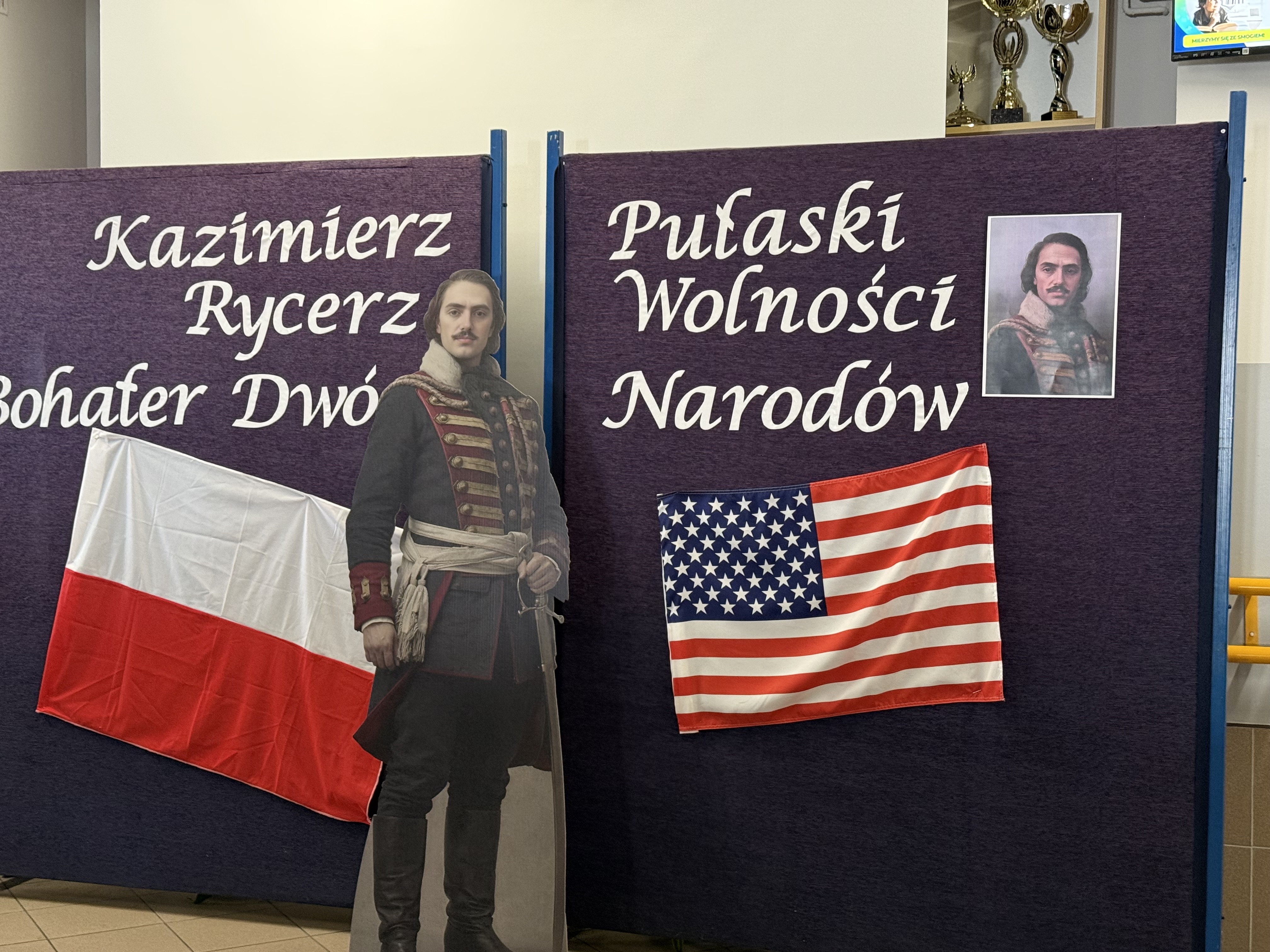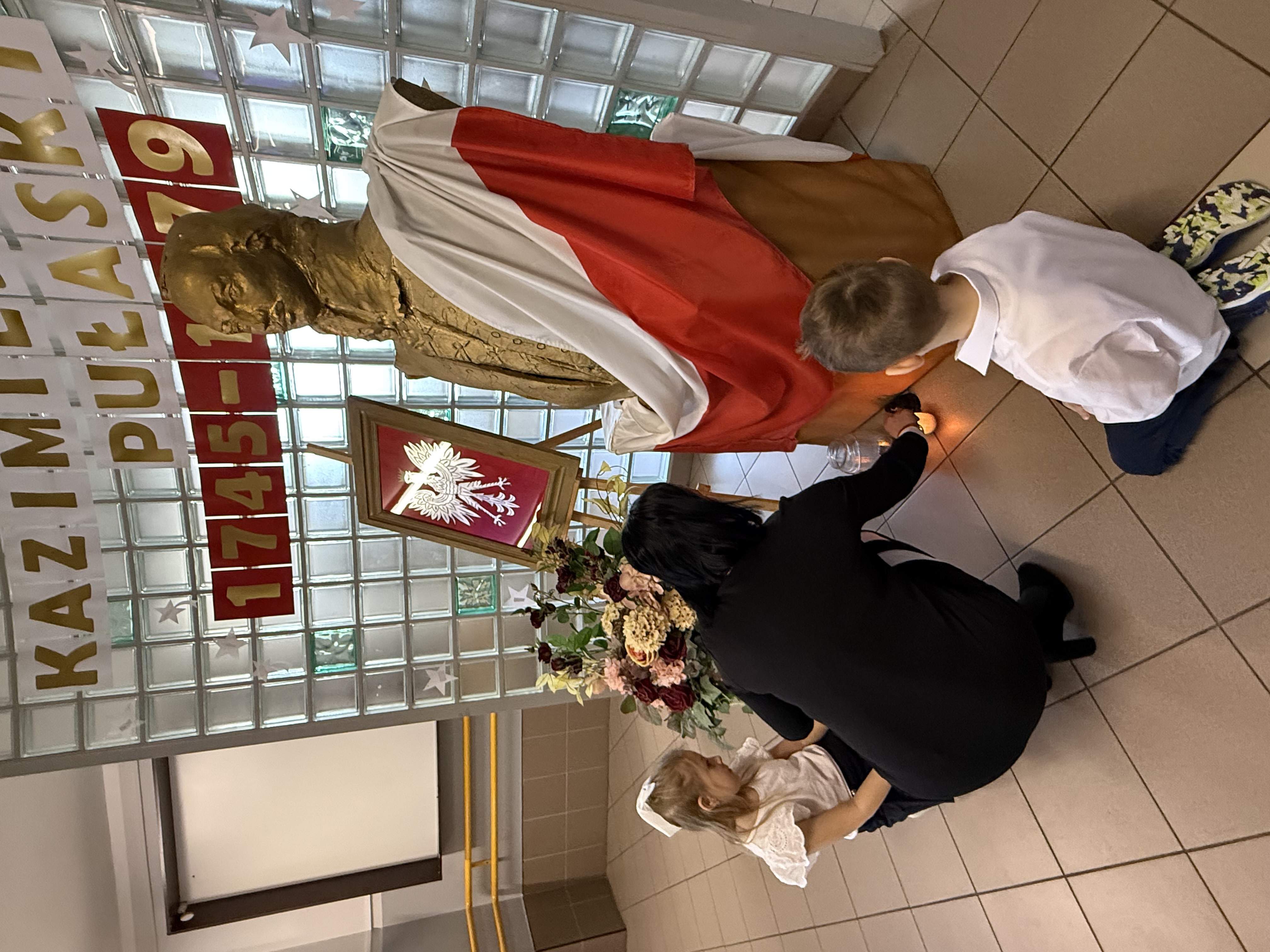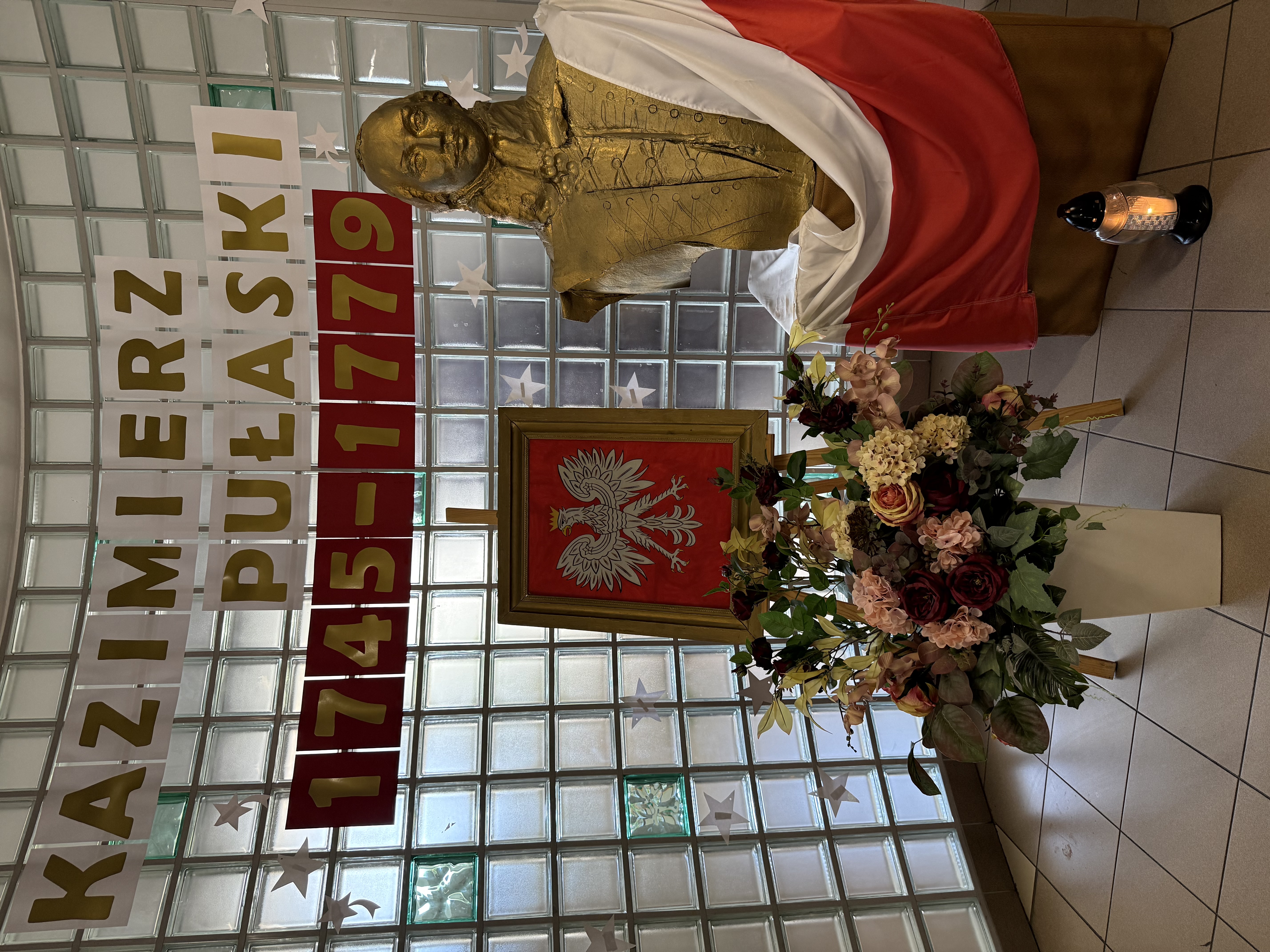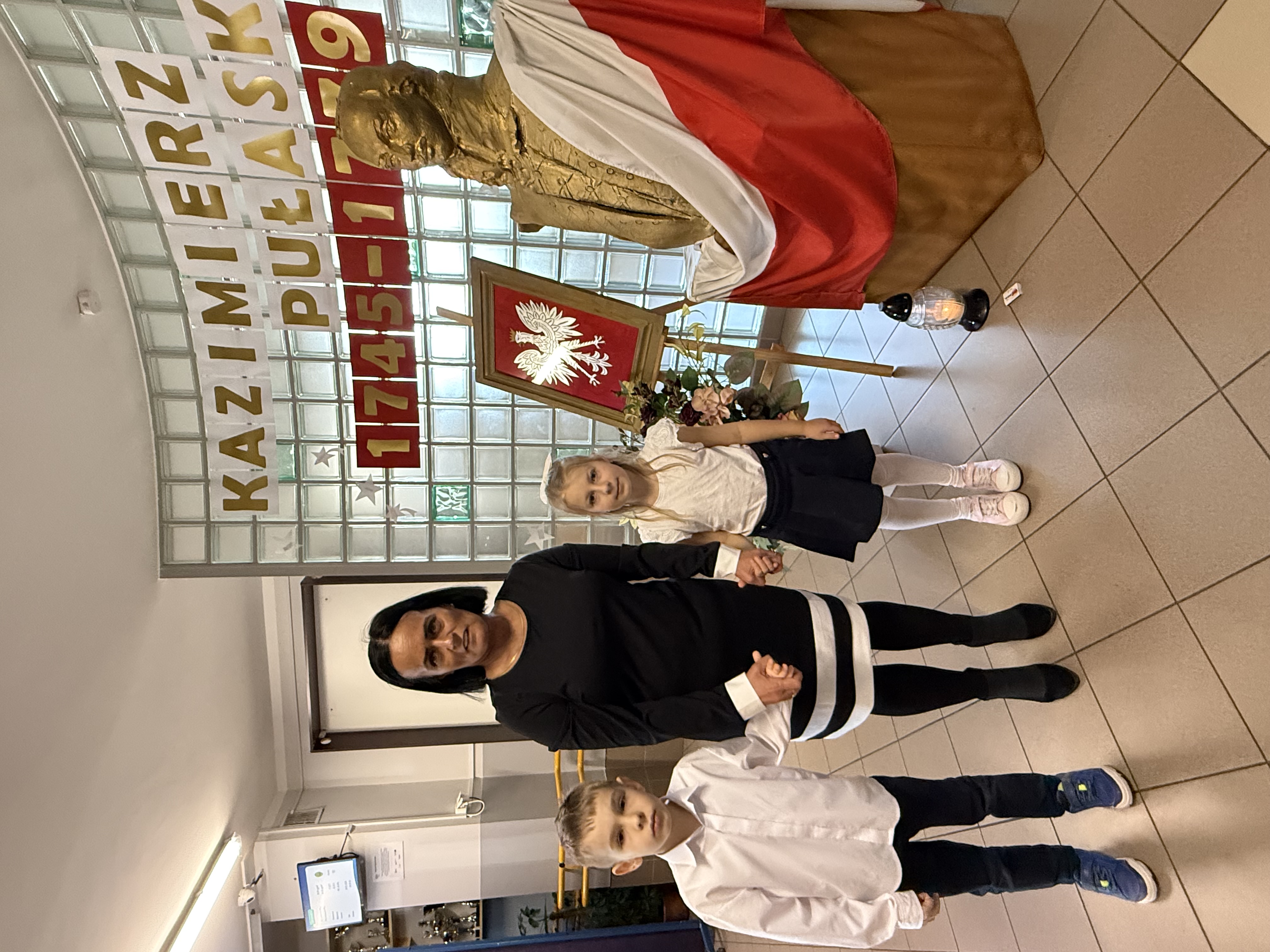 Dziś, w dniu urodzin i imienin naszego patrona – Kazimierza Pułaskiego, odbyła się uroczystość ku Jego czci – Dzień Patrona. Wydarzenie zostało przygotowane przez uczniów klasy V pod kierunkiem wychowawcy. Uroczystość rozpoczęła się od symbolicznego gestu pamięci. Pani Dyrektor wraz z dwojgiem uczniów najmłodszych klas zapaliła znicz pod popiersiem patrona, oddając hołd bohaterowi narodowemu i podkreślając znaczenie jego odwagi oraz poświęcenia dla ojczyzny. Następnie zgromadzeni mieli okazję wysłuchać niezwykłego przemówienia samego Kazimierza Pułaskiego. Dzięki zastosowaniu nowoczesnej technologii AI postać patrona „przemówiła” do uczniów, przybliżając swoją historię oraz wartości, którymi kierował się w życiu – patriotyzm, honor i odwagę. Kolejnym punktem programu był montaż słowno-muzyczny. Młodzi artyści zaprezentowali wiersze i pieśni o tematyce patriotycznej, wprowadzając wszystkich w podniosły i refleksyjny nastrój. Całość dopełniła ciekawa scenografia oraz wspaniałe stroje z epoki, które pozwoliły przenieść się w czasy, w których żył nasz patron. Uroczystość była nie tylko lekcją historii, ale także ważnym przypomnieniem o wartościach, które powinny towarzyszyć nam na co dzień. Dzięki zaangażowaniu uczniów Dzień Patrona stał się pięknym i inspirującym wydarzeniem w życiu naszej szkoły.