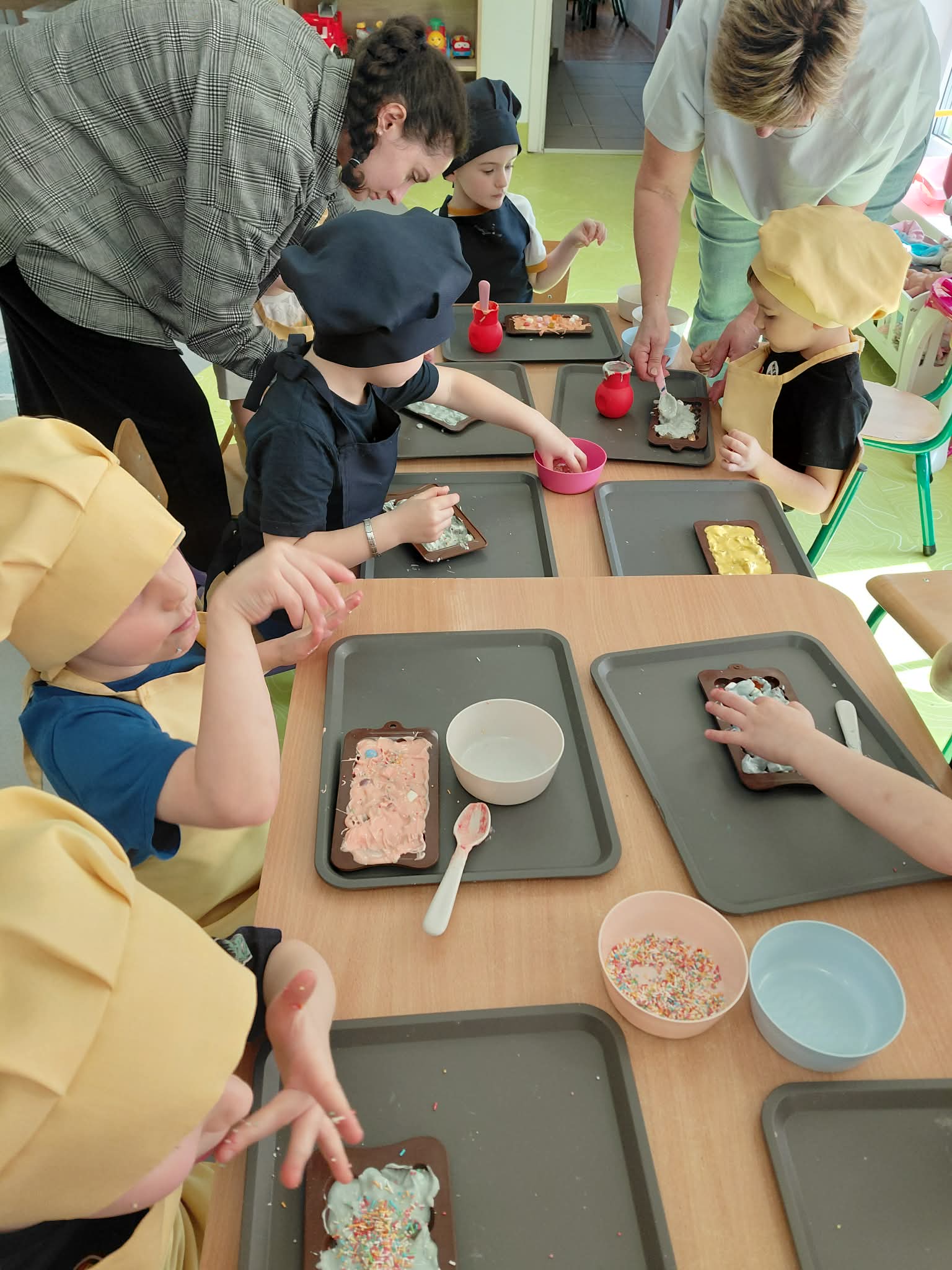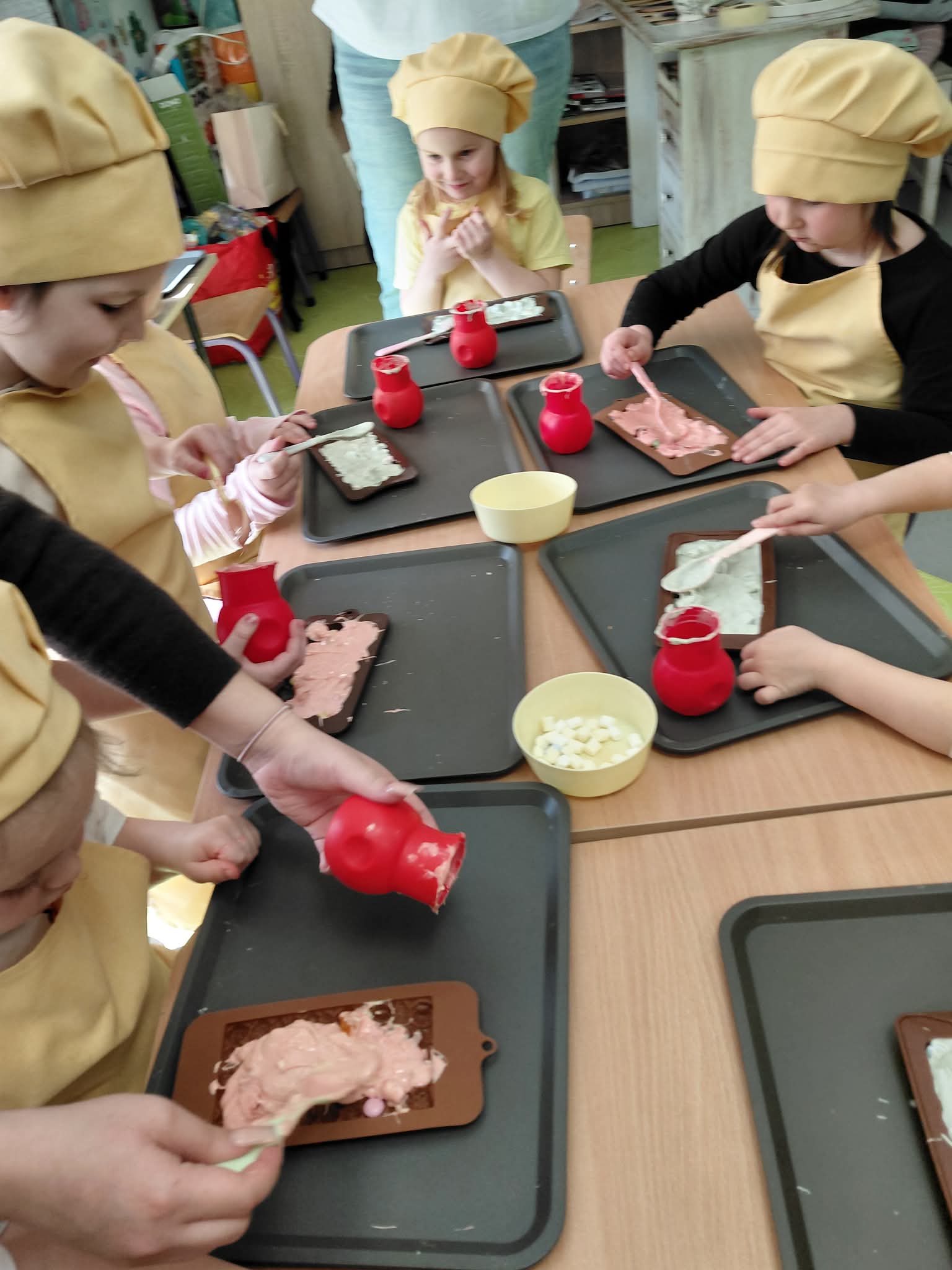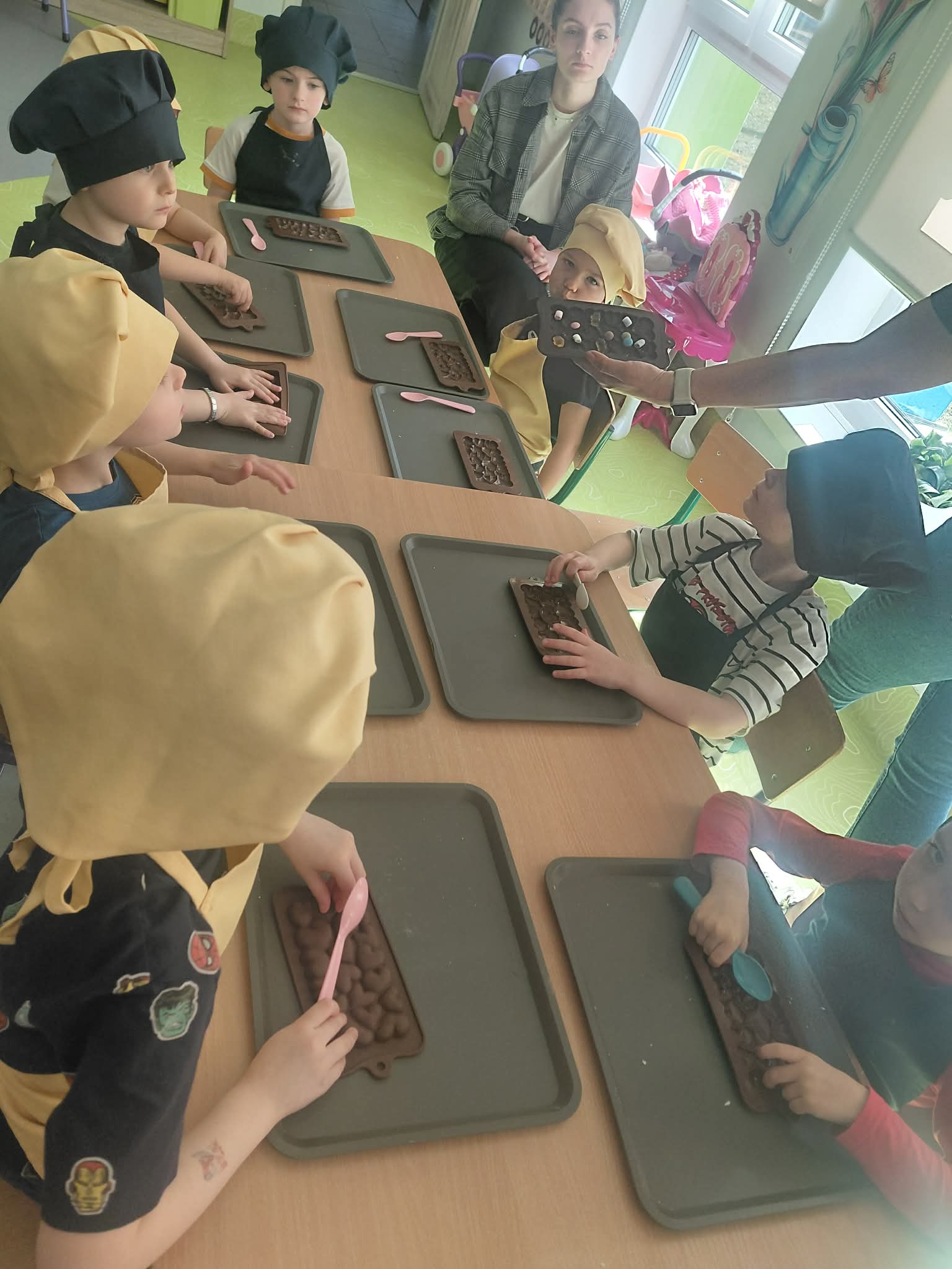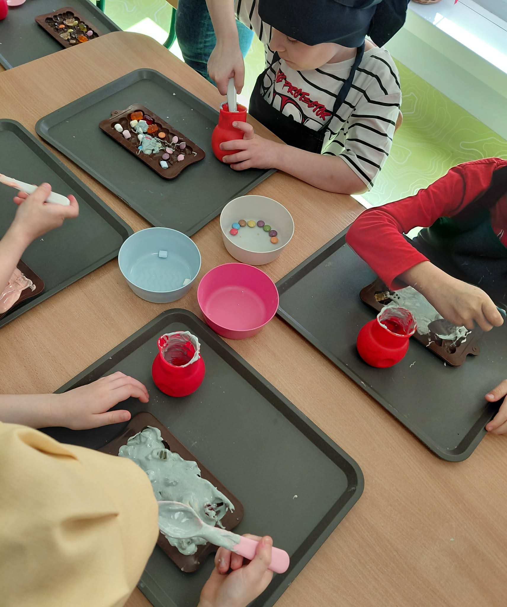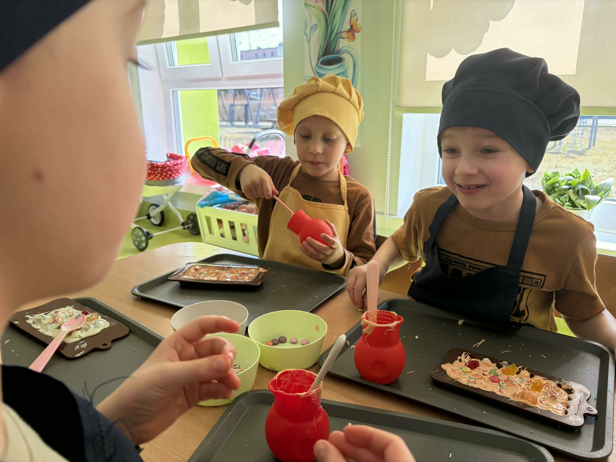 11 marca 2026 Słodkie Warsztaty Czekoladowe z Wesoło Mi w grupie 5 i 6 latków Administrator Aktualności Bardzo kreatywne warsztaty, podczas których topiliśmy, łamaliśmy, barwiliśmy, dekorowaliśmy, mroziliśmy i pakowaliśmy nasze czekolady! Na koniec czekała na nas słodka nagroda – piękne czekolady w bajecznych kształtach.