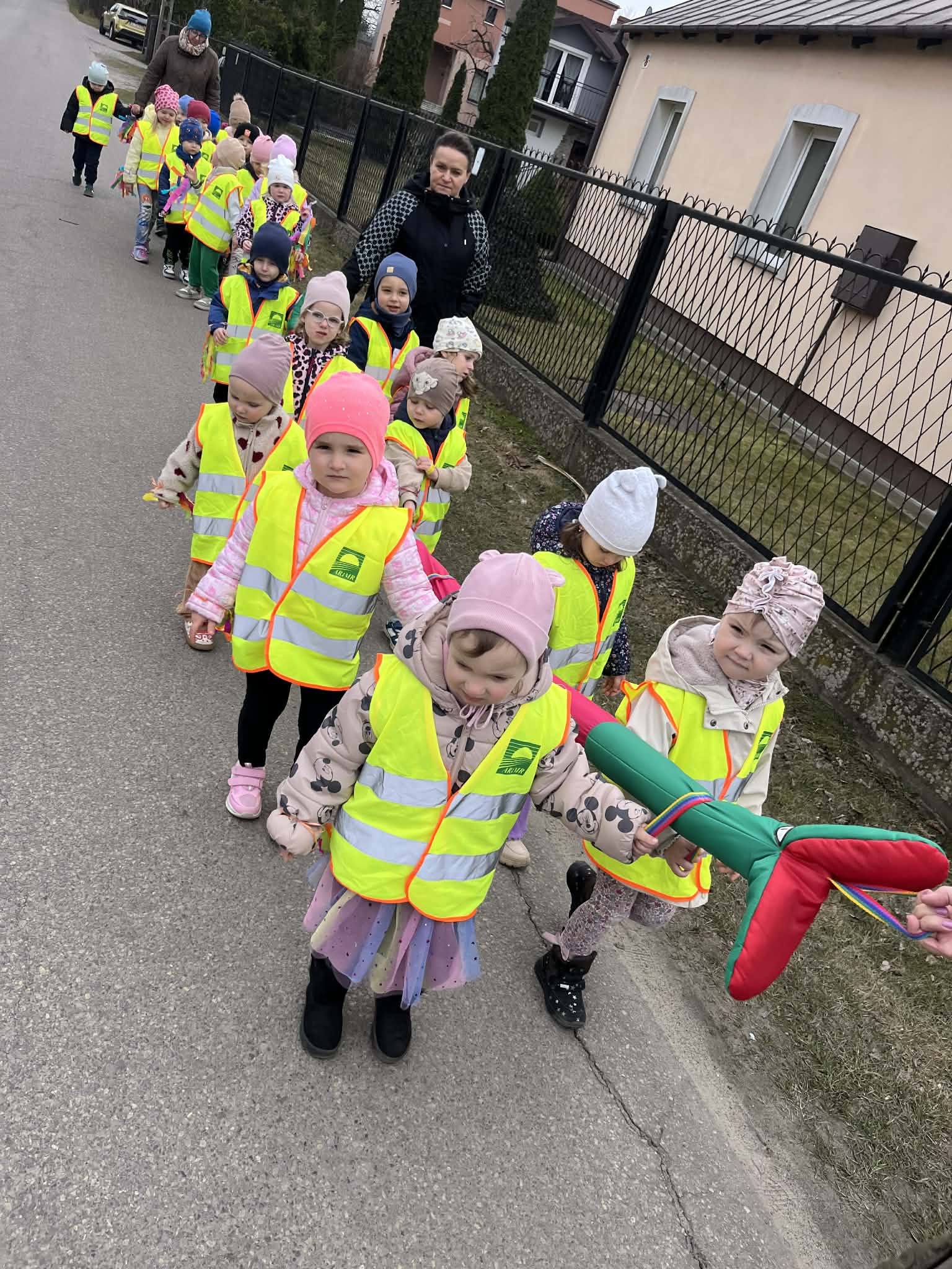 W piątek 20 marca wyruszyliśmy wesołą gromadą nad pobliski staw. Na przodzie szła oczywiście MARZANNA – ZIMOWA PANNA. Otaczając słomianą kukłę głośno krzyczeliśmy ŻEGANAJ ZIMO- WIOSNO PRZYBYWAJ!!! Mamy nadzieję, że zima zakończyła się na dobre, a wiosna może się w końcu na dobre rozgościć. Dzieci dopilnowały, żeby wszystko odbyło się zgodnie z tradycją i z odpowiednią ilością śmiechu!