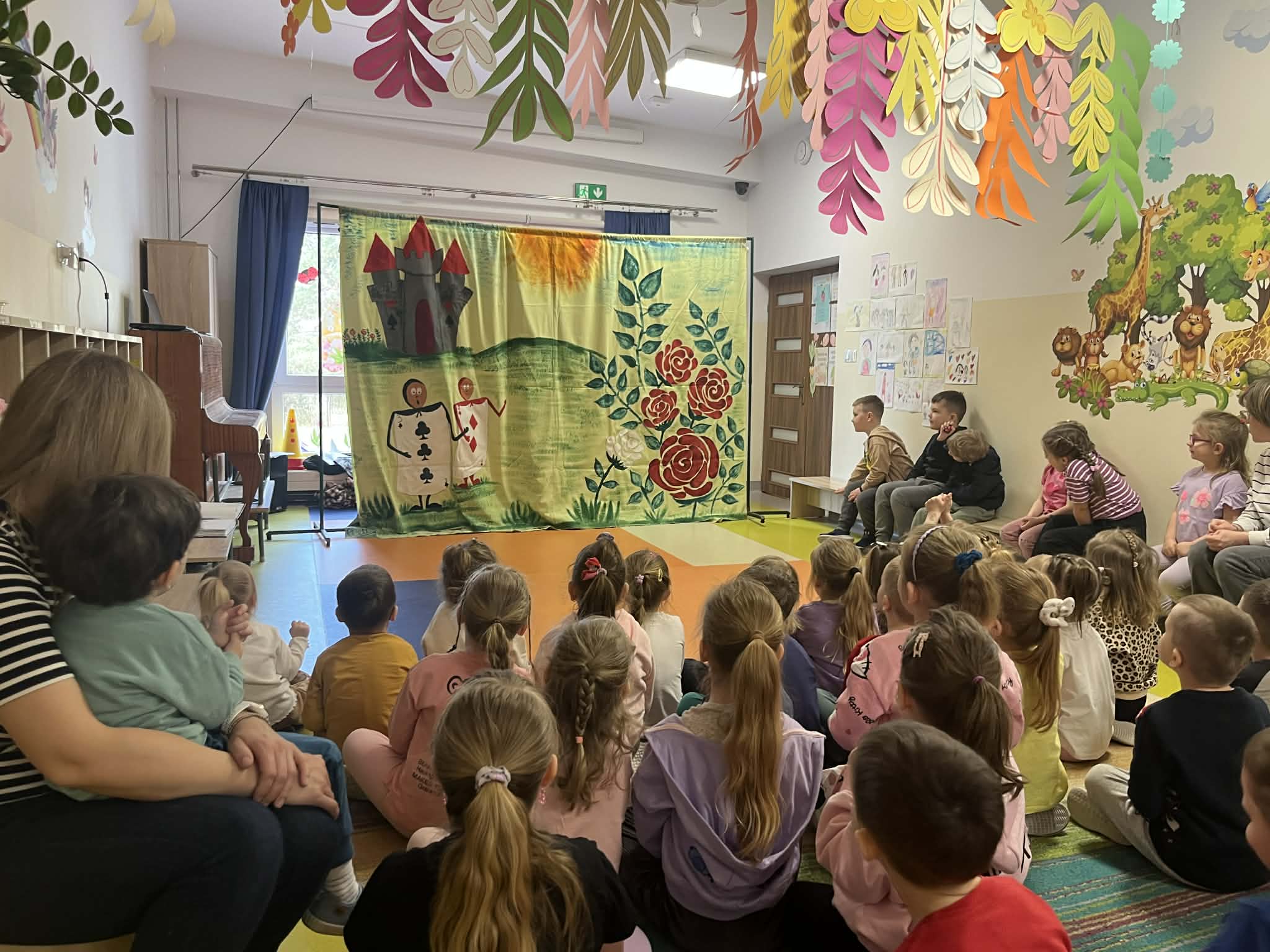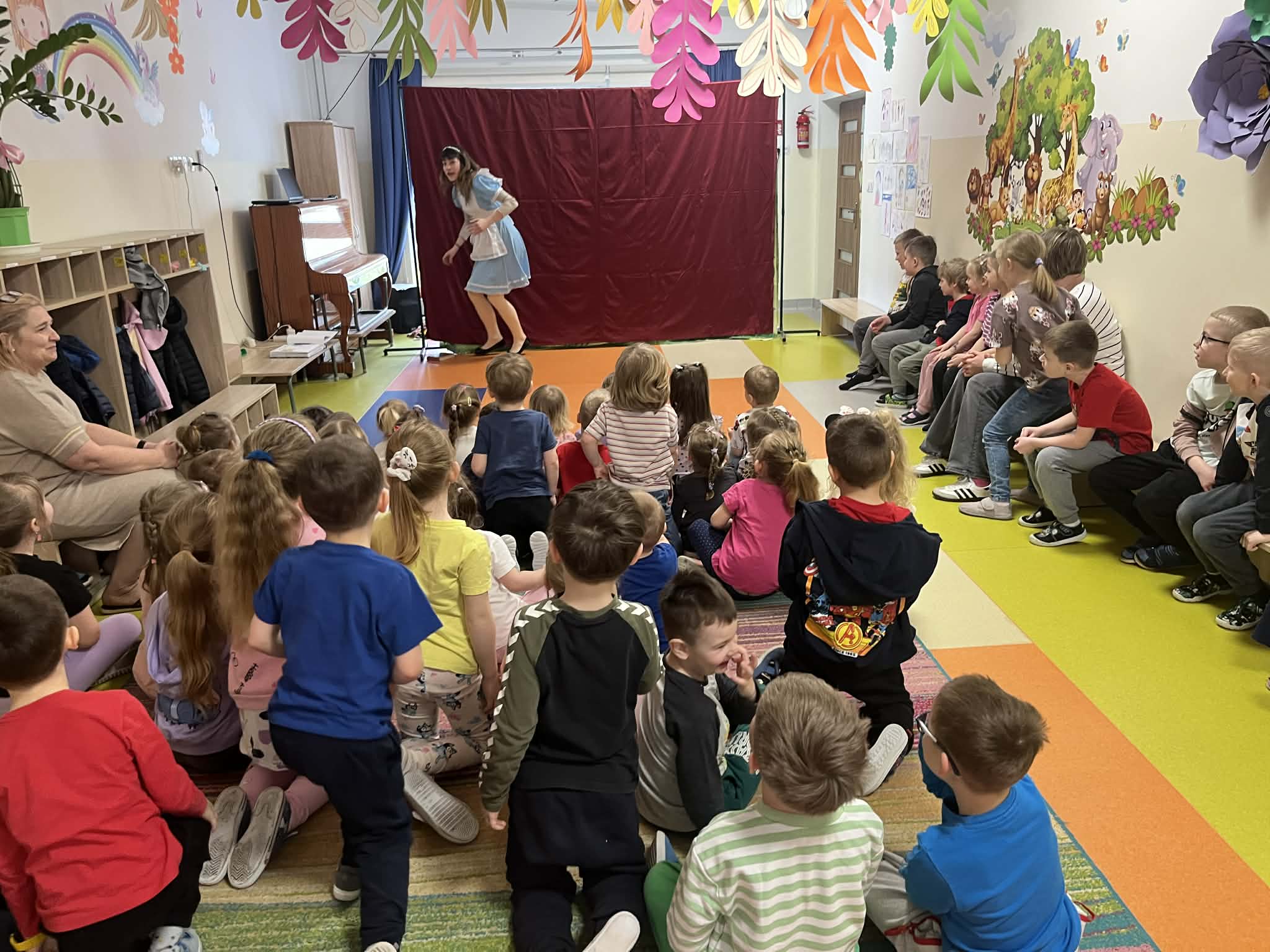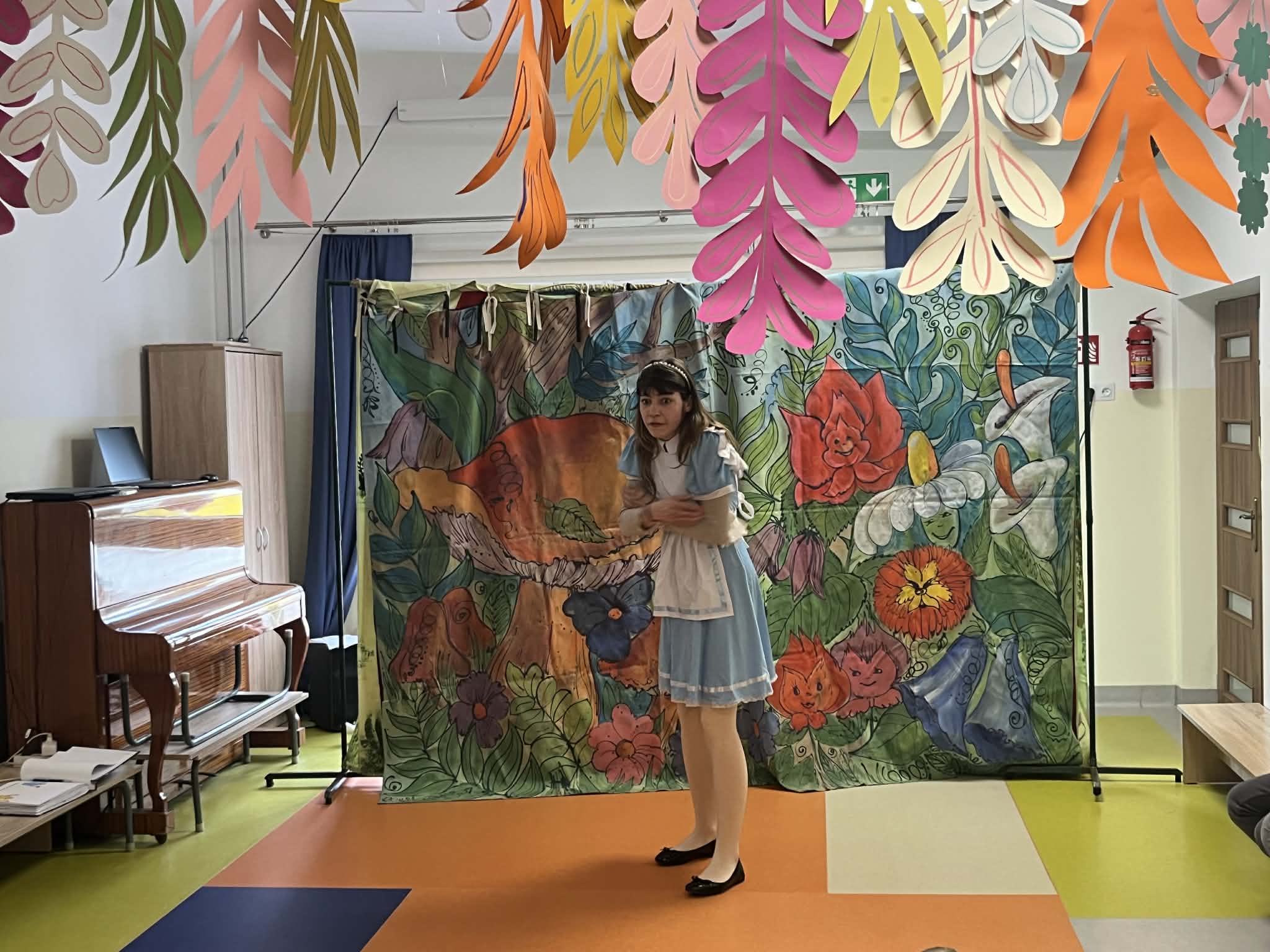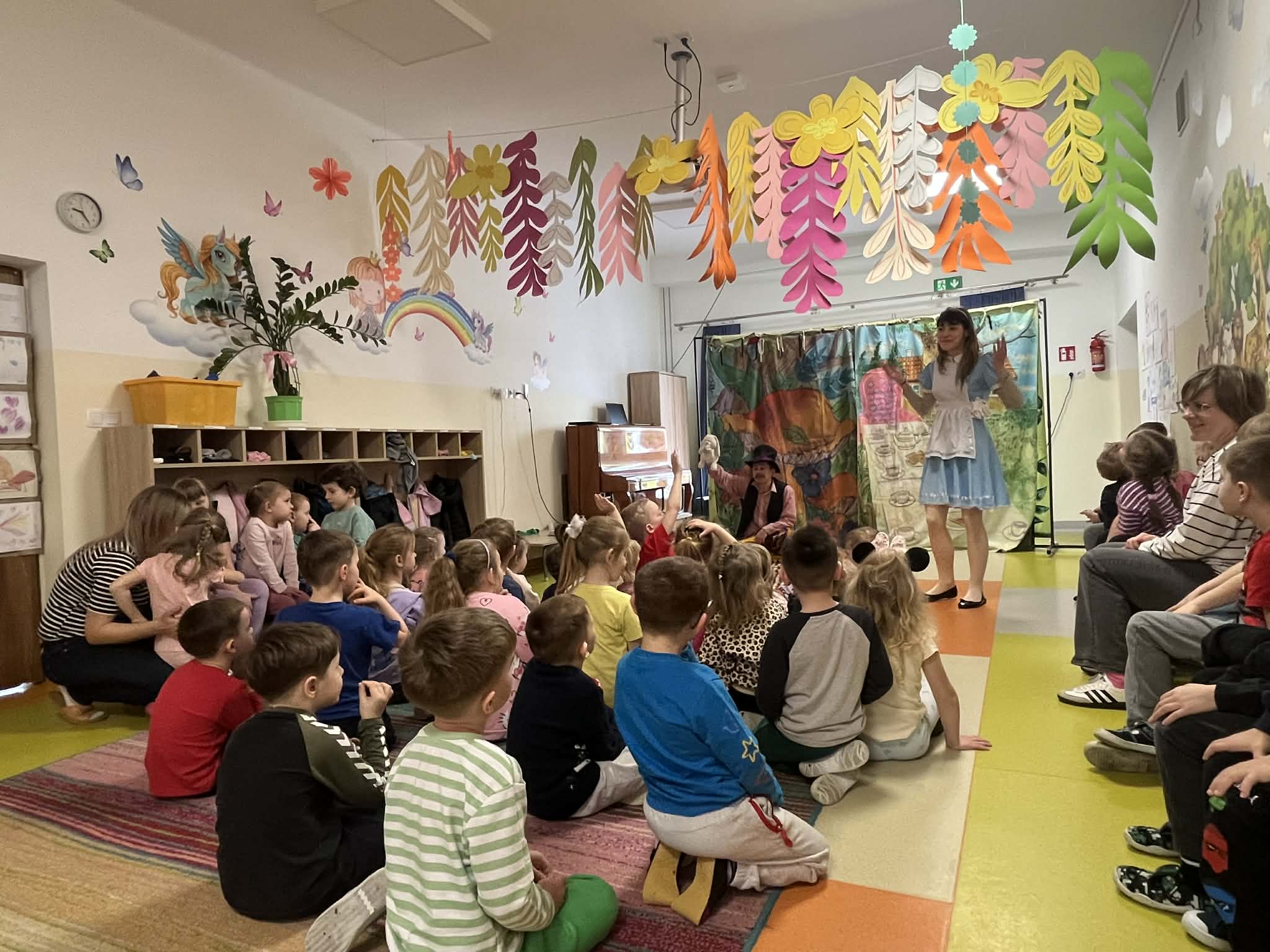 Dziś w naszym przedszkolu mogliśmy uczestniczyć w spektaklu „Alicja w Krainie Czarów” w wykonaniu Teatru Blaszany Bębenek. Była to interaktywna, pełna muzyki i barw adaptacja klasycznej baśni dla dzieci. Opowiadała ona o przygodach Alicji, która podążając za Białym Królikiem trafia do pełnej absurdów krainy, gdzie spotyka Kapelusznika, Kota z Cheshire i Królową Kier, ucząc się wyobraźni. Bawiliśmy się wspaniale!!! Dziękujemy z całego serducha Radzie Rodziców za pomoc w zorganizowaniu tego miłego wydarzenia