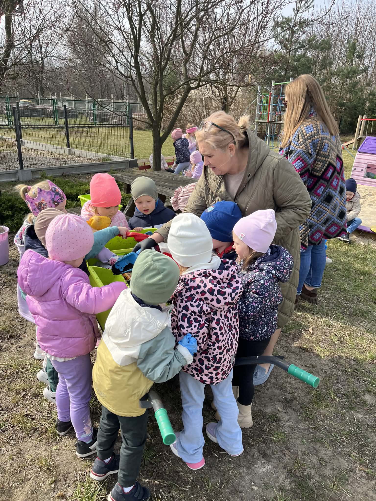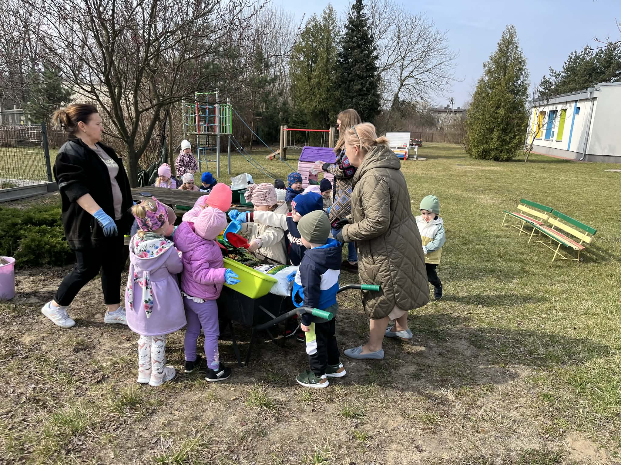 wiosenne prace porządkowe w ogrodzie przedszkolnym