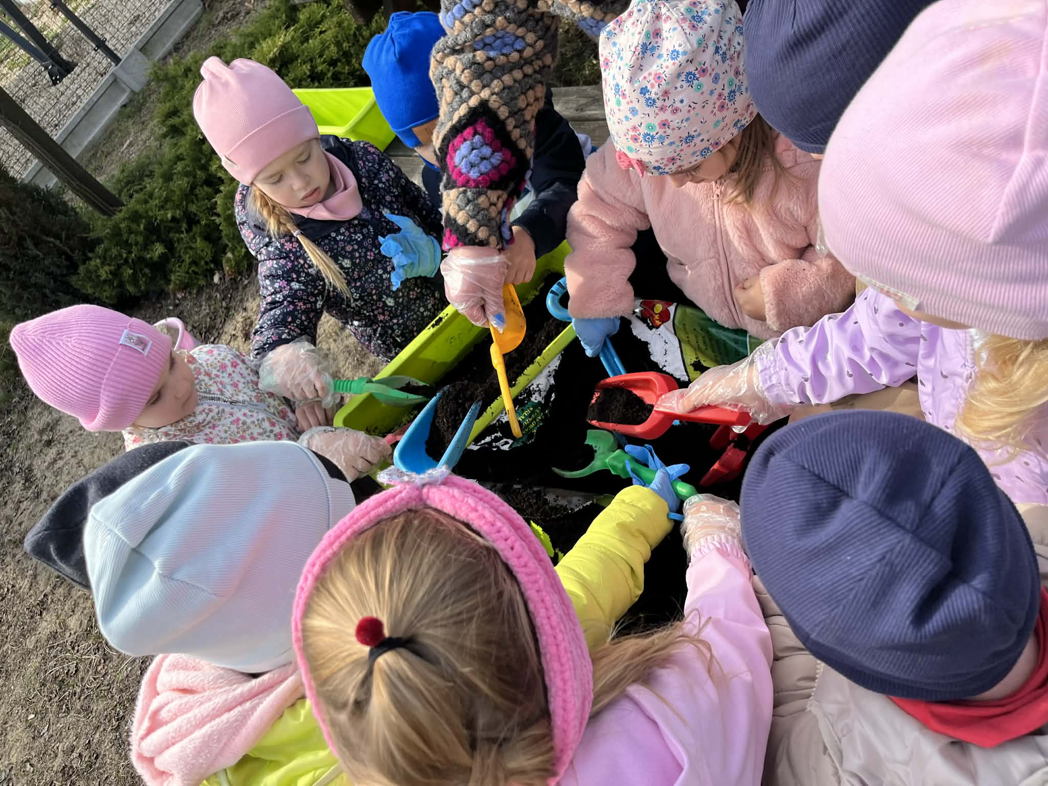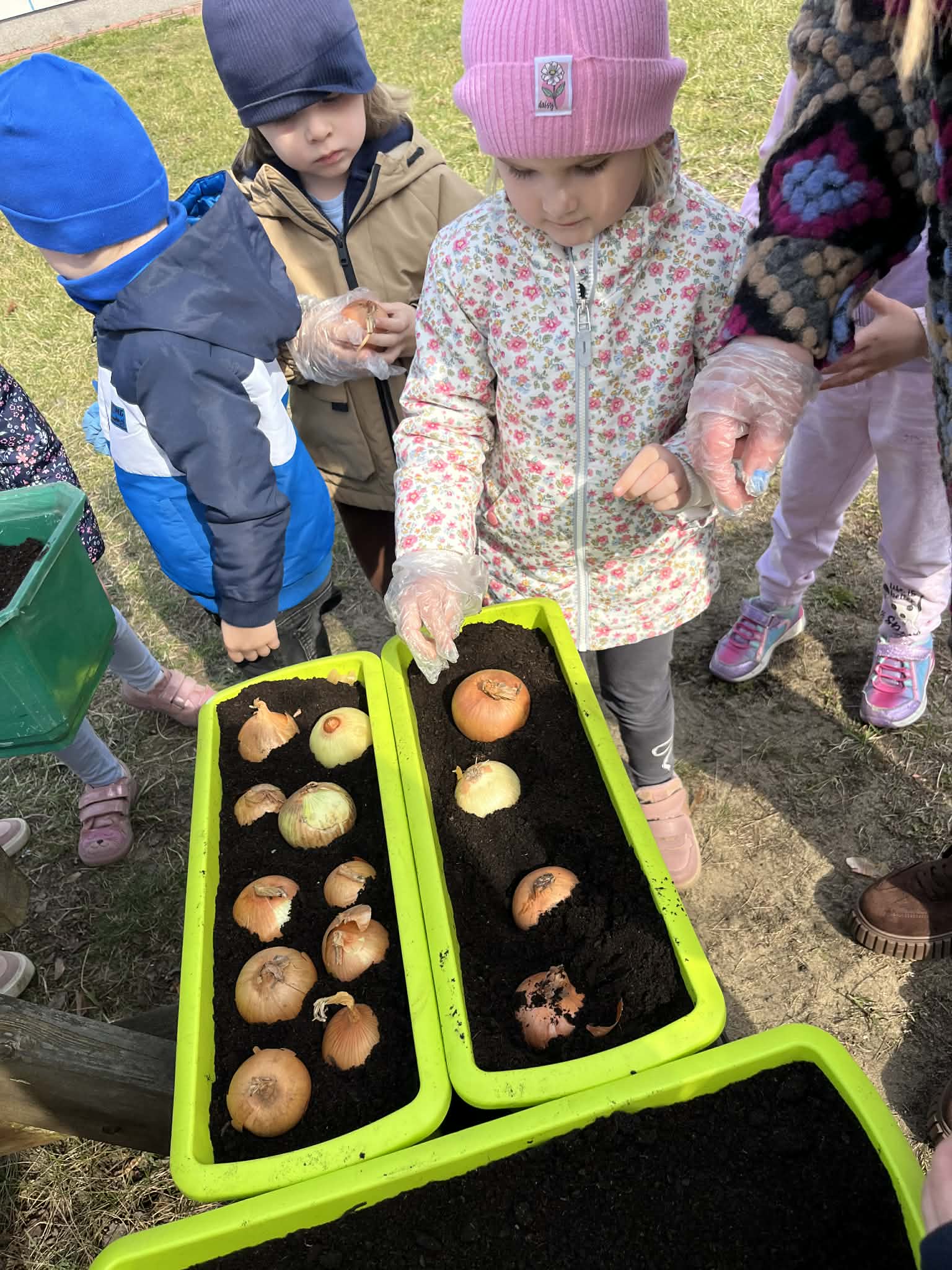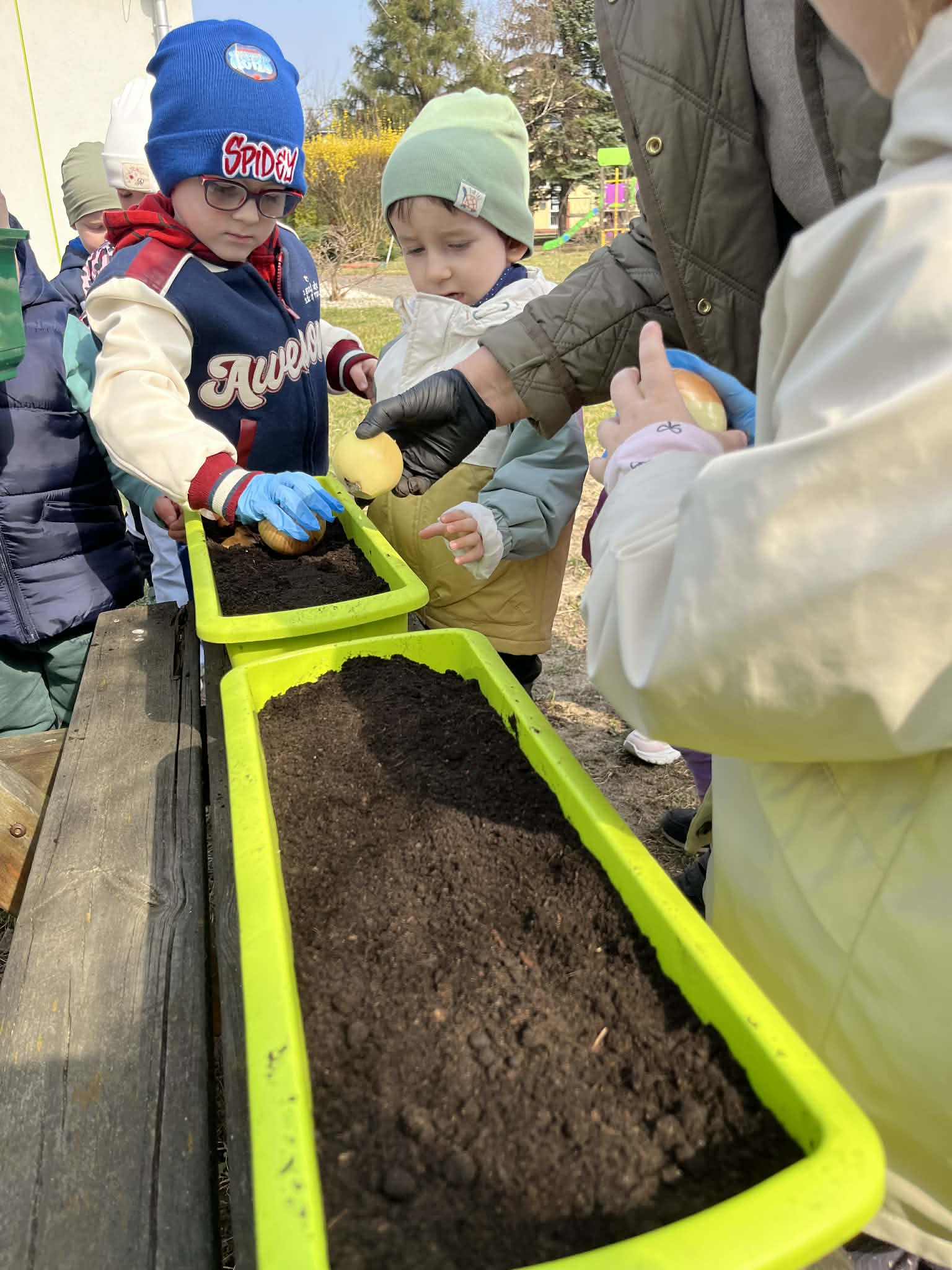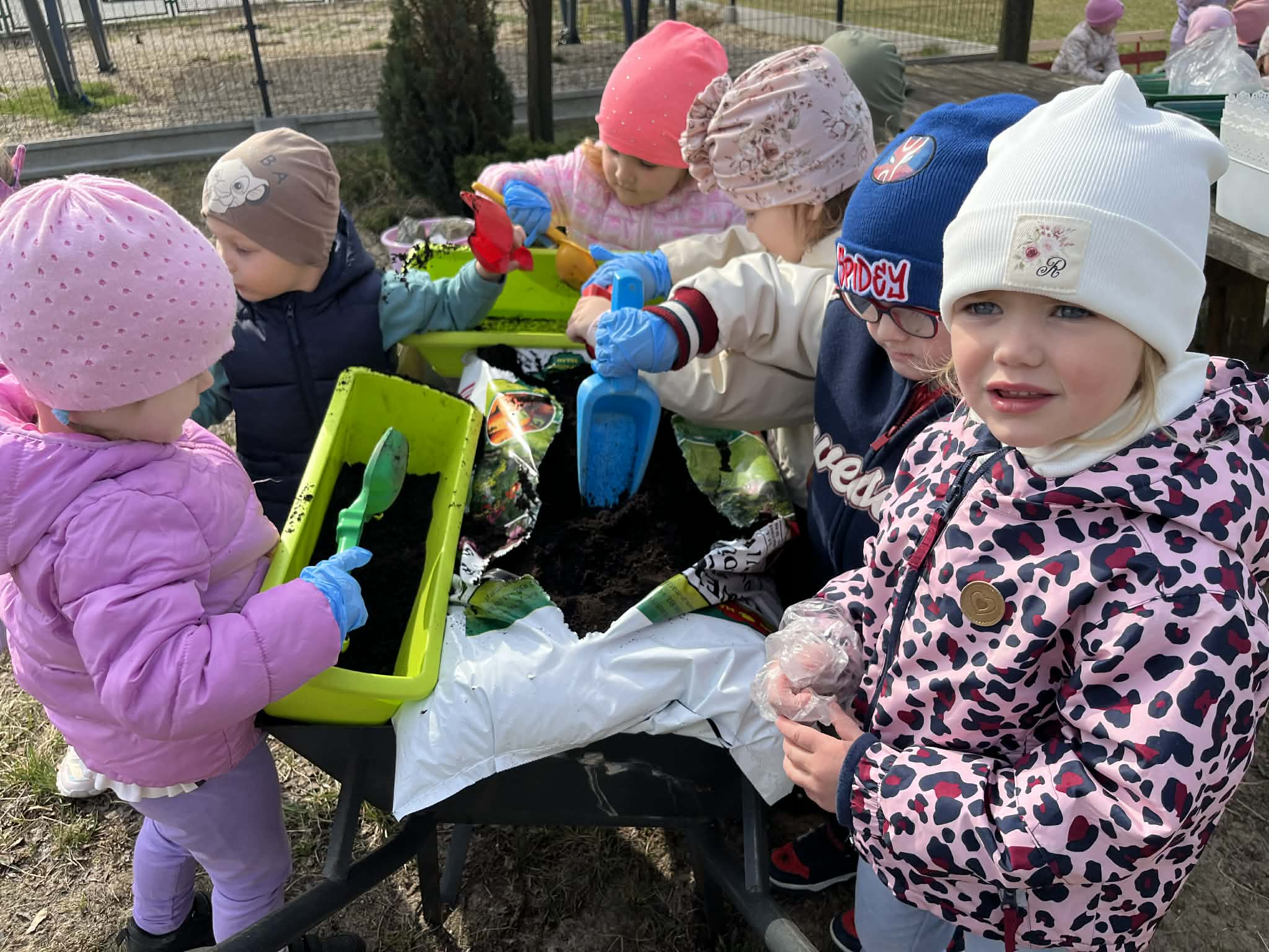 Podczas zajęć mali ogrodnicy sadzili cebulę, z której już wkrótce wyrośnie pyszny, świeży szczypiorek – nie możemy się doczekać, aż będziemy mogli go spróbować podczas śniadania! Oprócz tego dzieci posadziły także kolorowe kwiatki, które w najbliższym czasie pięknie ozdobią przedszkolny ogród i umilą nam wspólne zabawy na świeżym powietrzu.