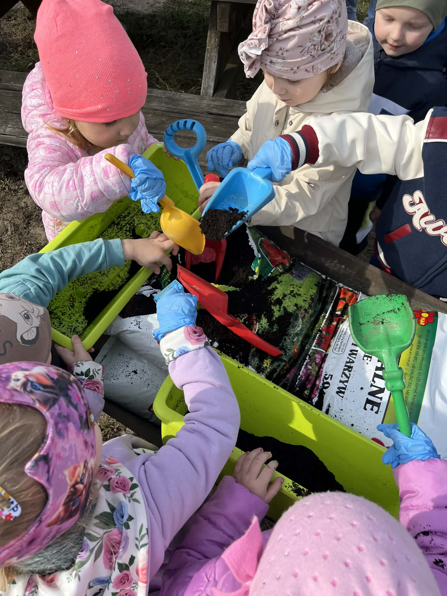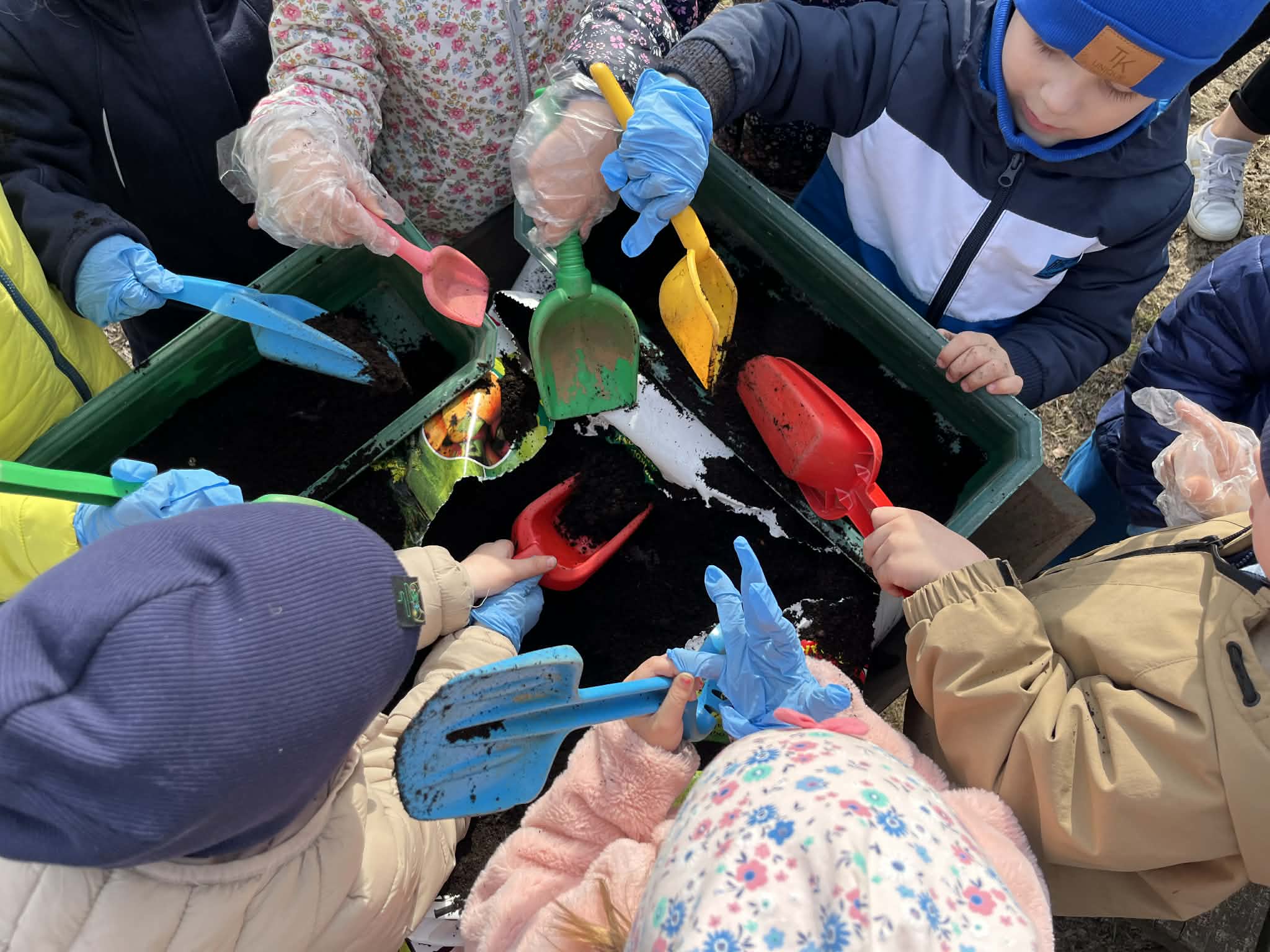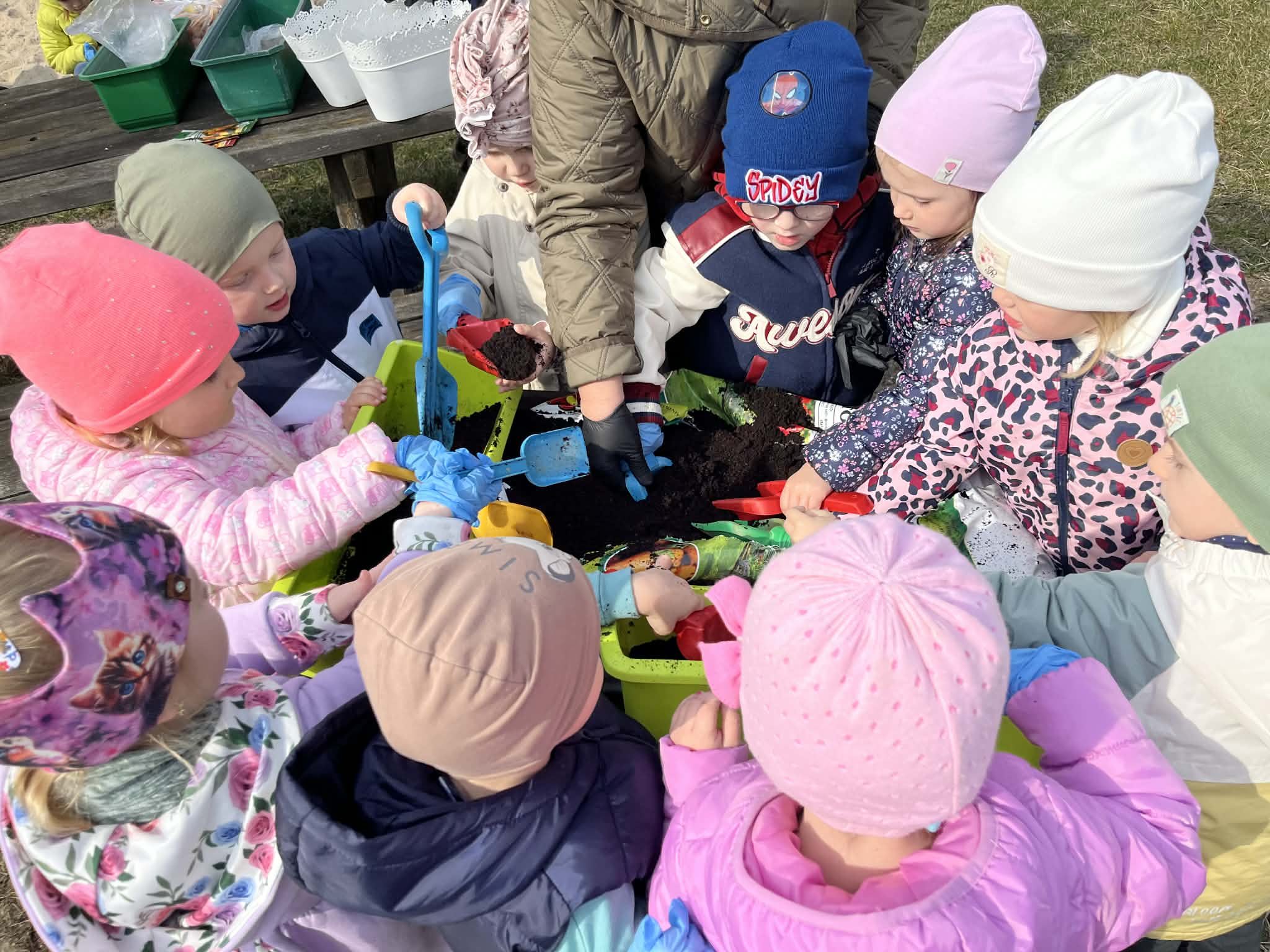 Podczas zajęć mali ogrodnicy sadzili cebulę, z której już wkrótce wyrośnie pyszny, świeży szczypiorek – nie możemy się doczekać, aż będziemy mogli go spróbować podczas śniadania! Oprócz tego dzieci posadziły także kolorowe kwiatki, które w najbliższym czasie pięknie ozdobią przedszkolny ogród i umilą nam wspólne zabawy na świeżym powietrzu.