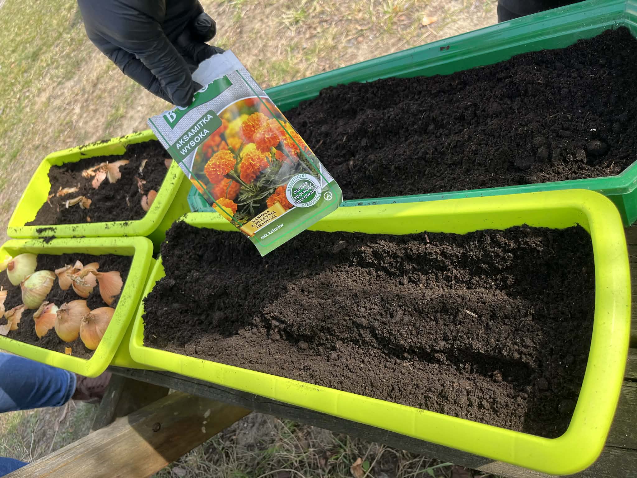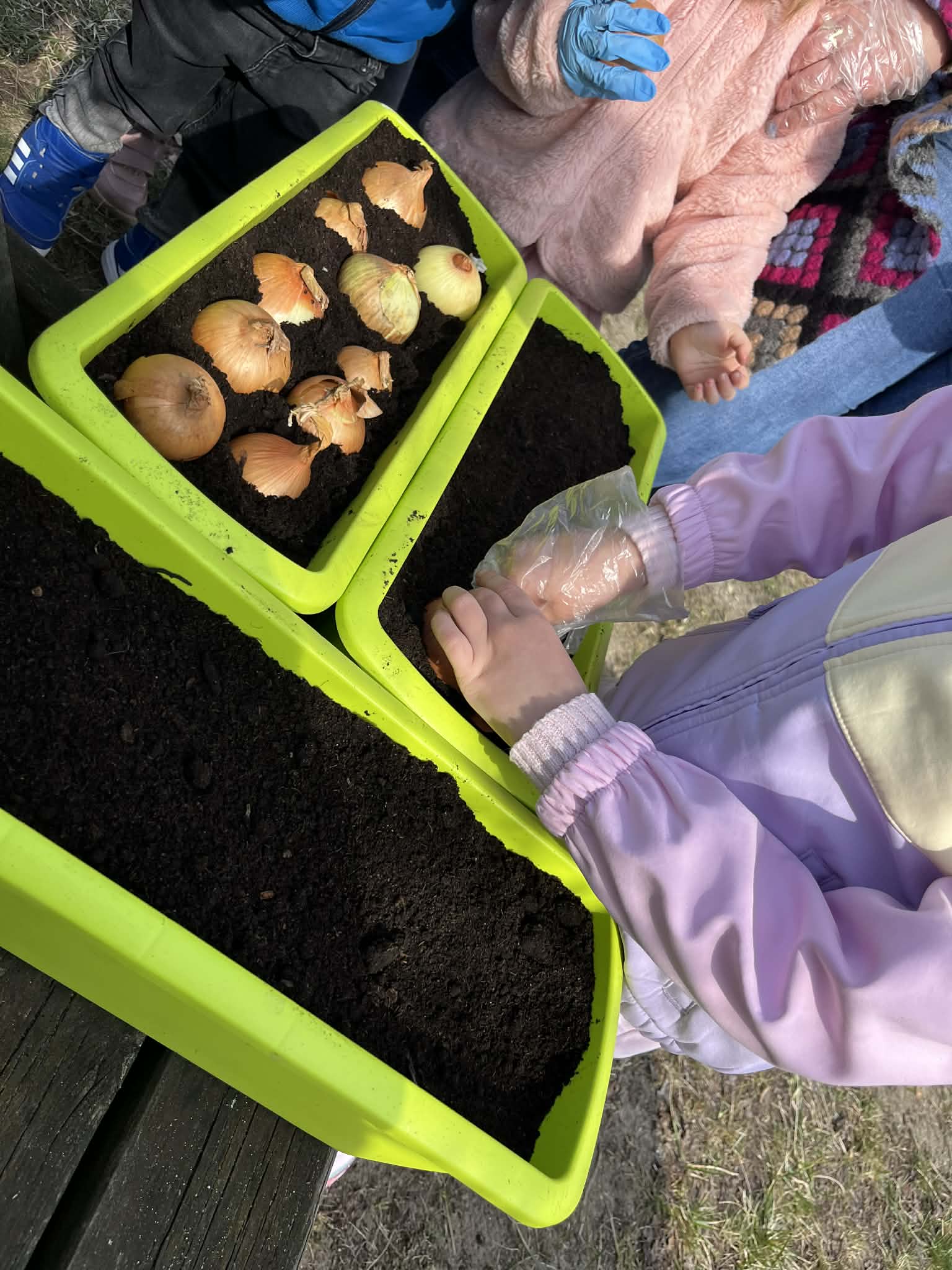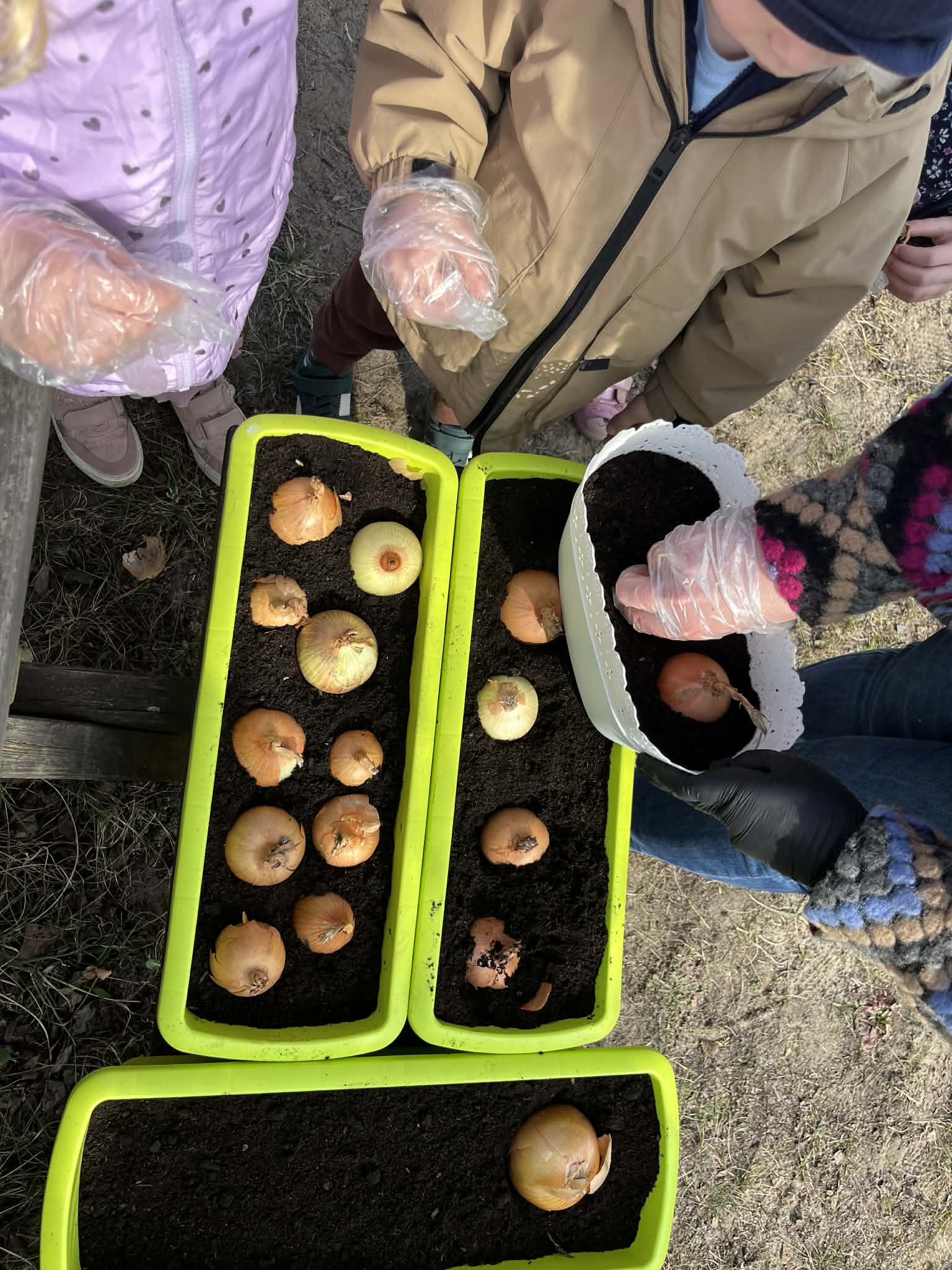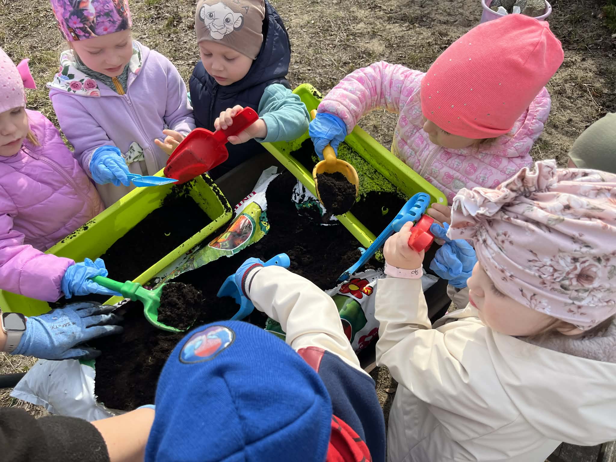 Podczas zajęć mali ogrodnicy sadzili cebulę, z której już wkrótce wyrośnie pyszny, świeży szczypiorek – nie możemy się doczekać, aż będziemy mogli go spróbować podczas śniadania! Oprócz tego dzieci posadziły także kolorowe kwiatki, które w najbliższym czasie pięknie ozdobią przedszkolny ogród i umilą nam wspólne zabawy na świeżym powietrzu.