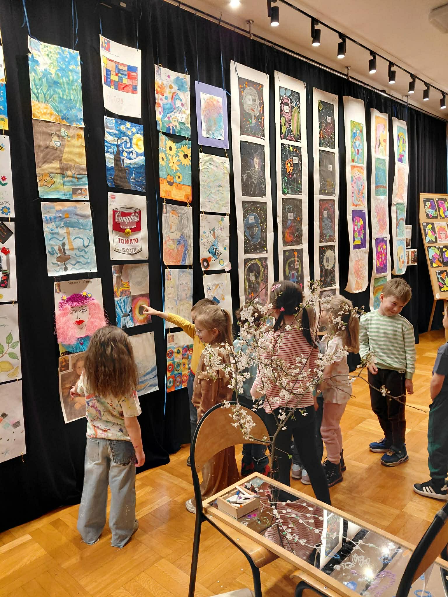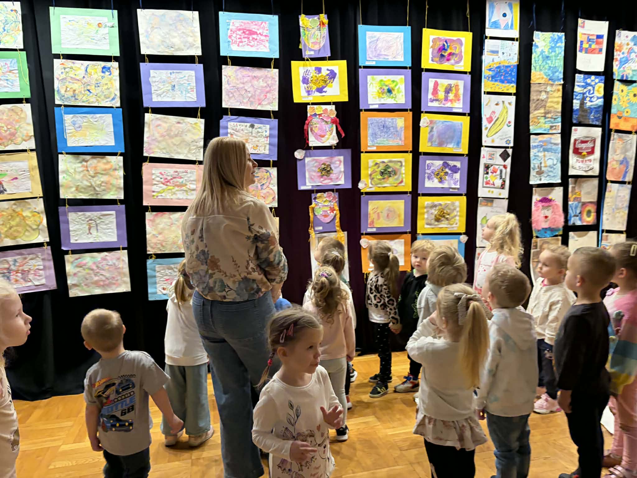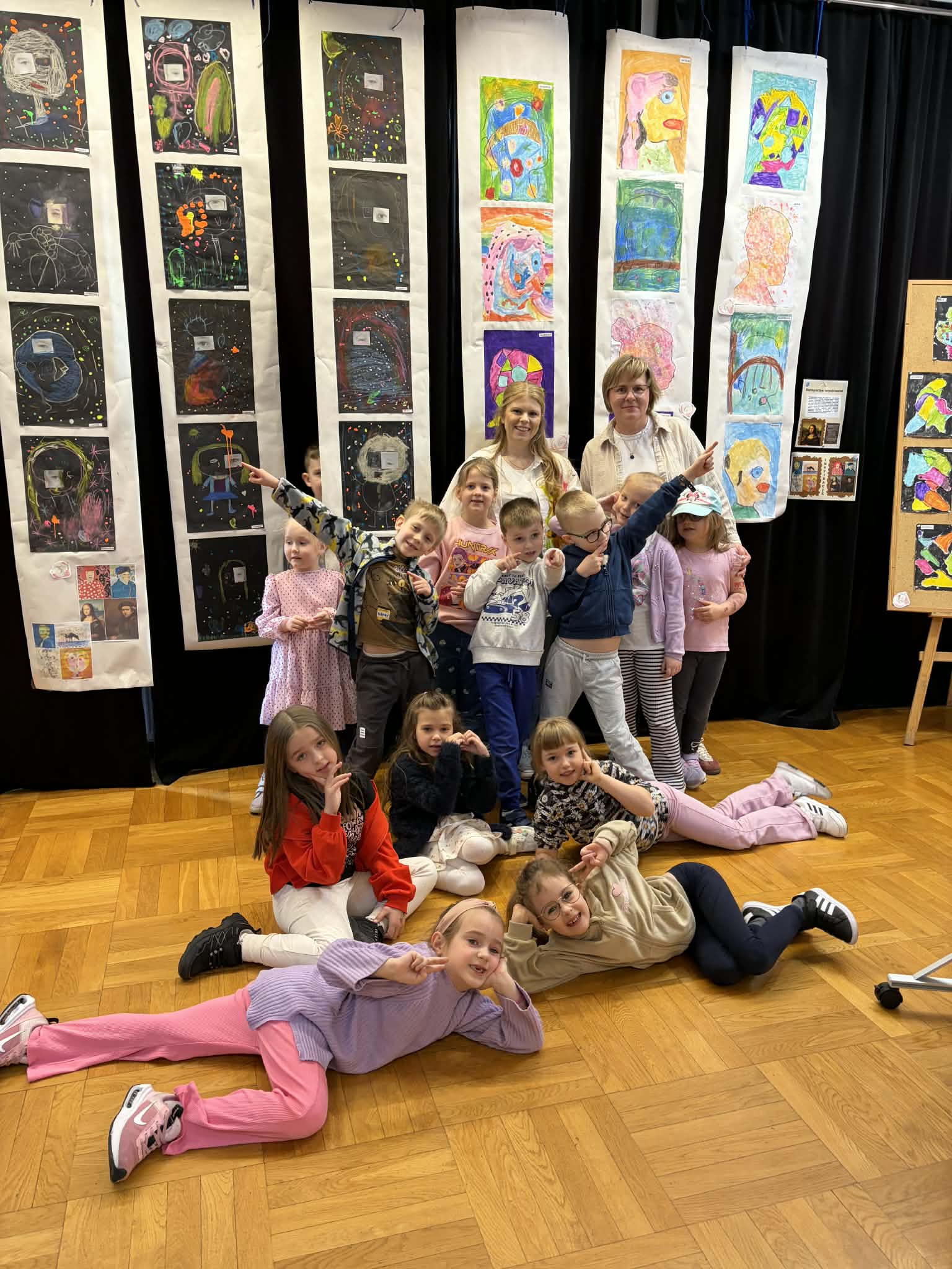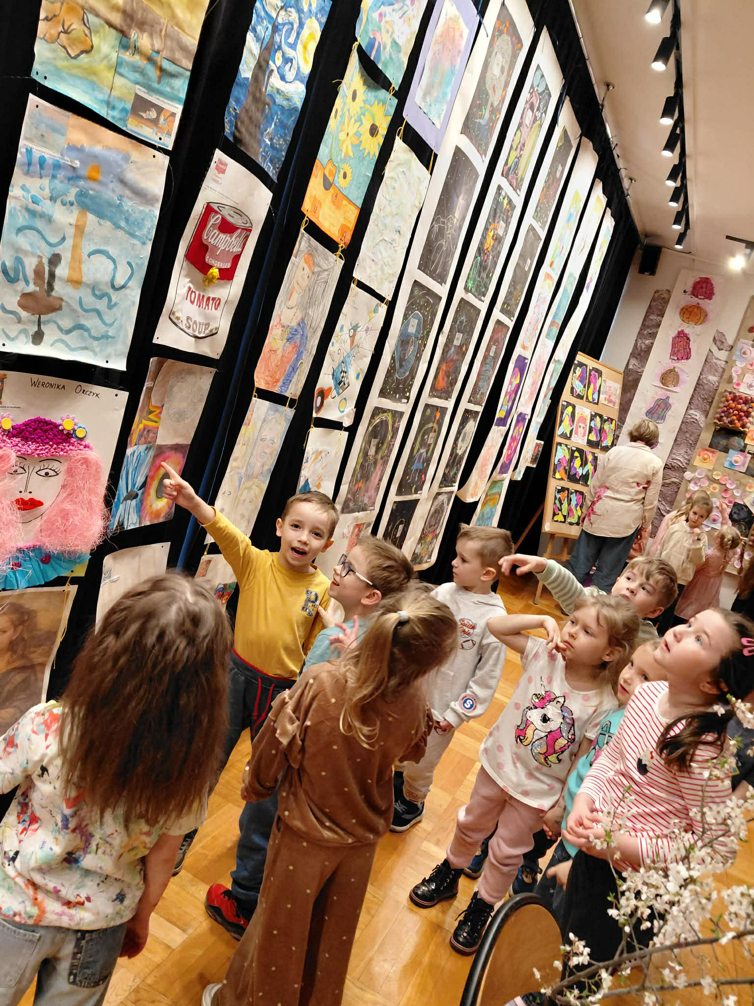 W ramach realizacji zadania projektowego stworzyliśmy wydarzenie, które stało się prawdziwą podróżą do świata wyobraźni. Wśród barw, kształtów i dziecięcych marzeń narodziła się nasza wyjątkowa wystawa — „Od pierwszej kropki do dzieła”, gdzie każda, nawet najmniejsza kropka, mogła rozkwitnąć w coś niezwykłego. Wydarzenie powstało we współpracy z Gminnym Ośrodkiem Kultury, dzięki czemu mogło nabrać jeszcze piękniejszego, wspólnotowego wymiaru. To był czas, w którym sztuka mówiła ciszej niż słowa, ale trafiała prosto do serc, przypominając, jak ważna jest kreatywność, radość tworzenia i odwaga wyrażania siebie. Wystawie towarzyszyły pełne magii działania artystyczne: lepienie z pianek, które było delikatne jak dziecięce marzenia, malowanie na lustrze, odbijające emocje i kolory duszy, malowanie na żywo, czyli delikatne kwiaty rozkwitające na papierze, teatr cieni, gdzie światło opowiadało własne historie. Był to dzień utkany z inspiracji, radości i małych wielkich dzieł. Bo każda wielka sztuka zaczyna się od małej kropki… i odwagi, by zamienić ją w coś wyjątkowego.