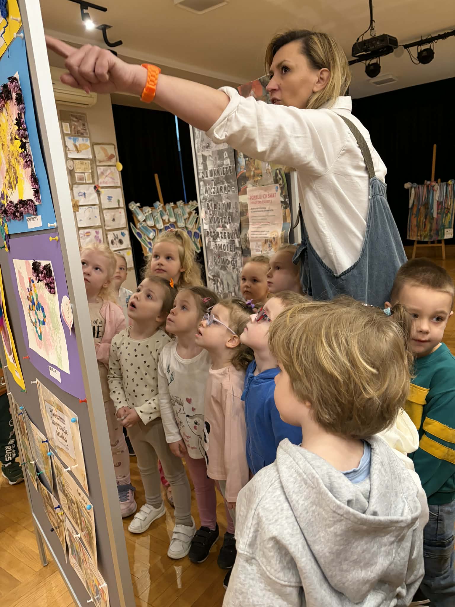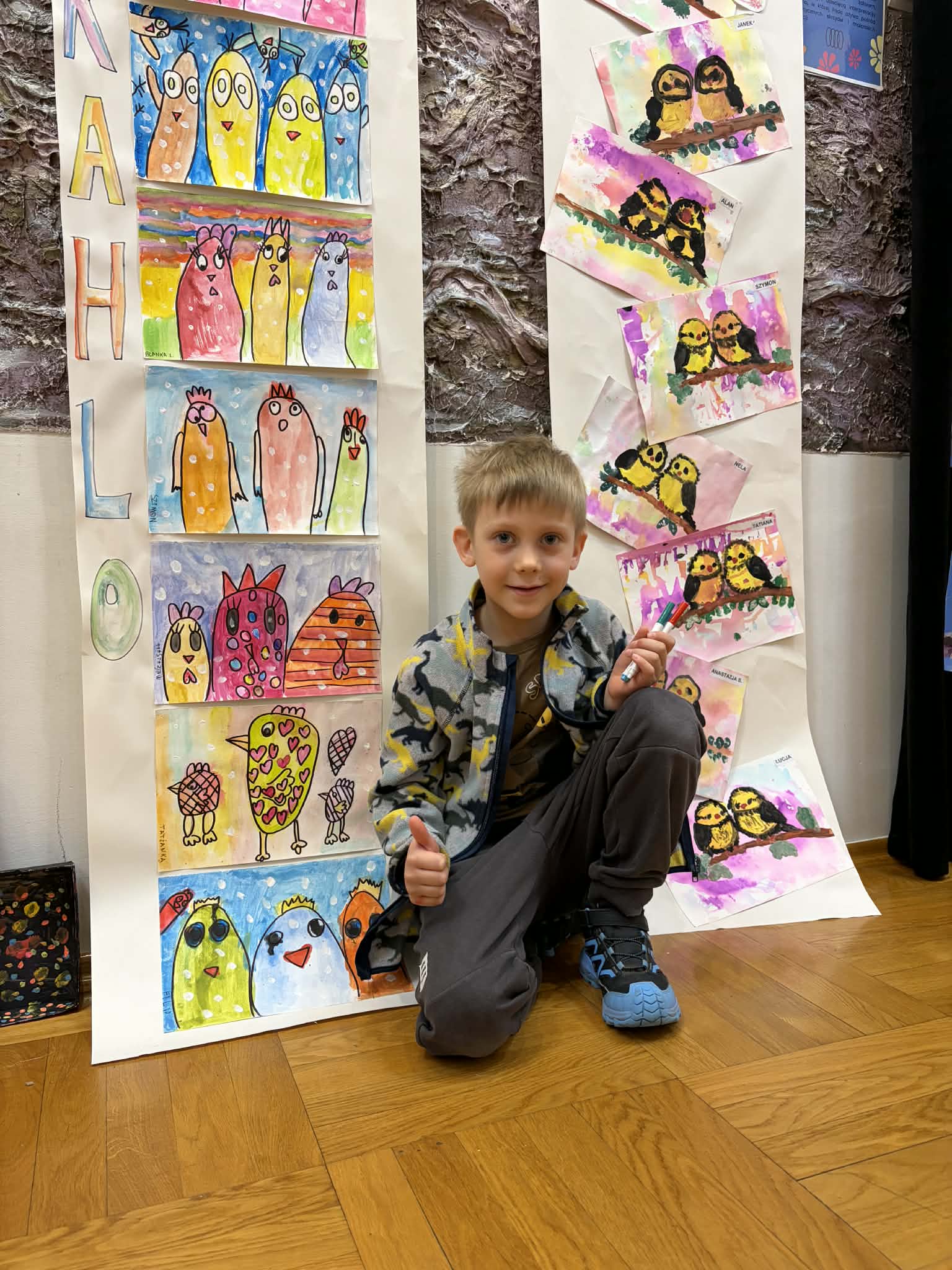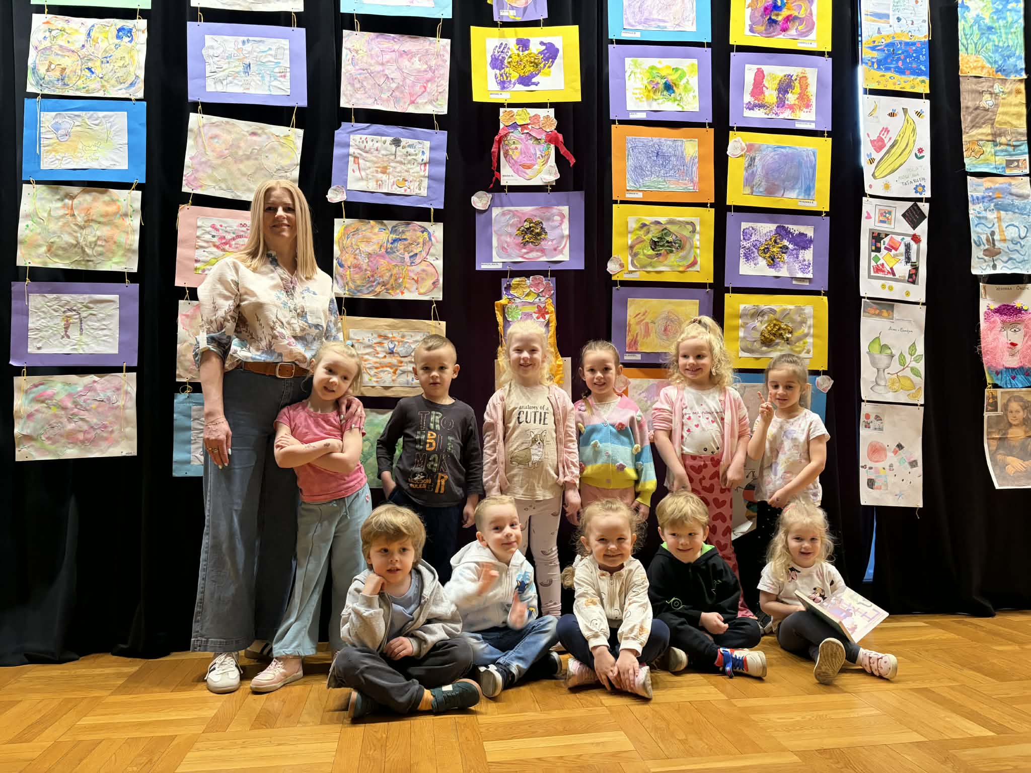 W ramach realizacji zadania projektowego stworzyliśmy wydarzenie, które stało się prawdziwą podróżą do świata wyobraźni. Wśród barw, kształtów i dziecięcych marzeń narodziła się nasza wyjątkowa wystawa — „Od pierwszej kropki do dzieła”, gdzie każda, nawet najmniejsza kropka, mogła rozkwitnąć w coś niezwykłego. Wydarzenie powstało we współpracy z Gminnym Ośrodkiem Kultury, dzięki czemu mogło nabrać jeszcze piękniejszego, wspólnotowego wymiaru. To był czas, w którym sztuka mówiła ciszej niż słowa, ale trafiała prosto do serc, przypominając, jak ważna jest kreatywność, radość tworzenia i odwaga wyrażania siebie. Wystawie towarzyszyły pełne magii działania artystyczne: lepienie z pianek, które było delikatne jak dziecięce marzenia, malowanie na lustrze, odbijające emocje i kolory duszy, malowanie na żywo, czyli delikatne kwiaty rozkwitające na papierze, teatr cieni, gdzie światło opowiadało własne historie. Był to dzień utkany z inspiracji, radości i małych wielkich dzieł. Bo każda wielka sztuka zaczyna się od małej kropki… i odwagi, by zamienić ją w coś wyjątkowego.