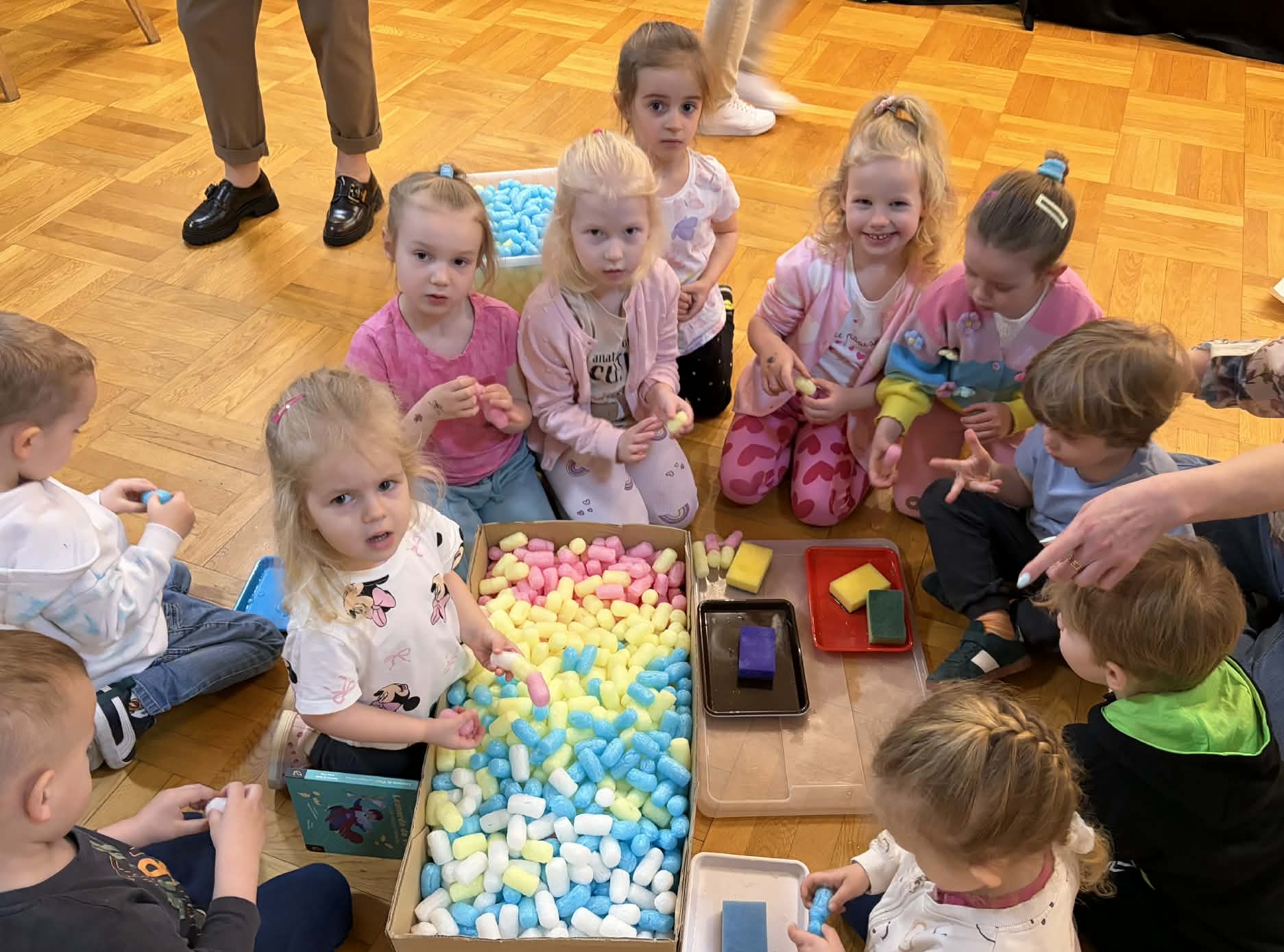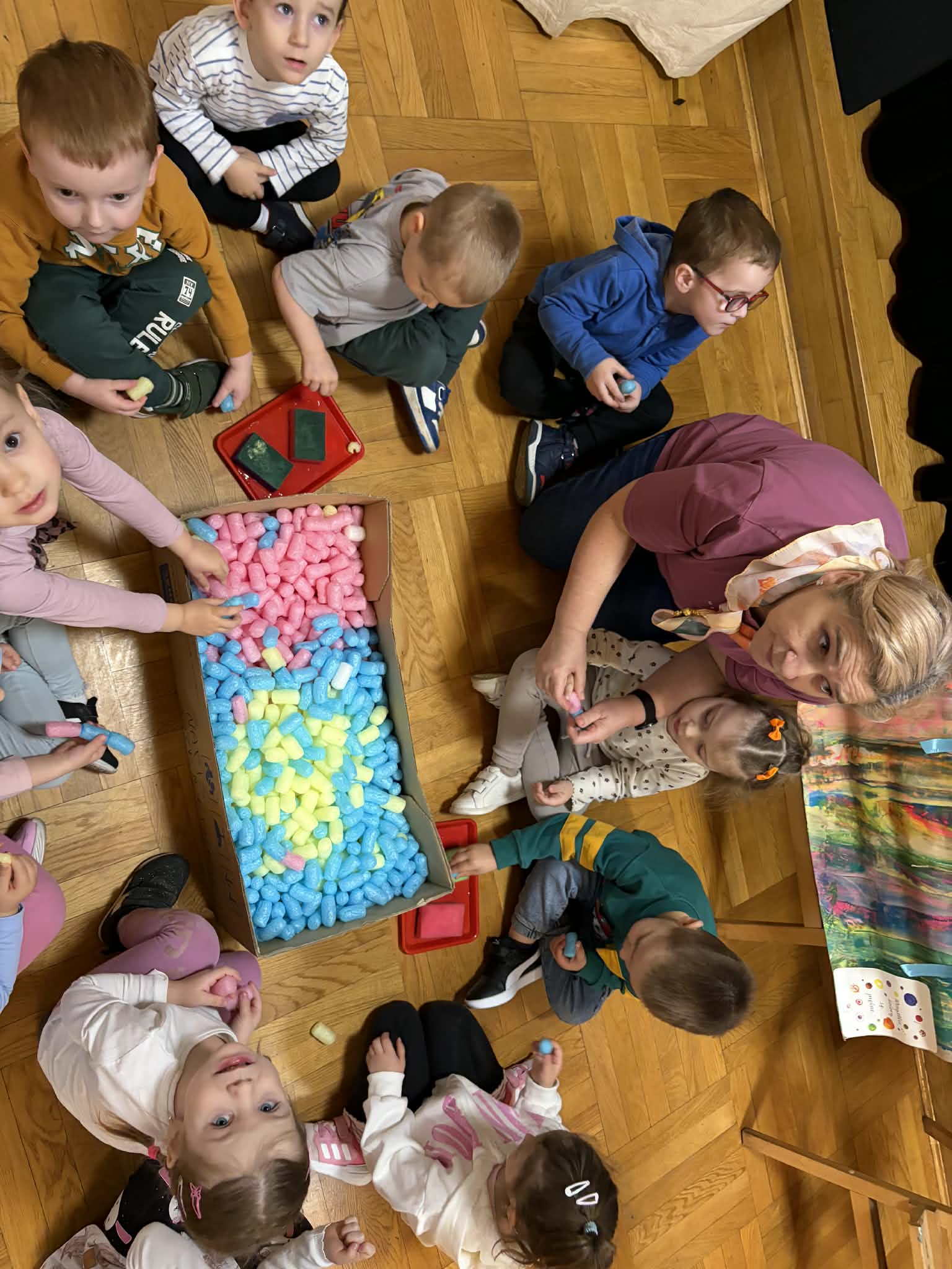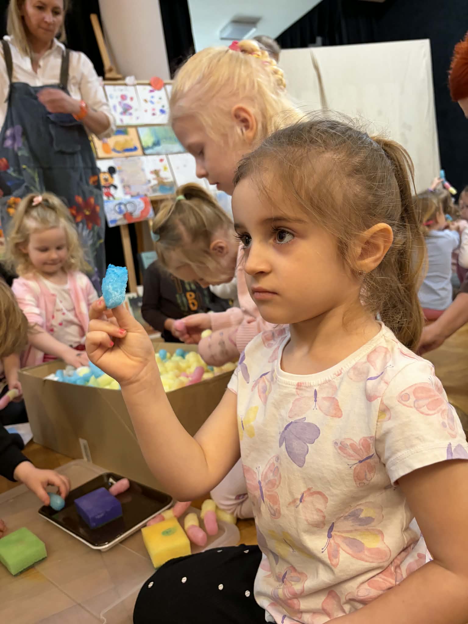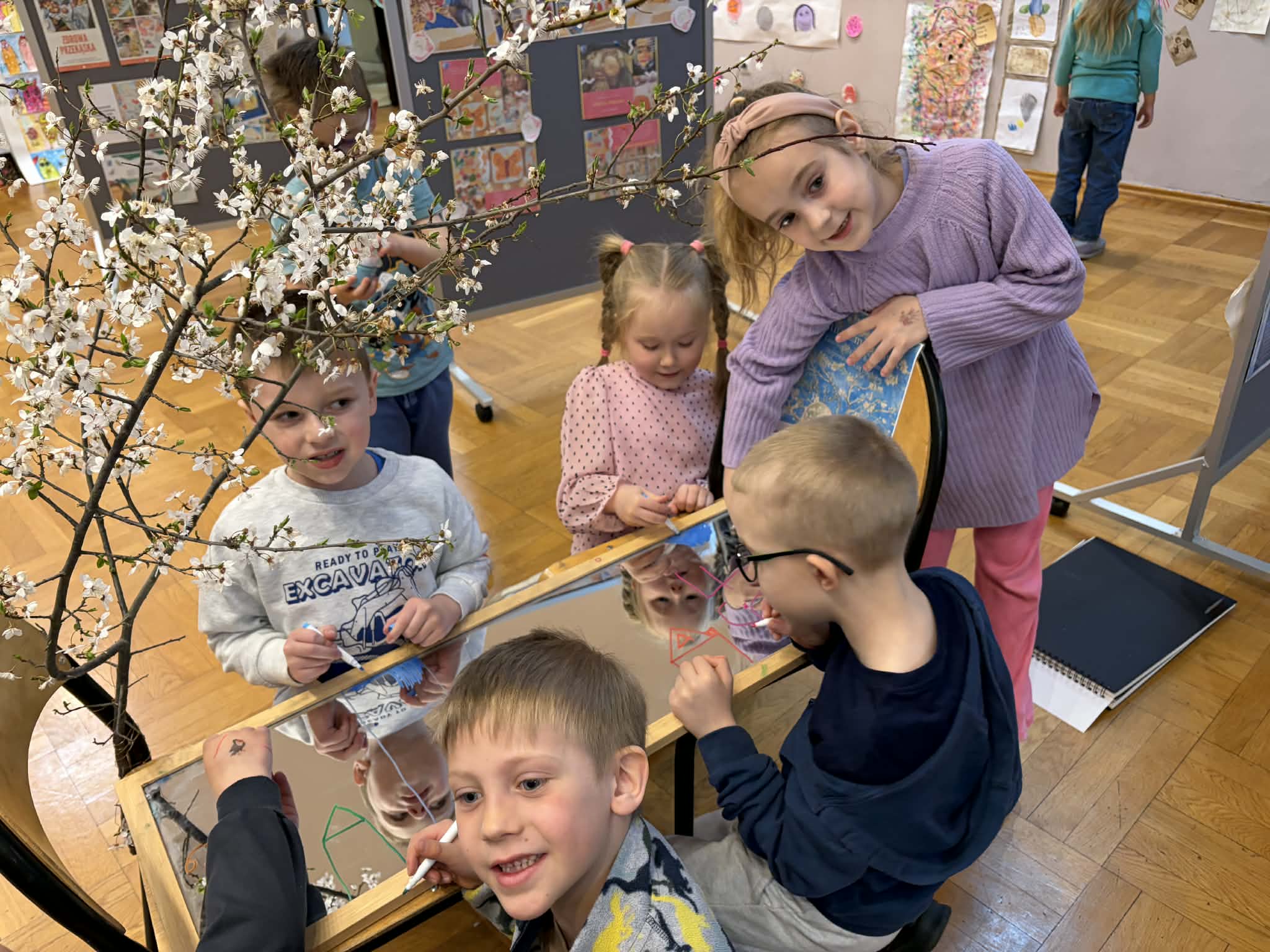 W ramach realizacji zadania projektowego stworzyliśmy wydarzenie, które stało się prawdziwą podróżą do świata wyobraźni. Wśród barw, kształtów i dziecięcych marzeń narodziła się nasza wyjątkowa wystawa — „Od pierwszej kropki do dzieła”, gdzie każda, nawet najmniejsza kropka, mogła rozkwitnąć w coś niezwykłego. Wydarzenie powstało we współpracy z Gminnym Ośrodkiem Kultury, dzięki czemu mogło nabrać jeszcze piękniejszego, wspólnotowego wymiaru. To był czas, w którym sztuka mówiła ciszej niż słowa, ale trafiała prosto do serc, przypominając, jak ważna jest kreatywność, radość tworzenia i odwaga wyrażania siebie. Wystawie towarzyszyły pełne magii działania artystyczne: lepienie z pianek, które było delikatne jak dziecięce marzenia, malowanie na lustrze, odbijające emocje i kolory duszy, malowanie na żywo, czyli delikatne kwiaty rozkwitające na papierze, teatr cieni, gdzie światło opowiadało własne historie. Był to dzień utkany z inspiracji, radości i małych wielkich dzieł. Bo każda wielka sztuka zaczyna się od małej kropki… i odwagi, by zamienić ją w coś wyjątkowego.