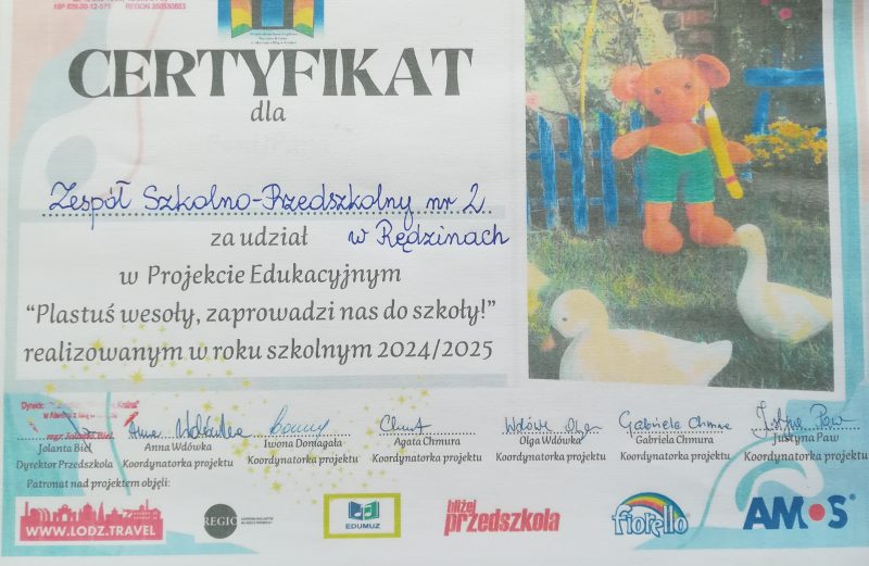CERTYFIKATY i PODZIĘKOWANIA dla NASZEGO PRZEDSZKOLA za udział w projektach „Klub Mleczaka” oraz „ Plastuś wesoły, zaprowadzi nas do szkoły!”
