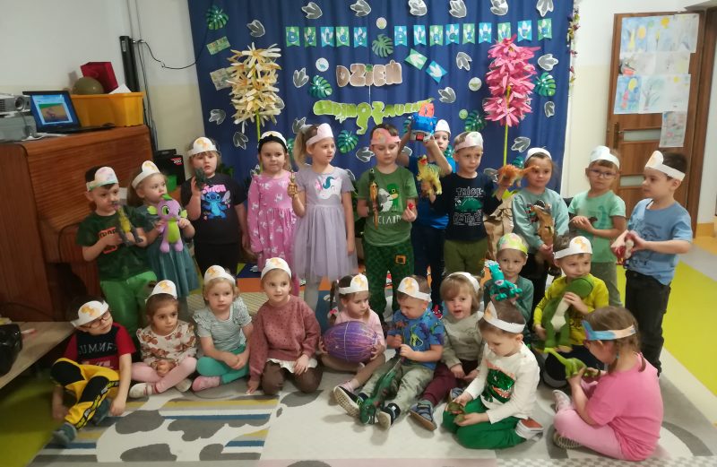 Dzisiaj nasze przedszkole zamieniło się w tajemniczą krainę dinozaurów i wszystkie przedszkolaki przeniosły się do czasów prehistorycznych. Podczas ciekawych dinozaurowych zabaw poznaliśmy wybrane gatunki tych zwierząt, ich wygląd i przyzwyczajenia. A nawet z zaczarowanego jaja, ku wielkiej uciesze przedszkolaków, wykluł się mały DINUŚ, którego nazwaliśmy GRZESIU. W trakcie zajęć tematycznych dzieci rozmawiały i dzieliły się […]