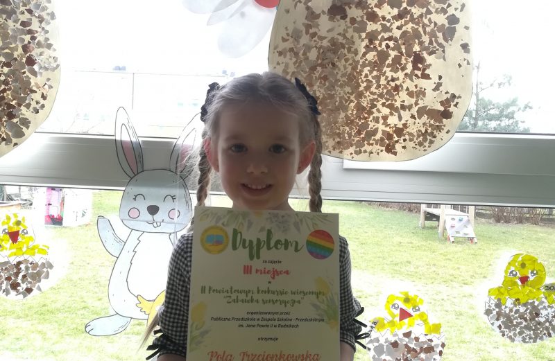Z ogromną radością informujemy, że nasza wychowanka z grupy 4-letniej Pola Trzcionkowska została laureatką konkursów plastycznych zorganizowanych na terenie Gminy Rędziny i zajęła zaszczytne III miejsce w Powiatowym Konkursie Wiosennym „Zabawka Sensoryczna” III miejsce w Gminnym Konkursie Plastycznym „Sensoryczna Pisanka Przedszkolaka”. Wielkie brawa i gratulacje, życzymy Poli dalszych sukcesów i rozwijania talentów artystycznych. Dziękujemy również […]