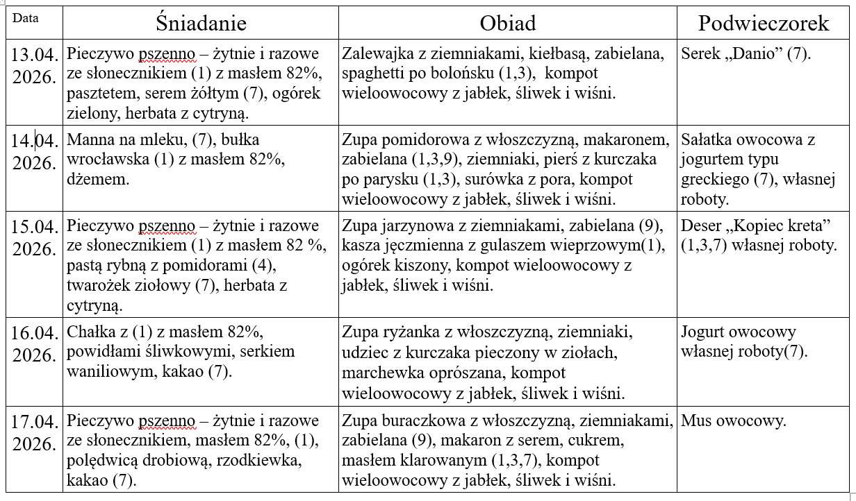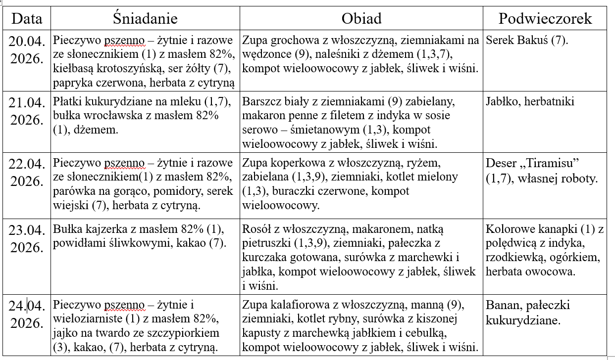 Jadłospis szkoła